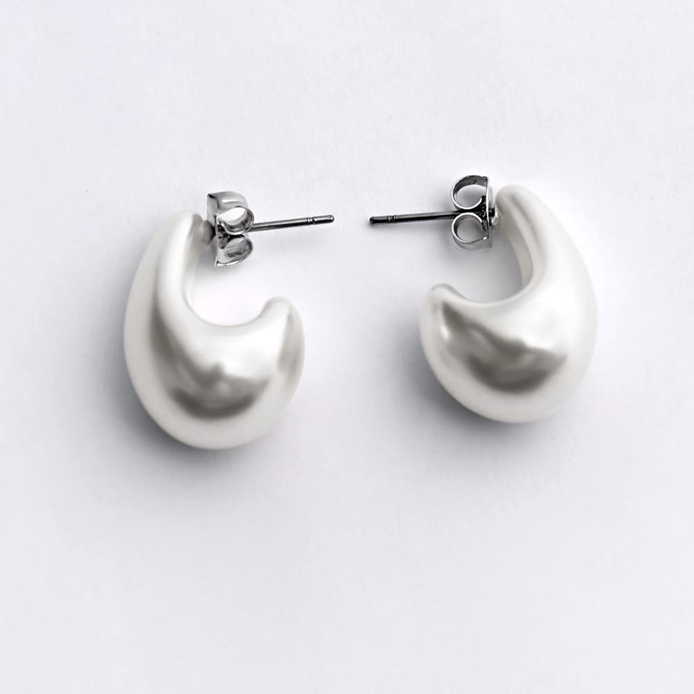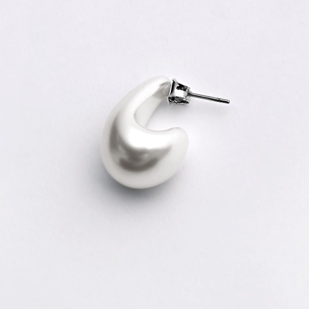 パールがこの形って、珍しい!通常は金属で作るようなモチーフデザインを、フェイクパールで作った珍しさが可愛いピアス。前から見るとぷっくりとしたドロップ型がベースになっており、とても軽量な着け心地です。キレイめなコーデに合うのはもちろん、カジュアルコーデにも合うのがパール系ピアスとしてはレアな存在。シンプルで飽きのこないデザインなのに、ありがちではないところも素敵です。◆金属の色:シルバー◆パールの色:ナチュラル(真っ白とクリーム色の間でやや白寄り/一般的なパールの色で、浮かずに馴染む、暖かみのあるホワイトです)【お手入れについて】※ピアスは帰宅したら外し、メガネ拭き用の布やジュエリー用のセーム革などで優しく全体を拭きます。付着した皮脂や汗が落ちて、色味やカラーがキレイに保てます。※入浴時、スポーツ時、就寝時には外してください。質感が劣化し、破損の原因になります。【SNS用ハッシュタグ】#235570ぷっくり膨らみパールピアス(このハッシュタグでInstagramなどSNS内で検索をしますと、こちらをお持ちのお客様のご投稿があれば、簡単に見つけてご覧いただくことができます)