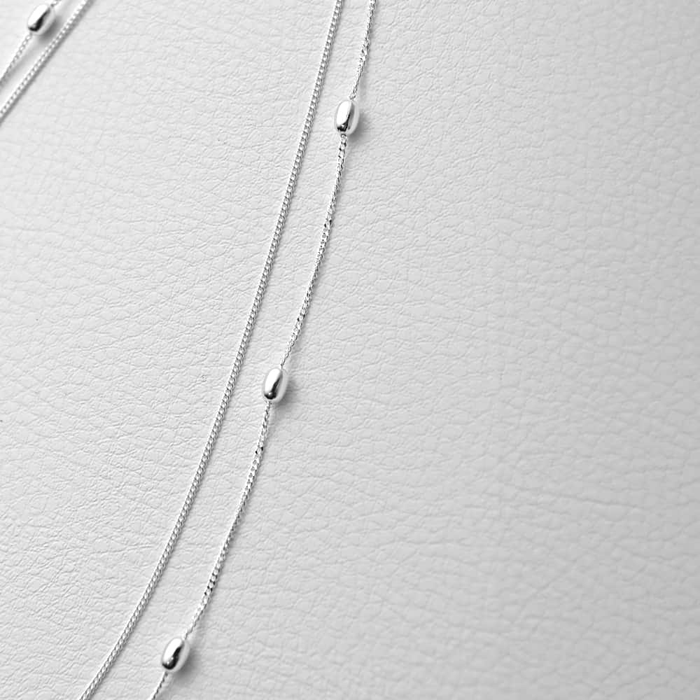今のファッションにピッタリな質感軽度な金アレの人にも対応できる、シルバー素材のジュエリーラインが品のある大人向けデザインで新登場◆11/27インスタライブご紹介商品◆アーカイブのご視聴はこちらから→【11/27ライブ】◆齊藤Instagramリール動画ご紹介商品◆アーカイブのご視聴はこちらから→【リール動画】【こちらのシリーズについて】軽度の金属アレルギーであれば着けていても肌トラブルになることは稀な、シルバー925素材を使用したジュエリーラインが新しく登場。初回作はネックレス5型からスタートし、ご好評であればデザインを増やして行こうと考えているシリーズです。素材については詳しく後述しておりますので、ご興味があればご覧ください。【こちらのデザインについて】シンプルなチェーンとデザインチェーンの2本が繋がった、存在感と上品さを両立したネックレス。下のチェーンには小さなメタルボールが点在していて、時折りキラッと輝く感じが女性らしくてとても素敵です。割と広範囲に首元を飾ることができるため、デコルテの開いたお洋服や襟を開けたシャツの首元にもピッタリ。もちろんクルーネックのような首元の詰まったお洋服の上から着けてもイイ感じのポイントになります。 ◆絡まりづらい形状のチェーン◆着け心地はとても軽量※2本のチェーンをバラして別々に使うことはできません。【軽度のアレルギーの目安】◆短時間であれば普通のアクセサリーを着けることもできるが、そのうち痒くなってくることがたまにある程度。◆夏場などに汗をかくと痒みやカブれが生じることがあり、汗をかかなければ概ね着けていられることが多く、たまにダメなこともある、程度。※その他、銀歯を入れたことがあり、それが平気だったのであればアクセサリーもいける傾向か強いとされていますが、例外はあると思いますのでご参考までに。【お手入れについて】※ネックレスは帰宅したら外し、ハンドソープで手を洗うついでに一緒に軽く洗ってしまうのが◎ 付着した皮脂や汗が落ちて酸化を遅らせ、色味やカラーがキレイに保てます。※洗ったあとはティッシュで軽く水気を吸い取り、タオル等の上に置いて自然乾燥させて、乾いたらしまいます。※着用しないときはチャック付きポリ袋などに入れて、なるべく空気に触れさせないことで質感の良さが長持ちします。※入浴時、スポーツ時、就寝時には外してください。質感が劣化し、破損やアレルギー発症の原因になります。※チェーンや金具が切れた際は、そのほとんどが丸カンが開いてしまったことが原因です。開いたところに切れた部分の輪っかを通し、細いペンチ(またはヤットコ的なもの)で開いてしまった丸カンをピッタリ閉じれば元通りになります。※シルバー製品は時間と共に硫化による黒ずみが気になることがありますので、その際は市販の液状クリーナーに浸けて洗うとキレイになります。【素材について】925というのは1000分率にしたときの純銀使用率を示しており、加工と維持に向いた理想的な硬さを持つ配分として、広く一般的に使われている銀の品位になります。若かりし頃は比較的安価なアクセサリーとして親しんだ印象のあるシルバーですが、現在では20年前の相場と比べてその価値は10倍以上。すっかり高級な材料として、ジュエリーの地位に昇格するに至りました。そのためリーズナブルな価格ではありませんが、シルバーならではの軽やかな銀色や柔らかな質感が美しく、やはりアクセサリーよりも高級感があり独特のオシャレさを出すことができます。カジュアル寄りなファッションが主流の現在はとくに洋服との雰囲気的な相性が良く、また、いわゆるストリート系とは異なる大人向けデザインのものをご用意しておりますので、ぜひお楽しみいただければと思います。ちなみにこの先、銀地金はどこまでも相場が上がることが予想されていますので、もしもいつか飽きてしまった場合は売ることもでき、未来のちょっとしたお小遣いゲットにも良いかもしれません。【SNS用ハッシュタグ】#236036sv925ステーションボール2連ネックレス(このハッシュタグでInstagramなどSNS内で検索をしますと、こちらをお持ちのお客様のご投稿があれば、簡単に見つけてご覧いただくことができます)