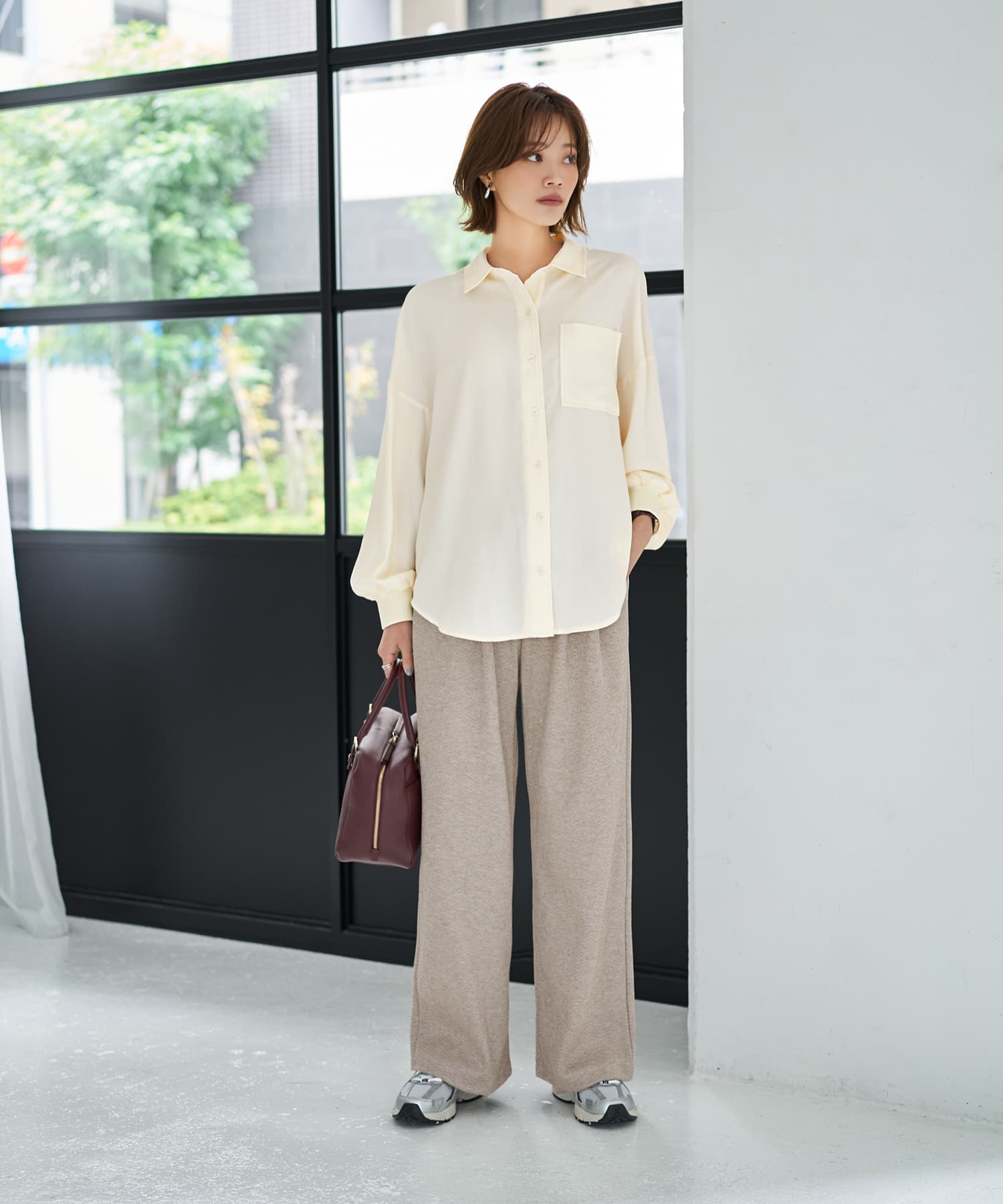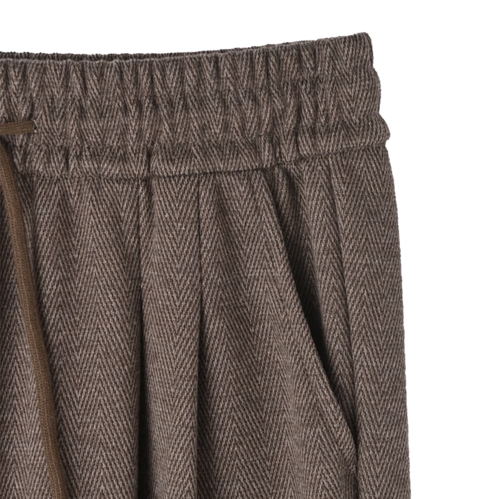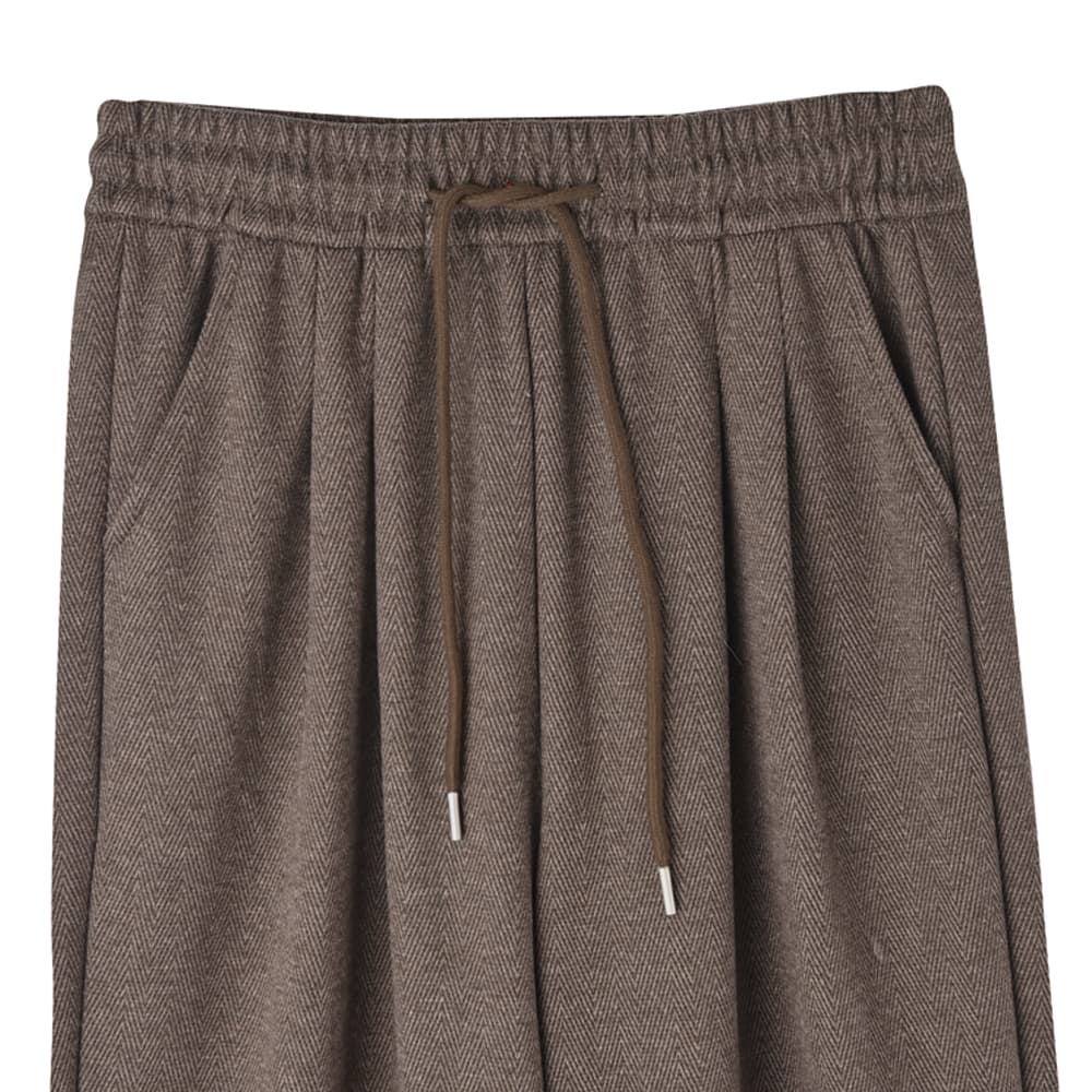 見た目はキレイめ、穿き心地はリラックス裏面がジャージータッチでチクチクしない、冬用暖か素材のオシャレ柄織りワイドパンツ◆11/13インスタライブご紹介商品◆アーカイブのご視聴はこちらから→【11/13ライブ】【この商品の特徴】◆ヘリンボーン柄の冬素材パンツ◆適度に厚手で暖かな穿き心地◆太過ぎないワイドストレート◆ウエスト全周ゴム仕様◆ひっくり返りがおきないゴム◆裏側がジャージー生地タッチ◆チクチクしないスムースな肌触り◆手洗い可能でアイロン不要【さらにプラス情報】◆裏側:裏側はジャージー生地系の質感。そのためタイツを穿いても滑りが良く、生地が噛みません。さらにチクチクしない肌触りの良さも備えています。◆腹部タック:腹部に余裕を持たせる2タック入り。上部は縫い留めなのでお腹がポッコリしていてもタックが開いてしまうことがなく、腹部を強調しません。◆アイロン:基本的には不要ですが、かければさらにキレイな見た目になります。スチーマーもお薦めです。◆毛羽立ち:とくにおきやすそうな感じはしませんが、初めて採用する生地なので未知数ではあります。着用頻度や摩擦具合、お手入れの仕方などによりできることもあるかもしれませんが、おそらくそんなに気にならないかな、と思います(もしもできた場合は毛玉取りクリーナー等でご対処ください)。【その他の仕様などの情報】◆着用時期:11-3月中旬頃が目安◆サイズ感:ゆとりのあるサイズ感(Lサイズ体型にも対応)◆丈感:一般的なフルレングス◆シルエット:太過ぎないワイドなストレート◆ウエスト:全周ゴム仕様◆締め具合調節:ウエスト紐あり◆ベルトループ:なし◆厚み:厚手◆柔らかさ:柔らかさとハリ感が共存◆肌触り:サラッとしつつ温かみのある感じ◆着用ジワ:できにくい◆伸縮性:あり◆光沢感:なし◆透け感:なし◆スリット:なし◆ボタンやファスナー:なし(下から穿き上げタイプ)◆ポケット:両サイドにあり◆裏地:なし◆手洗い:可能◆裾上げ:お直しに出していただけます◆アイロン:不要◆スチーマー:使用OK【お色について】◆チャコール:深みのあるグレー系ダークカラー。黒に近いチャコールグレーの糸とライトグレーの糸が混ざっています。◆ブラウン:赤味の少ないセピア系ブラウン。ダークなブラウンと白っぽい感じの明るい糸が混ざっています。◆ライトベージュ:ダークなベージュとエクリュ色っぽい糸が混ざっています。オートミール色のような印象になる、明るい発色の軽いベージュです。目立つ赤味やイエロー味はありません。【SNS用ハッシュタグ】#236006あったかヘリンボーンリラックスパンツ(このハッシュタグでInstagramなどSNS内で検索をしますと、こちらをお持ちのお客様のご投稿があれば、簡単に見つけてご覧いただくことができます)