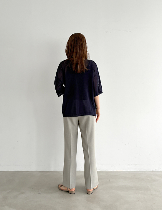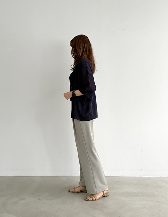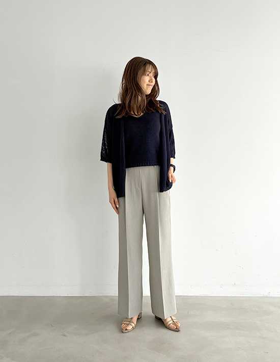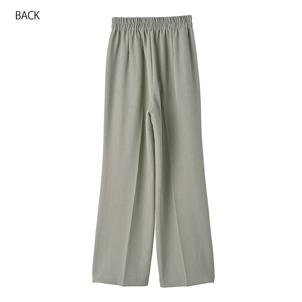 【便利な2レングス展開+Lサイズもあり】薄手なシャリ感キレイめストレッチ素材細くないけどワイドほど太くもない、涼しい穿き心地の夏用ストレートパンツ【このパンツの特徴】◆細くはないけどワイドでもないパンツ◆テーパードと異なるストレート型◆程よくゆったりした形◆夏に良い薄手の涼しい生地◆汗をかいてもサラッとした肌触り◆キレイめ感のあるベーシック◆カジュアルコーデにも使える◆2レングスから選べるシリーズ◆飽きのこない普遍的なデザイン◆ウエスト背面ゴム仕様◆手洗い可能/アイロン不要※73cm=股下のレングスです。【このパンツの詳細】ゆとりはありつつワイドパンツみたいには太くない、絶妙なシルエットのストレートパンツ。テーパードよりはゆったりとしており、テーパードが裾すぼまりなフォルムなのに対して『裾までストレート(=同じ太さ)』なのが特徴です。この感じは欲しくても探すのがなかなか大変なので、好きな生地感のものがあったときに抑えておくのが得策。ワイドパンツはイマイチ似合わないけれど、細いパンツも嫌、という方にもお薦めです。※体型によってはワイドを穿くよりも、あまり太過ぎないものを穿いた方がスッキリとしてスタイルが良く見える場合があります。それを自覚し当てはまる方の為にご用意しました。◆生地:薄手でキレイめな夏用生地。シャリ感がある素材なので薄くてもハリ感があり、肉感を拾わない安心感があります。サラッと爽やかな穿き心地で、肌離れの良さも◎ ストレッチもきいており、夏の通勤から普段着まで幅広く活躍します。◆丈感:164cm以上の高身長の方にお薦めの丈感(163cm程度ならヒール底のある靴を履く方向け)。普通身長(160-162cm)の場合は裾が床に付く長さです。どの程度の身長までに対応できるかは、その方のレングス的なお好みもありますので、普段ご着用のパンツの股下丈と比べてご判断ください(これは股下73cmです)。◆サイズ感:FREEサイズはS-Mサイズの方に対応。それでは小さい方のために、Lサイズもご用意しています。どちらのサイズが良いかは、サイズ採寸表を元にお手持ちのストレッチ入りパンツと比べてご検討ください。とくに小さい・大きいなどのクセは無く、一般的なサイズ感。ゆったりと穿いてもおかしいパンツではなく、ベルトループもありますので、大きいサイズをお選びになるのも良いと思います。◆ヒップ:こちらはボタンなどが無く、下から穿き上げるタイプのパンツになります。FREEサイズは目安としてヒップが95cmを超えると上げるのが大変になります。Lサイズはヒップ98cm程度が穿き上げ上限の目安です。【さらにプラス情報】◆季節感:夏用の涼しいパンツですが、見た目としてはとくに季節を限定しないため、ご自身が体感温度的に許容できればいつでもご使用いただけます。◆センターライン:正しく手洗いをしていただければ消えてしまうことはあまり無いと思います。消えてしまった場合はクリーニング屋さんで『このタックから繋げてセンターラインを入れてください』と言えば入れてもらえます。◆膝伸び:カットソーとは異なり、おきにくい方です。長時間のしゃがみ姿勢を続けるなど、生地に過剰な負担をかけなければおきることは無いと思います。◆シワ:多少はできますが、気になるほどはできません。もしも気になる場合は部分的にスチーマーをかけるか、霧吹きをかけてよく湿らせ→手指でシワを撫で伸ばして→ハンガーに掛けておけばOKです。アイロンは不要ですが、かければ相応にピシッとキレイな表情にはなります。【その他の仕様などの情報】◆着用時期:4-10月頃が目安◆サイズ感:上記参照◆ウエスト:背面ゴム◆ウエスト調節機能:なし◆ベルトループ:あり◆厚み:薄手◆柔らかさ:柔らかさとハリ感が共存◆肌触り:サラサラとしてシャリ感があり、肌離れが良い感じ◆着用ジワ:多少はできるが気にならない程度◆毛羽立ち:できにくい◆伸縮性:あり◆光沢感:サンドは無し/ブラックは微々たる光沢あり◆透け感:なし◆ポケット:フロント左右にあり◆スリット:なし◆タック:あり(1タック)◆ボタンやファスナー:なし(下から穿き上げタイプ)◆裏地:なし◆手洗い:可能◆アイロン:不要◆スチーマー:使用OK【お色について】◆ブラック:定番的な通常のブラックです。◆サンド:グレーの中に少量のベージュを混ぜたお色。グレージュとの違いはグレー寄りな(グレーの分量が多い)ところです。普通のグレーより印象が軽く、柔らかな女性らしさが出るのがポイント。ニュアンスカラー的な要素があり主張がないため、いろいろな色とマッチする合わせやすいカラーです。【SNS用ハッシュタグ】#236251サラッと涼感ストレートタックパンツ73cm(このハッシュタグでInstagramなどSNS内で検索をしますと、こちらをお持ちのお客様のご投稿があれば、簡単に見つけてご覧いただくことができます)