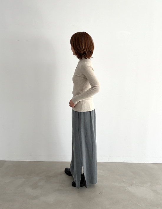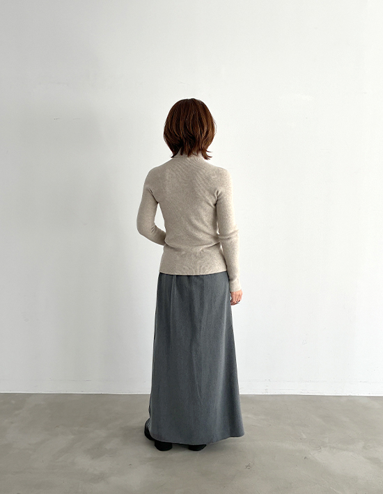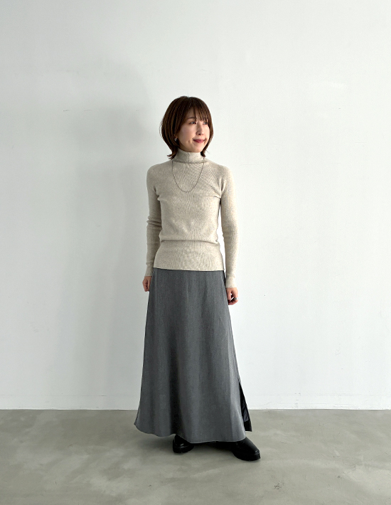 いま欲しいのはこの絶妙なスッキリ感Iライン以上Aライン未満の形がイイ、真冬も対応→春先もOKの大人スカート◆12/25インスタライブご紹介商品◆アーカイブのご視聴はこちらから→【2025/12/25ライブ】【この商品の特徴】IラインとAラインの中間、という感じのシルエットを持つ、シンプルでスッキリとしたロングスカート。クセの無いデザインでキレイめコーデにもカジュアルな格好にも使える、対応力の広いスカートです。見た目は普通のスーツやジャケットを作るような生地ですが、手触りにどこか暖かい温もり感があるのが特徴。真冬も着れる暖かさを持ちつつ、季節感を限定しない感じで春先も使用できます。【さらにプラス情報】◆暖かさ:厚みはありませんが生地自体も冬用のスーツ地ですし、裏地もあるのでスカートの中では暖かく穿ける方です。◆サイズ感:ゆったりめの着用感で、ウエストも緩めの作りです。緩さはありますがSサイズの方でも普通にご着用いただけます。腰で穿くのも素敵なスカートです(最小ウエスト寸法はサイズ表記をご参照ください)。◆丈感:当店のスカートの中でも長めなタイプ。普通身長の方には02サイズはかなり長く、とくにスニーカーやフラットシューズ合わせの場合164cm以上の方にお薦めです。※ウエスト位置を落として穿くのも素敵なので、少し長く穿きたい場合も調節しやすくて便利です。◆体型のお悩み:腰張りやヒップを強調するフォルムではありません。◆シワ:とくにできやすい生地ではありません。◆静電気:とくに発生しやすい生地ではありませんが、程度の差はその方の帯電体質具合や合わせアイテムなどによりますのと、冬場は乾燥でどうしても…というところはありますので、もしも気になる場合はエレガードなどの静電気防止スプレー等でご対処ください。【その他の仕様などの情報】◆着用時期:10-5月頃が目安(暑くなるまで)◆サイズ感:ゆとりのあるサイズ感(Lサイズ体型にも対応)◆丈感:くるぶし程度の長さが基準◆シルエット:控えめなAライン◆ウエスト:背面ゴム仕様◆ベルトループ:なし◆厚み:普通◆柔らかさ:柔らかさの中にハリ感が共存◆肌触り:少しウォーミー感(暖かみ)がありつつ、サラッとしている◆着用ジワ:できにくい◆毛羽立ち:できにくい◆伸縮性:ややあり◆光沢感:なし◆透け感:なし◆スリット:左サイドにあり(26-27cm程度)◆着脱:左サイドにファスナー&上部ホックあり◆ポケット:なし◆裏地:あり◆手洗い:可能◆裾上げ:お直しに出していただけます◆アイロン:不要◆スチーマー:使用OK【お色について】◆ブラック:定番的な通常のブラックです。◆グレー:適度な明るさがありつつ落ち着きもあるミドルグレー。チャコールとライトグレー、その中間的なグレーの3色の糸を使用しています。とくに青味があるなどのクセはない普通のグレー系統のお色です。【SNS用ハッシュタグ】#236082ナローaラインロングスカート(このハッシュタグでInstagramなどSNS内で検索をしますと、こちらをお持ちのお客様のご投稿があれば、簡単に見つけてご覧いただくことができます)