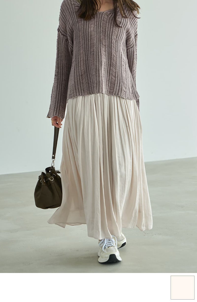 微光沢ジャガードマキシ丈タックスカート/95cm