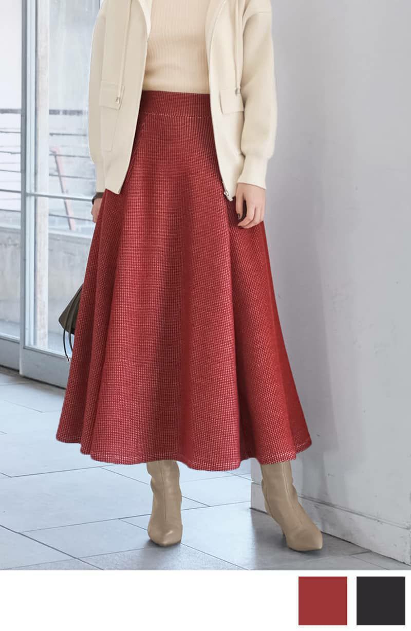 【Made in JAPAN】ニット調ワッフルロングフレアスカート