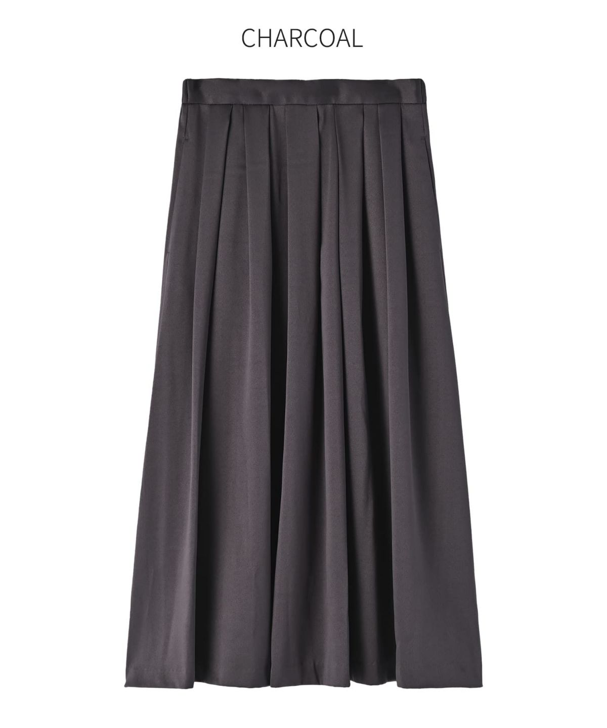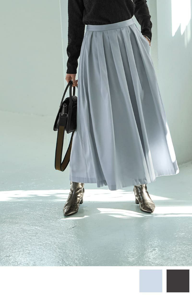 微光沢ジャガードマキシ丈タックスカート/95cm