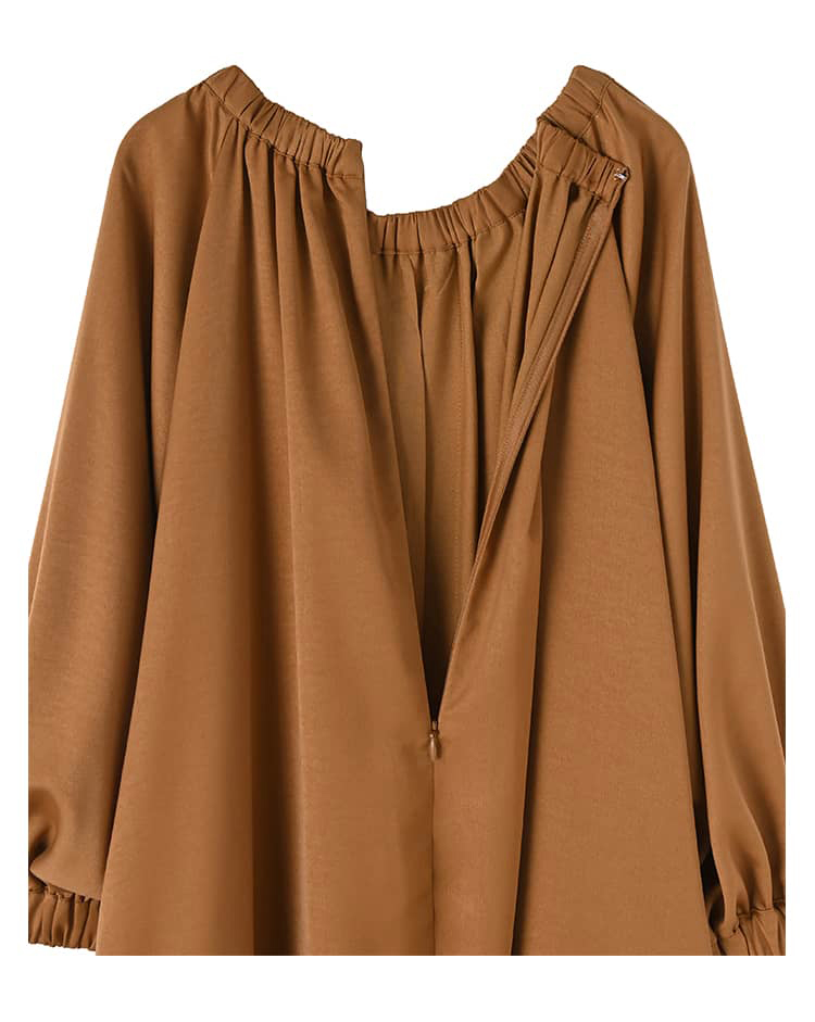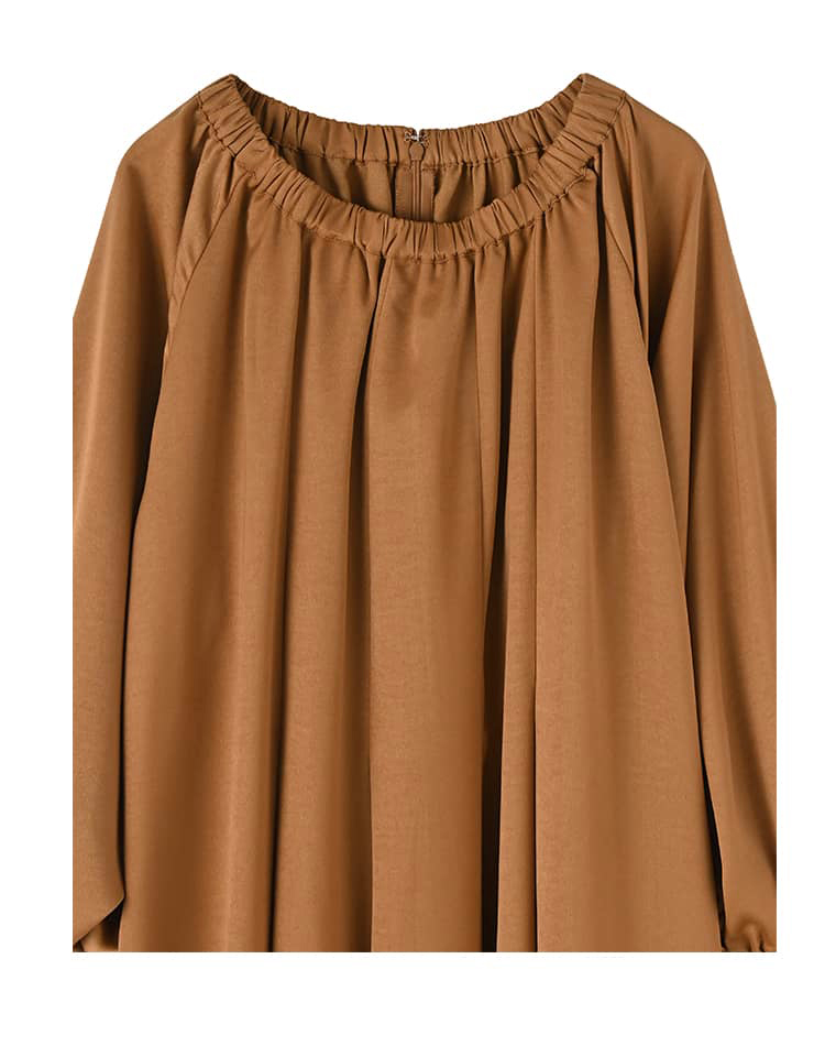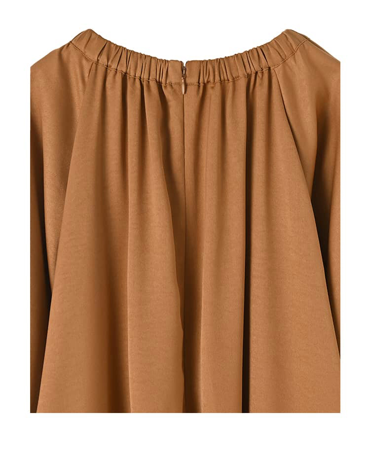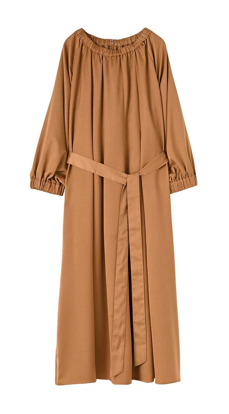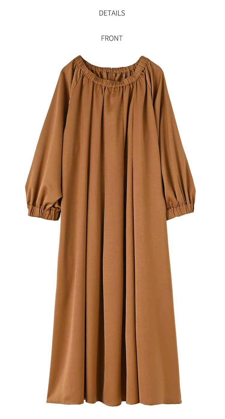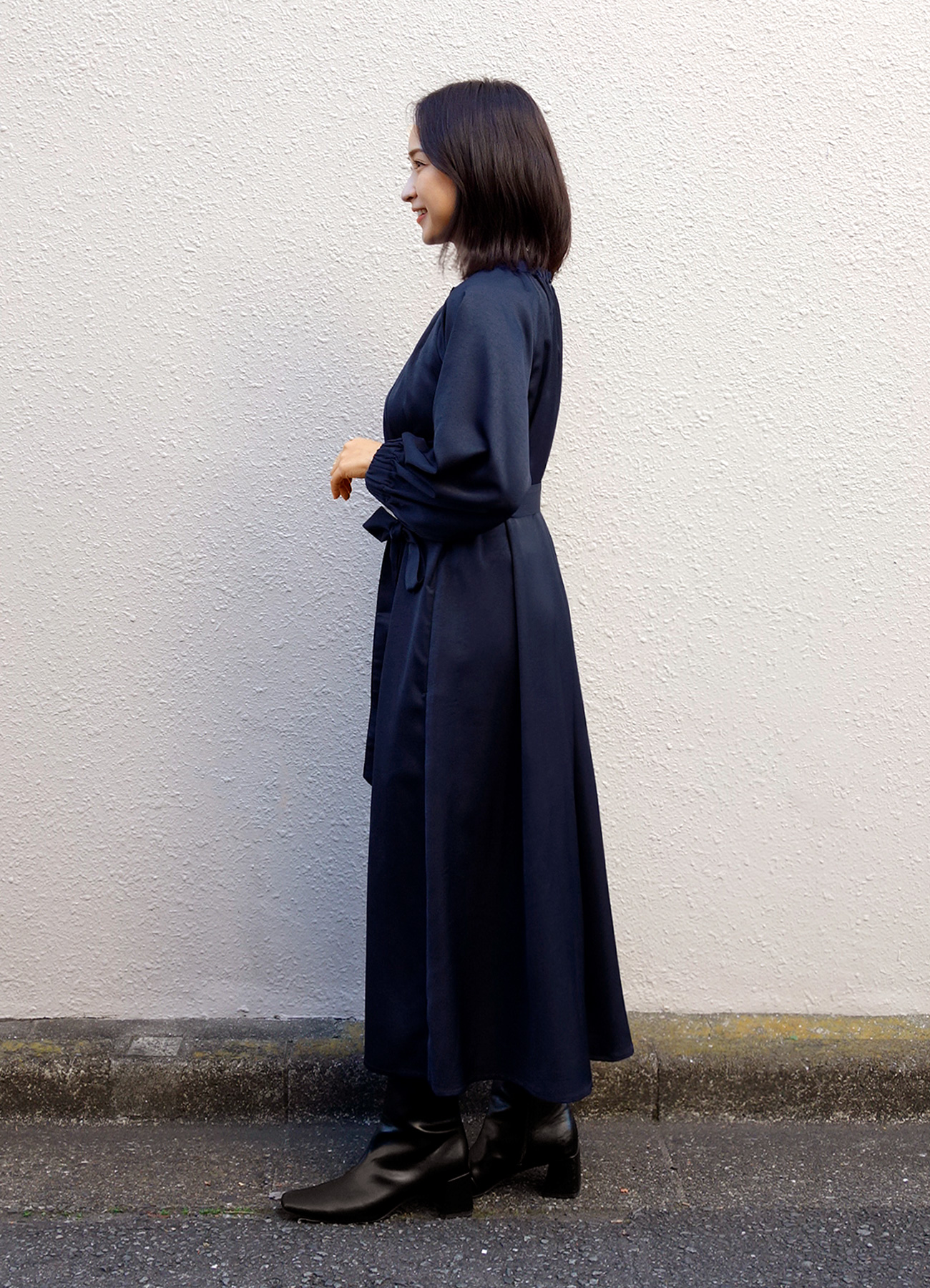 控えめな光沢が日常に使いやすい。高級感のある美ドレープワンピース。【商品の特徴】◆人気の控えめ光沢サテンを使用したワンピース◆共生地のリボンベルト付き◆冬の使用に耐えるしっかりとした生地感◆通常のギャザー&ドレープとは違い、生地をバスト下まで縫い留めることで不要な広がりをストップ。◆ギャザー服の難点である、ボリュームの出過ぎによる膨張やネグリジェ見えを回避。◆たっぷりと使用した生地が生む、美しいドレープ◆サテンの薄いイメージを良い意味で裏切る厚み感。心地良い重みを持ち、高級感のある表情◆透け感/なし◆光沢感/あり◆手洗い可能【お知らせ事項】背面に使用してるコンシールファスナーは、華奢でデザイン性を壊さない良さを持つ反面、生地の切り替え部分(この服ならゴムギャザー部分)で必ずファスナーが『噛む』という特徴がございます。上げるときは一気に上げようとせず、静かに力を込めながら、ゆっくりと上げるようにしてください。生地を片手で抑えながら、ファスナーの持ち手を進行方向に倒すようにして上げるのがコツです。