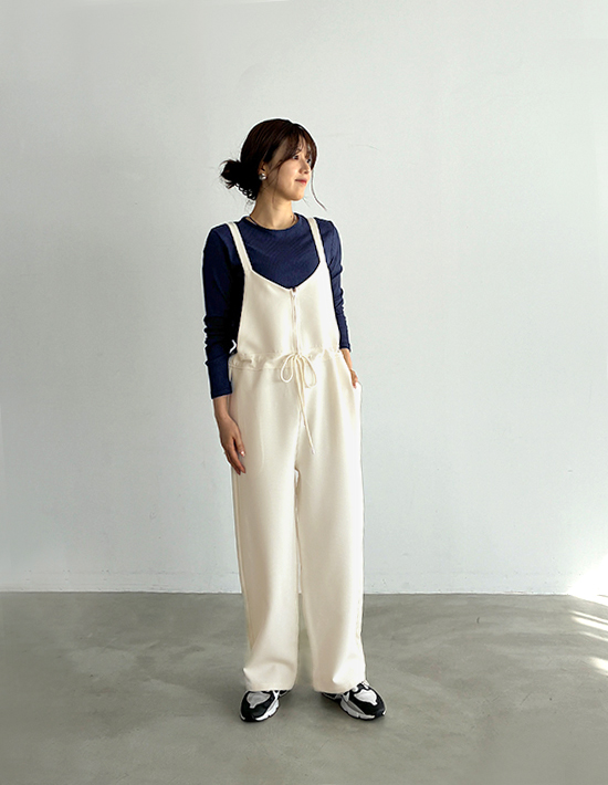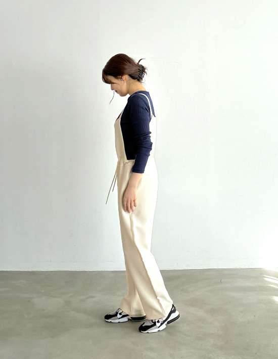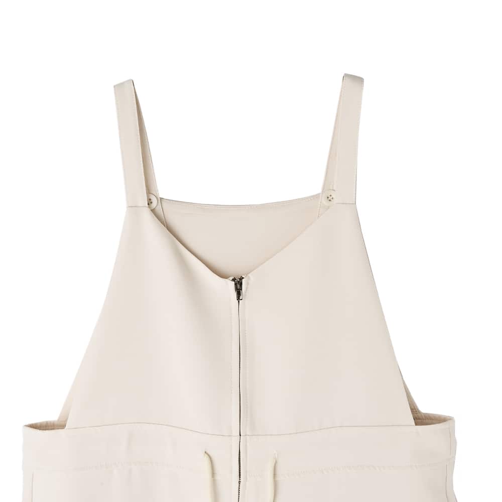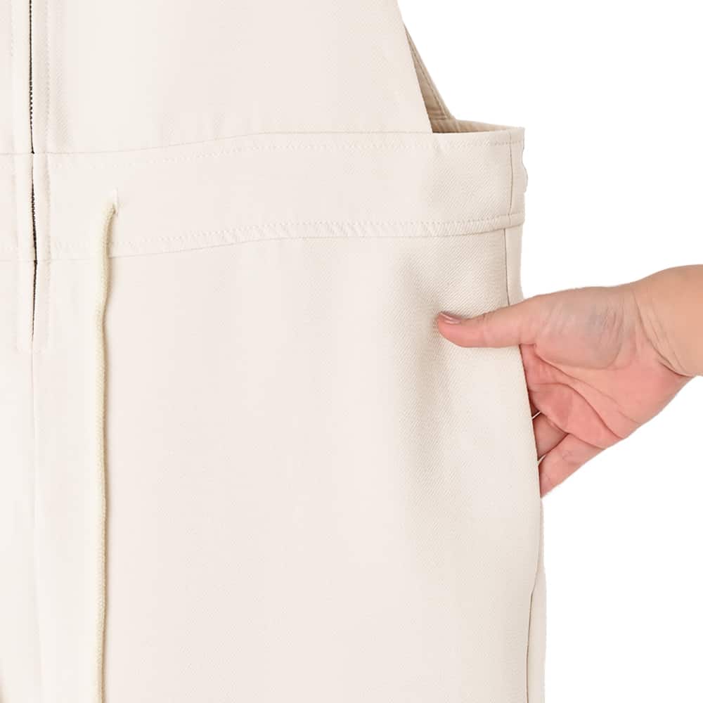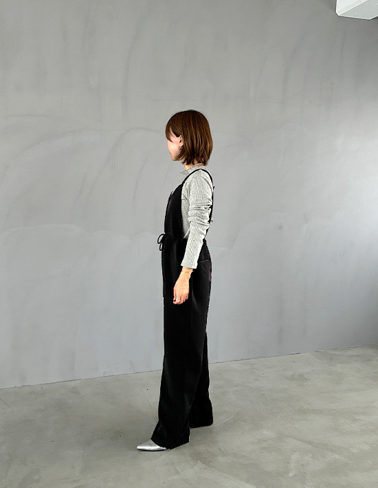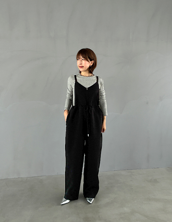【調整幅15cmで高身長さんにも対応】このシンプルさが今、なんだか新鮮スッキリとした印象の大人サロペット◆11/13インスタライブご紹介商品◆アーカイブのご視聴はこちらから→【11/13ライブ】【この商品の特徴】◆スッキリとした大人っぽいサロペット◆クセが無く幅広い方に着やすいデザイン◆スタイルが良く見えやすいデザイン◆小柄な方から高身長な方まで対応◆ゆったりとしたサイズ感◆ウエストのシルエット調節が可能◆真冬もOKの生地◆見た目の季節感はフリーで春も使用可能◆手洗いできてアイロン不要◆ほど良くキレイめで少しカジュアル感もあり◆流行りに左右されない雰囲気【この商品の詳細】◆久しぶりにスッキリとしたサロペットが作りたいな、と思って製作をした、大人顔のシンプル系サロペット。カジュアル過ぎないキレイめ感があり、幅広い方に着ていただけるデザインになっています。◆生地は冬対応のしっかりめな着心地で、ほど良くキレイめ感のあるタイプ。商品名に『厚地』とありますが「ツイル生地の中では」という意味で、厚ぼったい感じではありません。いかにも冬限定、という感じの見た目ではなく季節感フリーなヴィジュアルなので、ご自身が暑いと感じるまでは春もご使用いただけます。◆大人っぽさのヒミツはフロントのV字カットにあり。ここは最初直線だったのですが、V字にすることで大人っぽいシャープさが生まれ、身体がスッキリと見えるようになりました(そしてこれによりバストが大きめでも目立たない、という効果も出せました)。◆ゆったりとしたサイズ感ですが、ウエスト位置に切り替えを作り、ファスナーや紐でアクセントを付けることで全身のメリハリ感を実現。気になるところは隠しながら、脚長&スッキリと見えるパターンになっています。◆丈感は背面のボタンで調節が可能。穴は4ホール開けて15cmもの調整幅を作ったので、FREEサイズのみの展開になっています。胸当ての位置はどこに来ても可愛いため、調節によるバランス崩れの心配もご不要。身長170cmくらいの高身長な方でも、短くならずにご着用いただけます。【さらにプラス情報】◆暖かさ:ものすごく暖かいわけではありませんが、けっこう暖かいです。普通に真冬も着用できます。◆厚み:厚み自体はデニムのサロペットと同じ程度ですが、デニム特有の硬さがないため(もっと柔らかい)、それよりも薄く感じられるかと思います。◆重さ:とくに重たさのある素材ではありません。◆ウエスト調節:紐を締めることである程度のシルエット調節が可能。閉めずにゆったりと着てもカワイイですし、キュッと絞ってメリハリを付けるのも素敵です。◆ウエスト紐:パーカーなどの割とカジュアルなアイテムに多用する丸紐を採用。生地がキレイめ寄りなので、ココにデザイン的なヌケ感を入れることで程よくこなれた雰囲気になります。先端にはシルバーのエンドパーツを付けて、カジュアル感が出過ぎないように調節したのもポイントです。◆フロントファスナー:オヘソくらいの位置まで開けることができます。色はツヤありのシルバーです。◆肩紐のずり落ち:とくに落ちやすくはありませんが、骨格に左右されますので落ちることもあるのかもしれません。気になる場合は紐の裏に両面テープを貼ってしまえば、1日を快適に過ごせるため裏ワザとしてお薦めです(帰宅したら剥がす)。◆タイツは噛むか:ゆったりとしているため、タイツやレギンスを入れても全く問題ありません。裏側が裏地のように滑りの良い素材であることも一役買っており、キレイに着用することができます。◆エクリュの透け感:しっかりとしているためほとんど透けません。黒などの透けやすい色を避ければ、基本的には気にならないと思います。※感じ方には個人差があるため確実ではありませんが、私どもはまったく気になりません。もし万が一アウトでしたら、ベージュ系などのペチパンツをご着用ください。◆インナー:カットソーやシャツやブラウスのほか、ニット系も中厚地程度なら中に着ることができます。あまり厚いとスッキリ見えなくなるため、寒い場合は軽いブルゾンやカーディガンを足して→コートを着るなどするのがお薦めです。◆シワ:普通に着ているぶんには気になりません。洗い上り後もアイロンは不要だと思いますが、もしも気になる場合は霧吹きで湿らせて手指でシワを撫で伸ばし→ハンガーに掛けておくか、軽くスチーマーをかけると良いと思います。◆静電気:とくに発生しやすい生地ではありませんが、程度の差はその方の帯電体質具合や合わせアイテムなどによりますのと、冬場は乾燥でどうしても…というところはありますので、もしも気になる場合はエレガードなどの静電気防止スプレー等でご対処ください(おそらく大丈夫だとは思います)。【その他の仕様などの情報】◆着用時期:10-5月頃まで(暑くなければOK)◆サイズ感:ゆったりめのサイズ感(Lサイズ体型にも対応)◆丈感: