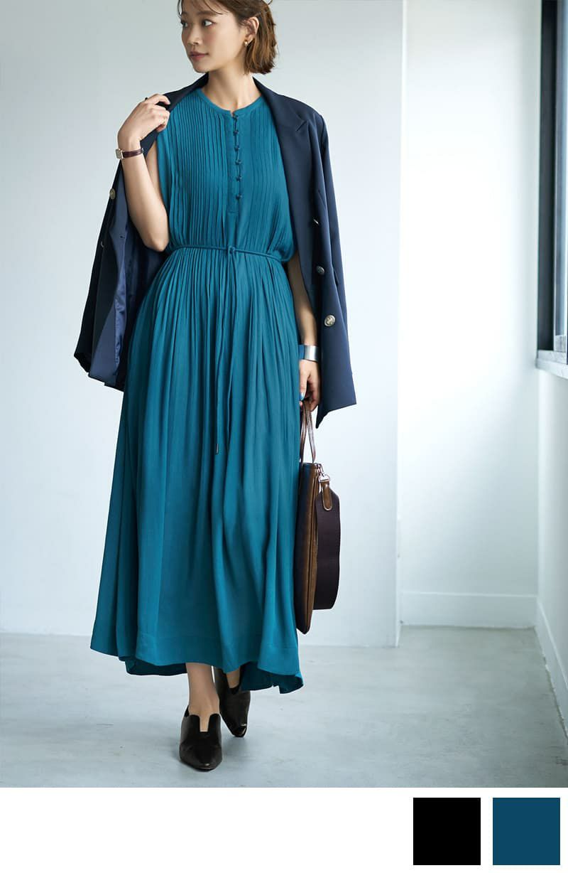 【LUXE】配色ステッチ両裾ファスナーワンピース