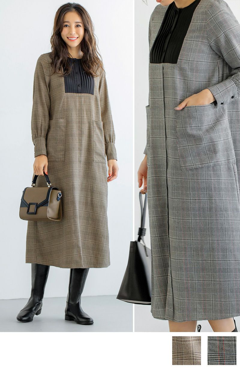 【LUXE】グレンチェック柄プリーツ切替ワンピース