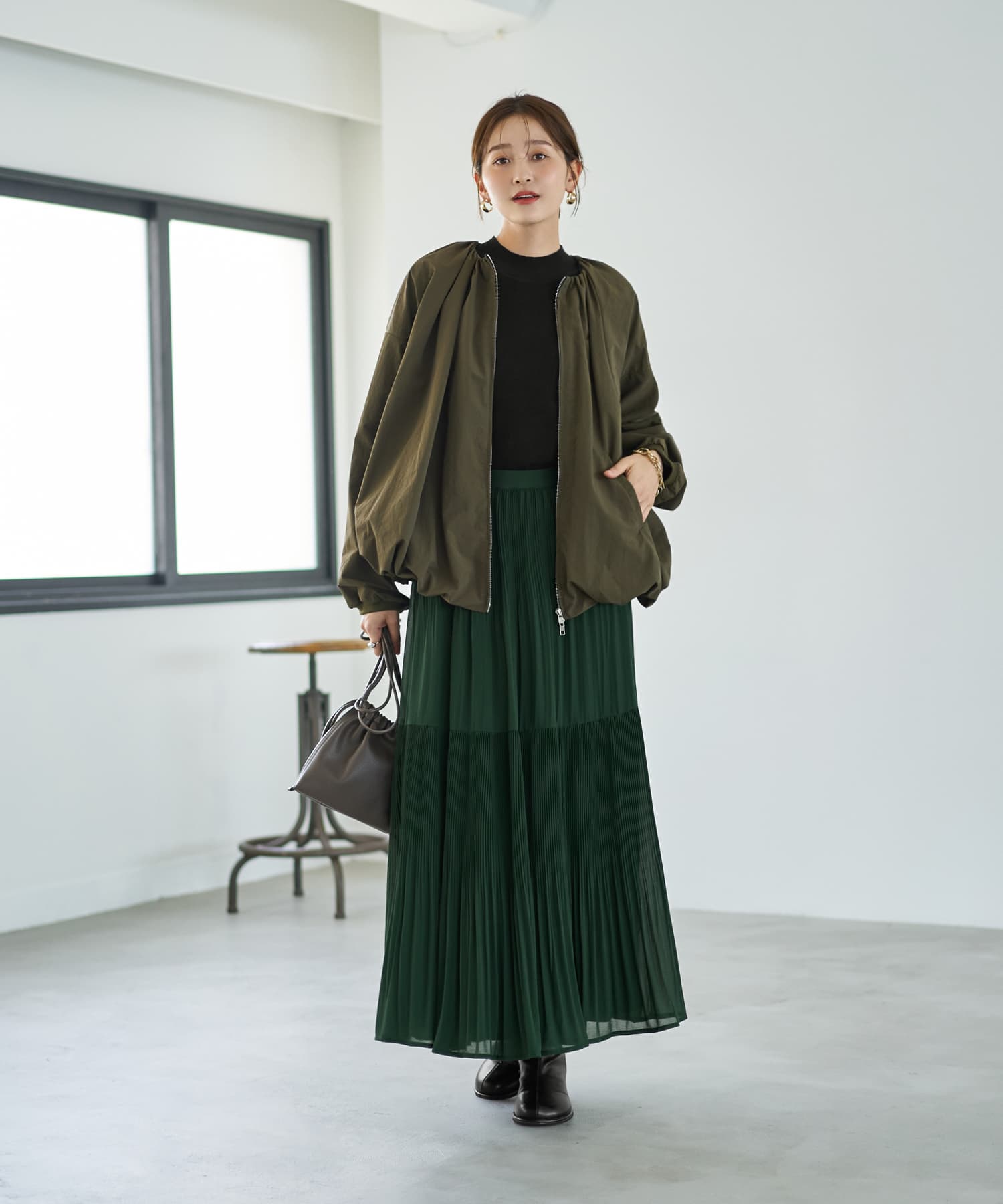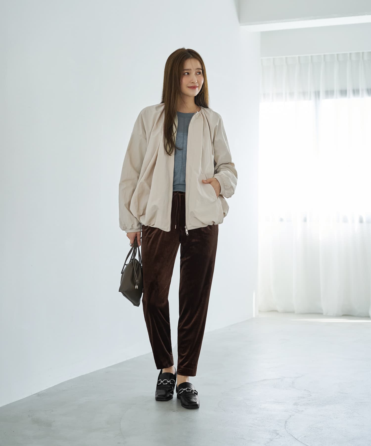 『甘くならない大人のバルーン』をテーマに製作したアウターブルゾン。ドライな質感の生地やクールな色味といった要素で可愛くなり過ぎず、バルーンシルエットならではの立体感が楽しめます。