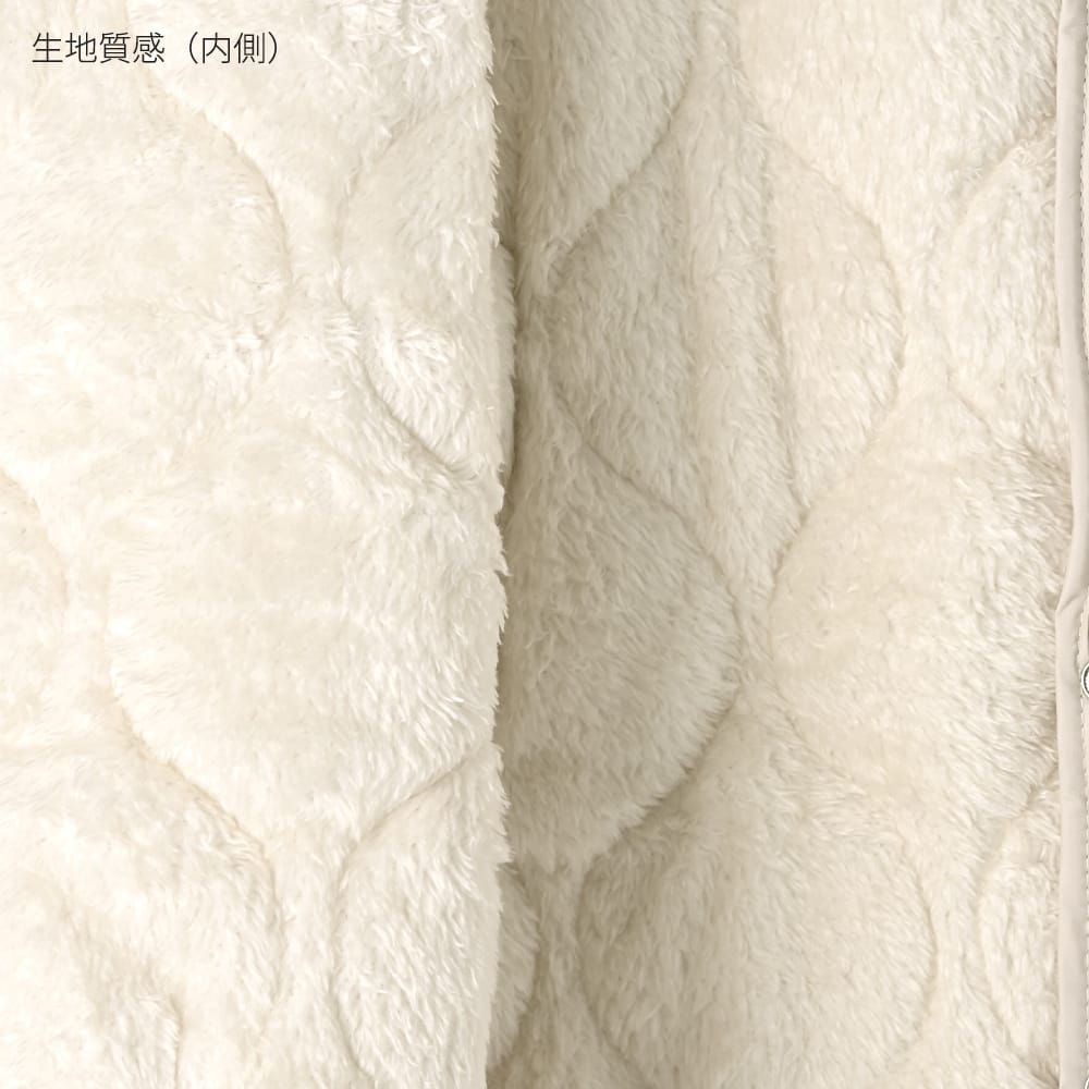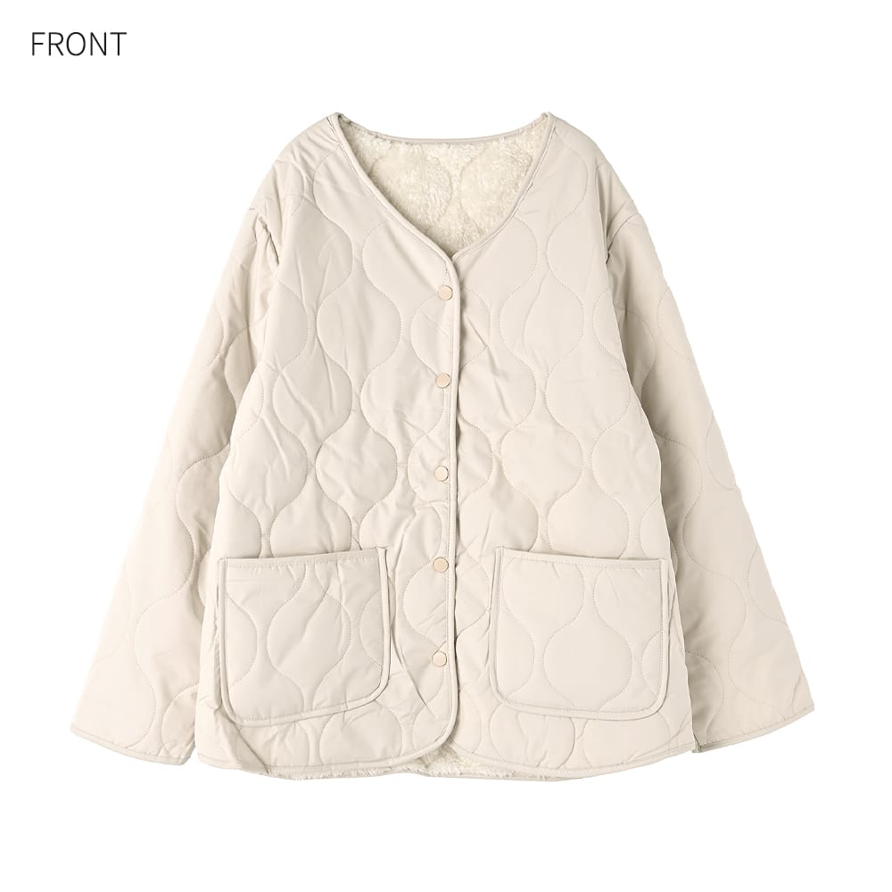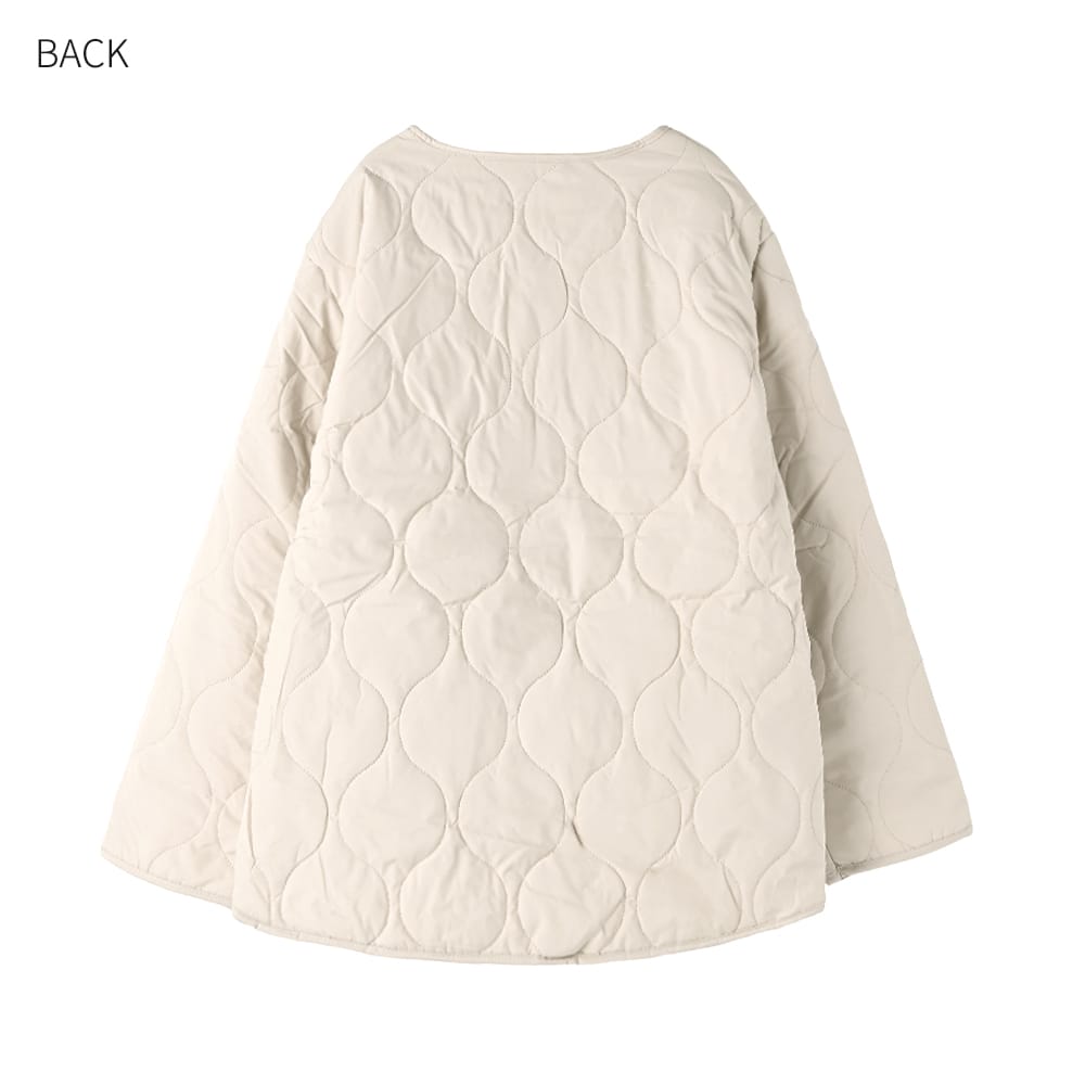 とっても軽くて、スッキリ見えて暖かい買ったけど着る時期がなかった!を防止見た目も可愛く実用&現実的な春コート◆1/8インスタライブご紹介商品◆アーカイブのご視聴はこちらから→【2026/1/8ライブ】【このコートの特徴】◆厚みが無くスッキリとした軽量仕上げ◆内ボアで暖かな着心地◆冬コートの下にも着れる◆インナーダウンより見た目がオシャレ◆膨張しないデザイン◆トレンドのショート丈◆暖かなトップスとしても着れる◆ラフだけど程よくキレイめ感もあり◆かさばらない省スペースアウター◆顔周りがスッキリと見えるVネック◆合わせるボトムスを問わず着回し力◎◆着る人の年代や系統を問わない【このコートの詳細】ひょうたんのような、びいどろのようなステッチが可愛い、スッキリとしたフォルムの中綿ジャケットコート。厚みは控えめで膨張せず、内側がボア張りで暖かさがあります。春になると冬コートは見た目に重くなり、かといって薄手の春コートでは寒い。というのが実際の気候の現実。そうこうしているうちに気温が上がり、せっかく買った春アウターを着るタイミングが少ない、というのは昨今の「あるある」です。ところがこのジャケットコートなら、このように長期間でフレキシブルに使えるため無駄になることがありません。↓◆スッキリとして冬コートの下にも着れるため、かなり寒い1/20~2/20頃の極寒期にも活躍。インナーダウンのような役割を、インナーダウンよりもオシャレなヴィジュアルで果たします。◆アウターとしてだけではなく、前を閉じてトップスのように着るのもカワイイ。室内で着ていてもおかしさの無いスッキリ感なので、寒い時期のお洋服としても活躍します。◆職場や庭での作業時など、肌寒さを回避しながら軽快に動きたいシーンにもお薦め。キレイめコーデにもカジュアルな格好にも合うデザインです。◆(実際にはけっこう寒い)春先になったら、いよいよ本来の役割であるアウターとして活躍。トレンドのショート丈でファッション性もバッチリです。【さらにプラス情報】◆暖かさ:春用の軽アウターとしてはかなり暖かさがある方。真冬のアウターとしては少し役不足。ただしインナーダウン的な存在としてはかなり優秀。車移動の方や暖かい地方にお住みの方ならこれで冬も越せると思います。◆サイズ感:イイ感じにゆったりとしており、11号体型までの方に対応。バストが大きい方でもパツパツになることはありません。アームホールや袖幅にもゆとりがあります。◆重ね着:中に厚手のニットを着込んだり、ジャケットの上に羽織ったりする程度のゆとりはあります。意外と何を着ていても羽織れます。◆軽さ:アウターとしてはかなり軽量です(480グラム程度)。◆膨張:こういった系統のアイテムの中では、かなりスッキリと見える方です。不要にボリュームアップしてしまうようなことはありません。◆お手入れ:中綿アイテムなので一応は手洗い不可ですが、最近は何でも家で洗う方も多いので、行いたい場合はネットで「中綿コート 手洗い」などのワードを検索してやり方を見て、自分で行うのも良いと思います(ただし恐れ入りますがトラブルの際は免責とさせていただきますので、自己責任でお願いいたします)。◆静電気:とくに発生しやすい生地ではありませんが、程度の差はその方の帯電体質具合や合わせアイテムなどによりますのと、冬場は乾燥でどうしても…というところはありますので、もしも気になる場合はエレガードなどの静電気防止スプレー等でご対処ください。【その他の仕様などの情報】◆着用時期:11-4月頃が目安◆サイズ感:ゆとりのあるサイズ感(Lサイズ体型にも対応)◆丈感:前は脚の付け根が隠れる丈感/背面はヒップの大部分が隠れる長さ◆シルエット:ストレート◆首元:カーブがかったVネック◆肩幅:広め◆アームホール:普通(とくに狭くも広くもない一般的な開き加減)◆袖幅:普通◆袖丈:長袖(手の甲が隠れる長さ)◆袖口:何もなし◆厚み:中綿アウターとしてはスッキリめ◆重さ:軽量(480グラム程度)◆柔らかさ:ハリ感の中に柔軟性もあり◆肌触り(表):サラッとしてハリっとした感じ◆肌触り(裏)細かくなめらかな毛布や起毛ブランケットのような感じ◆着用ジワ:できにくい◆毛羽立ち:できにくい◆伸縮性:ややあり◆光沢感:ほぼなし◆透け感:なし◆スリット:なし◆着脱:フロントスナップボタン開き◆ボタン:生地と同色染め◆ポケット:フロント左右にあり◆裏地:なし(裏ボア仕上げ)◆手洗い:一応は不可(説明文参照)◆アイロン:不要◆スチーマー:使用OK【お色について】◆ブラック:定番的な通常のブラックです。◆ブライトベージュ:ごく明るいイエロー系ベージュ。着ているとベージュという印象はあまり無く、「白っぽい感じのアウターを着ている人」という印象になります。【お知らせ事項】一般的に内ボア製品は、使い始めに繊維のカスが若干落ちるため、黒のニットなどに多少付着します。そんなに沢山付