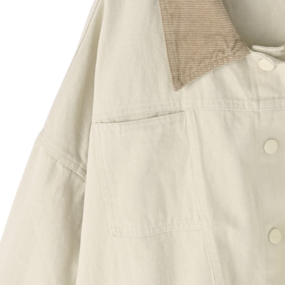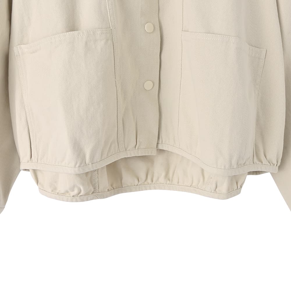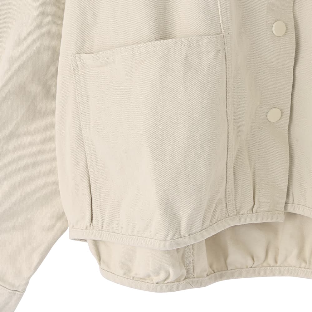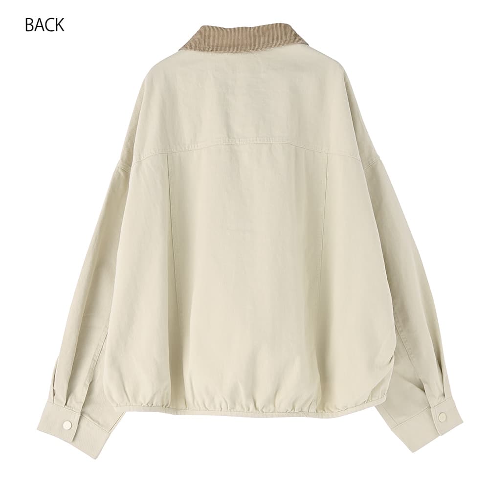 スカートやワイドパンツが多い方に◎肩凝りとは無縁の軽やかない着心地コットン素材の旬ディテールアウター◆2/19インスタライブご紹介商品◆アーカイブのご視聴はこちらから→【2026/2/19ライブ】【このアウターの特徴】◆旬な雰囲気を持つ春・秋用アウタージャケット◆カジュアル感やメンズ感が控えめで女性らしい◆若過ぎる感じに見えない大人仕様◆最近人気のショート丈感アウター◆綿100%素材で軽やかな着心地◆意外と何にでも合う、高い着回し力◆丸みを出した裾処理がカワイイ◆今どきボトムスやスカートとの相性◎◆老け見えしない洗練デザイン◆体型を強調しないゆったりめのサイズ感【このアウターの詳細】◆寒さの山を超えた時期から活躍する、軽く羽織れる中間シーズン用アウター。Gジャンのような気軽な感覚で羽織れるブルゾンです。◆ゴワつきが心配なコットンアウターですが、これは適度に柔らかく・スッキリとした感じで着れるタイプ。動きづらい硬さなども無く快適です。◆厚みが控えめなので真冬の時期はこの上に冬コートを着るのもOK。室内で着ていても違和感の無い軽さがあり、シャツジャケットやカーディガン的な使い方もできます。◆旬なフィールドコートの雰囲気を取り入れたデザイン。素材もコットンですが何故か女性らしさがあり、強いカジュアル感やメンズライクなテイストが苦手な方にもお薦めです。◆最近のトレンドである短めアウターですが、極端に短いわけでもない大人仕様。フレアスカートなどの広がるボトムスやワイドパンツなどと相性の良い丈感で、今っぽい雰囲気になります。 ◆自然な丸み立体感が出る、斜め後ろや背面から見たシルエットがとてもカワイイ。背中の厚みや肉感をカバーし、年齢感の無い後ろ姿を作ってくれます。◆裾はトリミング状に生地を挟み込みギャザーを付けた、凝っていて珍しいデザイン。シルエットの可愛さや女性らしさはここから生まれています。◆配色襟の色は両色で共通。ミルクキャラメルを少し薄くしたような明るいベージュで、冬っぽさの無いタイプのコーデュロイ生地です。→この明るいベージュが着回しにくさや似合う人の肌色を問うかと言えばNOで、それがこのジャケットの秀逸ポイント。いわば人間の肌のような役割りをするため馴染みが良く、色として主張してくることがありません。襟としての主張も控えめになります。=襟付きデザインやベージュが苦手な方にもその影響を与えず、お薦めできます。【さらにプラス情報】◆暖かさ:Gジャンよりも若干涼しい感じ。春先の軽いアウターとしては及第点。ゆったりとしているため、中に着込んでもっと暖かく着ることもできます。◆重さ:アウターとしては超軽量の部類に入る軽さ。シャツジャケット的な感じの軽やかな着心地です。◆ボタン:スナップボタンの表面が平らでスッキリとしており、オシャレなところもポイント。これがカジュアル感やコドモっぽさを軽減するのに大きな役割を果たしています。◆着用ジワ:肘の内側などのシワが心配、というイメージがコットンにはありますが、これはさほど気にならないタイプ。Gジャンもコットンですが気にならないのと同じ感じで、これもシワが(完全にゼロではないけど)気にならない、というイメージです。◆お手入れ:もしも気になるシワができた場合は、霧吹きをたっぷりとかけてやや大袈裟気味に湿らせ、手指でシワを撫で伸ばして→ハンガーに掛けておくと良いと思います。アイロンは不要ですが、お好みでかけてもOKです。◆手洗い:素材的に手洗いは可能ですが、洗う頻度は極力抑えて最低限にするのが良いと思います。柔軟剤を省くと繊維がギュッと縮み、生地が硬くなりますのでご注意ください。※アウターですので、日常的な殺菌や消臭、花粉などの対策はスチーマーで行い、シーズンオフに1回クリーニングに出すだけでも十分です。【その他の仕様などの情報】◆着用時期:春先と秋口/冬はこの上にコートを着てもOK◆サイズ感:ゆったりとしたサイズ感(LLサイズ体型にも対応)◆丈感:前は脚の付け根程度の丈感/背面は腰が隠れる長さ◆シルエット:丸み立体感系(前から見るとストレートっぽい)◆首元:ステンカラー◆肩幅:問わないタイプ(ドロップショルダー)◆アームホール:広い◆袖幅:広い◆袖丈:長袖(指が半分出る長さ)◆袖口:カフス+スナップボタン1個あり◆袖のたくし上げ:可能◆厚み:アウターとしてはやや薄手◆柔らかさ:柔らかさよりはハリ感が勝る◆肌触り:サラッとしたコットン生地の肌触り◆着用ジワ:気にならない◆毛羽立ち:できにくい◆伸縮性:なし◆光沢感:なし◆透け感:なし◆スリット:なし◆着脱:フロントボタン開き◆ボタン:スナップボタン◆ポケット:フロントの左右および上下に計4つあり◆裏地:なし◆手洗い:可能◆アイロン:不要◆スチーマー:使用OK【お色について】◆ネイビー:明度は暗めでブルーの色素が控えめのネイビーです。◆ブライトベージュ:エクリュと