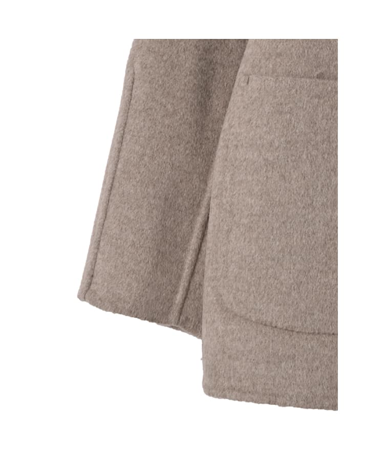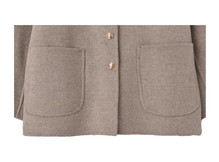 ◆こだわりのお素材を使用しています◆アウターにもジャケットにもなる高い汎用性。ゴールドが効いた上品カシミヤ混ウール素材。 ーいつものデリより生地やデザインに凝った、ワンランク上のLUXE(ラグゼ)ライン。ウール88%にカシミヤ12%をブランドした、高級素材のジャケットコート。目にしただけで『良いもの』とわかるこちらは、大人にこそ相応しいクラス感が素敵な一枚です。昨年のデビュー後、大好評につき完売していたこちらですが、夏の間に閑散期生産していた追加生産分のストックをこの度解放。12月でもコレで十分!とおっしゃるお客様も多い、軽くて暖かなアウタージャケットです。補充枚数はそんなに多くなく、これ以上の追加生産は不可となっていております。これが最後のチャンスとなりますので、気になっていらした方はぜひご利用くださいませ。 ◆適度にハリのあるなめらかな質感。ウール系の生地ですがチクチク感は無く、カシミヤならではの肌当たりの良さを感じることができます。◆カシミヤの特徴である、内側から発光するような『なんともいえない艶感』も素敵。さりげなくなめらかな艶が大人の肌を美しく見せてくれます(光沢感とは異なる、品良く滲み出るような艶です)。◆高級なお素材をリバー仕立てにした贅沢なお作り。裏側もオモテ側と同様の美しい生地=ダブルフェイスなので、脱いで無造作に置いておいても絵になる美しさがあります。動くときに何気なく裏側が見えても、飲食店などでハンガーに掛かっているときも、常に素敵な裏地無しのお仕立てです。◆厚ぼったさが無く軽量な着心地(重さ約690グラム)暖かい日はアウターとして。寒い日にはこの上からトレンチコートや薄手のコートを重ねるのがお薦めです。◆見た目のアウター感は強くないため、室内でも着たままでOK。寒いときに役立ちます。◆中に重ね着もしやすい、余裕があるサイズ感。Mサイズ→9号体型までの方に。Lサイズ→11号体型の方に適しています。厚手のニット→OKです。◆前は太もも上部にかかる丈感。後ろはヒップが隠れる長さ。スカートにもパンツにも合います。◆ポイントとなるボタンはゴールドで全色共通。黄味の強くない、落ち着きがあるキレイなゴールドボタンです。ドーム型でカレッジボタン風の凹凸柄が入っています。◆ポケットは3つ。胸には左側だけにあり、これがあることでバスト部分がのっぺりとせず、胸の膨らみが悪目立ちしないようになっています。両側だとしつこいので、片側だけのアシンメトリーにすることで視線を分散し、バランスの良いメリハリ感を作っています。◆袖丈のお直し:リバー仕立てのままで同じ仕様で仕上げることは難しいお店がほとんどですが、普通のコートのように縫ってしまうことはできると思います。それぞれスキルが違いますので、お直し屋さんにご相談してみてください。◆シワや毛玉はできにくいお素材です。◆上品な雰囲気ですが、デニムなどでヌケ感を入れた着こなしをするのも素敵です。◆こちらは高級お素材を使用しておりますので、手洗いは試みずにクリーニングをご利用ください。日常的なお手入れは洋服ブラシで毛並みの方向に添ってホコリ等を落とし、消臭・殺菌はスチーマーで行えばOKです。ニオイや汚れが気になるようになったら、クリーニングに出す程度で十分です。【商品の特徴】◆着用時期:秋冬および春先◆暖かさ:ジャケットとしては準コート級に暖かい◆サイズ感:適度にゆったりとしたサイズ感。◆丈感:下腹部とヒップが隠れる丈感◆シルエット:ストンとしたストレートライン◆柔らかさ:柔らかい◆着用ジワ:できにくい◆毛羽立ち:できにくい◆伸縮性:なし◆光沢感:なし◆透け感:なし◆ボタン:あり(フロントに6つ)◆ファスナー:なし◆ポケット:前身頃の両サイドと左胸にあり◆裏地:なし◆手洗い:家庭洗濯不可◆アイロン:可能(低アイロン)◆重量:約690g◆撥水加工:なし【お色について】◆ブラック:一般的な定番のブラックです。◆アイボリー:ほんのりとピンク味を含む発色が可愛い、クリーム色系の温かなホワイトです。◆グレージュ:淡いグレージュと濃いグレージュのミックスカラーです。【SNS用ハッシュタグ】#235213ウールカシミヤリバーコートジャケット(このハッシュタグでInstagramなどSNS内で検索をしますと、こちらをお持ちのお客様のご投稿があれば、簡単に見つけてご覧いただくことができます)