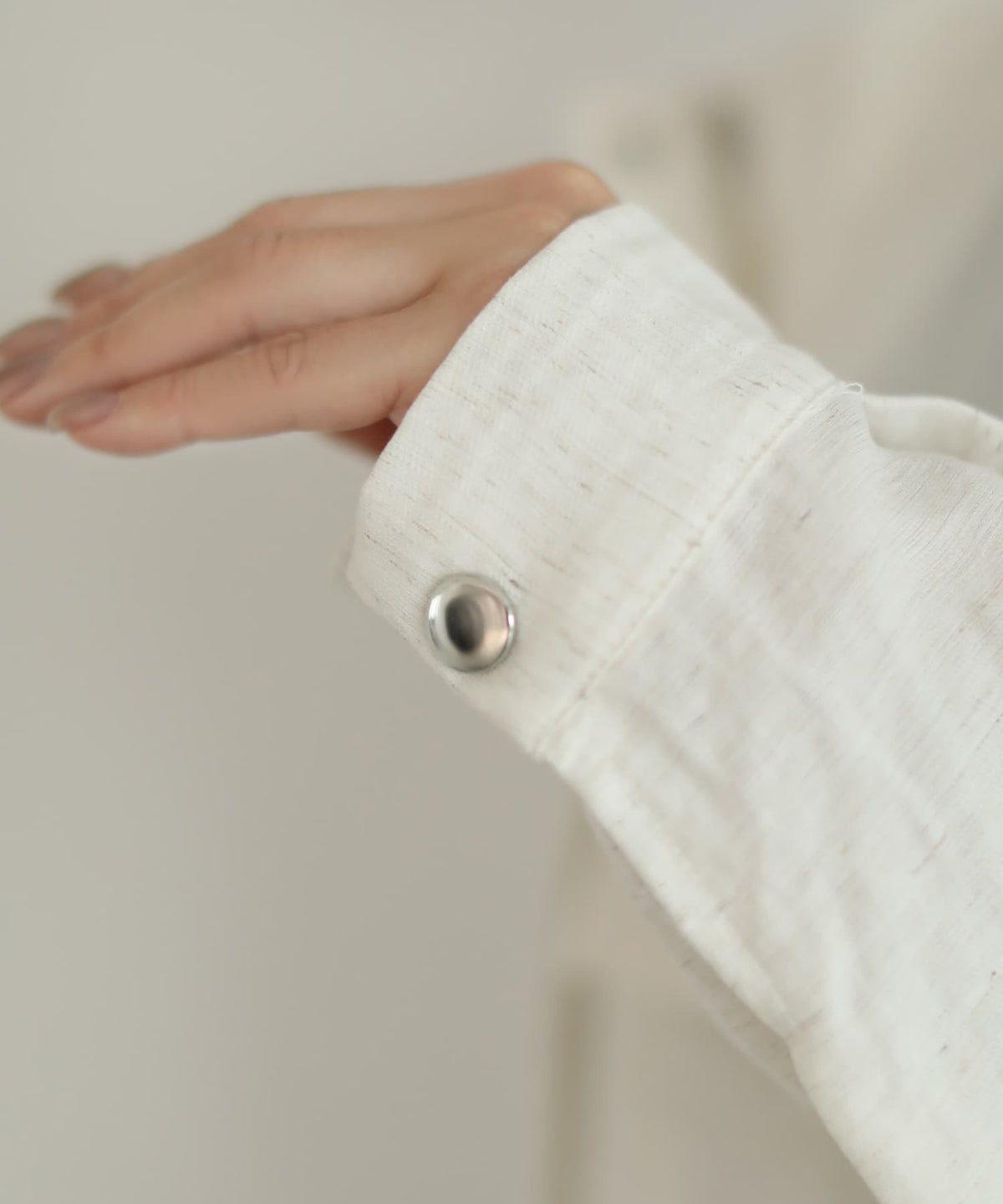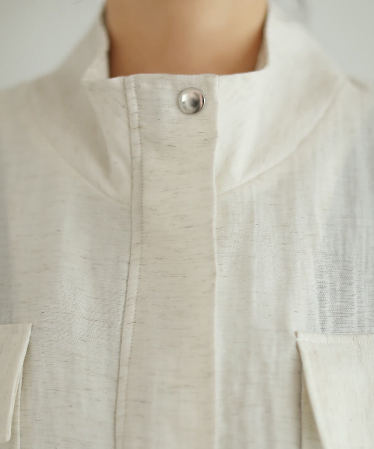 メタルボタンの柔らかノーカラージャケット