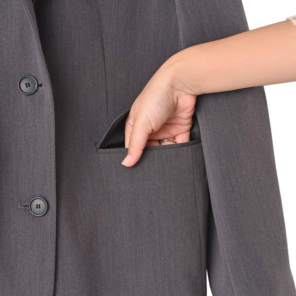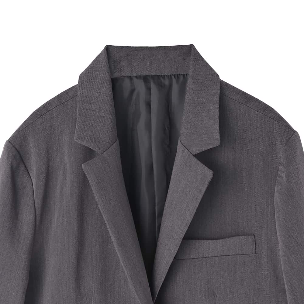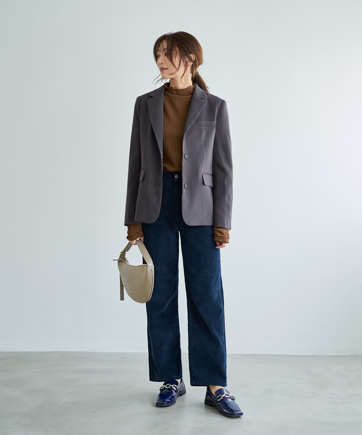 【ジャケットにおける生地の重要さを実感】どこにも無い色味と珍しい織り方で差が付くオシャレで美しい通年テーラードジャケット◆11/6インスタライブご紹介商品◆アーカイブのご視聴はこちらから→【11/6ライブ】【このジャケットの特徴】◆生地と色味の絶妙なオシャレさが特徴◆形自体はとてもシンプルでベーシック◆非オーバーサイズのベーシック系フォルム◆小柄な方にもバランスがとりやすい◆冬素材ではなくスッキリとした通年生地◆この上に冬コートを着れるサイズ感【このジャケットの詳細】◆生地の織り方がとても素敵なシングルテーラードジャケット。少しかすれたような織り柄に雰囲気があり、着ていると「オシャレなジャケットだなぁ」という印象を与えます。ジャケットの良し悪しとオーラはなんといっても生地に出ますので、そのことをご存知の方にとてもお薦めです。◆ありきたりではない絶妙な色味もこのジャケットの特徴で、そのオシャレさの要素になっています。↓ ↓ ↓●グレー:パッと見はダークグレーですが、糸の中にピンクの光沢糸が少量混ざっており、角度によってピンクの膜のような色味がごく控えめに浮き上がります。4色の糸(チャコール、グレー、白、ピンク)を使用しているため織り柄もよく見えますが、量が多いのはグレーの糸なので、それがチャコールと混ざり『ダークグレー』の印象になります。●ミッドナイト:チャコールグレーとスミクロ、ネイビーを混ぜたようなダークカラーの集結的カラー。ブラックよりは明るいものの○色という印象が無く、とても不思議で魅力的なお色。色が曖昧なので印象が固定されず、その効果で合わせやすさもあります。糸色は混ざっていますがどれも明度が暗いため、織り柄感は見えません(=単色糸織りに見える)。【さらにプラス情報】◆暖かさ:通年仕様のスーツ系ジャケットと同じ程度。春・秋は軽い羽織りアウター的に使えますが、冬はこの上にコートを着る感じです。◆サイズ感:オーバーサイズではなく、スーツのジャケットのような自然なゆとりのサイズ感。11号体型までに対応。中に厚手のニットは→着れますが大きいものや分厚いものは窮屈になることもあります。◆雰囲気:上品でキレイめな感じ。デニムなどを合わせてもカジュアルになり過ぎず、キレイめ感のある印象になります。◆ボトムス:スカートでもパンツでも合います。ワンピースももちろんOKです。◆肩パッド:肩幅を強調しない、肩の形を整える為のごく薄いものが入っています。コレが無いとジャケットとしての形が整わない為、肩パッドが苦手な方が思う肩パッドの概念とは別に考えた方が良いような存在です(取り外しはできません)。【お手入れについて】こちらはきちんとしたジャケットなので、ラフに洗ってしまいますと型崩れのリスクなども想定できることから、念のため洗濯OK表示は付けておりません。ただ最近はネットでやり方を調べてジャケットでも洗ってしまうという方もおりますので、そこはご自身の判断によるかなと思います。もしも行う場合は自己責任で行っていただき、トラブルが生じた際は免責とさせていただきますので、予めご理解をお願いいたします。【その他の仕様などの情報】◆着用時期:10-5月が目安(夏以外)◆丈感:前は脚の付け根が隠れる丈感/背面はヒップの半分以上が隠れる長さ◆シルエット:ストレート(ウエストシェイプなし)◆首元:テーラード◆肩幅:少し広め◆アームホール:普通-やや広め◆袖幅:自然な太さ(細くも太くもない)◆袖丈:長袖(手の甲が隠れる長さ)◆袖口:ボタン3個(開閉可能)◆袖のたくし上げ:可能◆厚み:(ジャケットとして)標準的◆柔らかさ:しなやかさとハリ感が共存◆肌触り:サラッとした感じ◆着用ジワ:できにくい◆毛羽立ち:できにくい◆伸縮性:ややあり(裏地はなし)◆光沢感:なし◆透け感:なし◆スリット:背面にベンツ式スリットあり◆着脱:フロントボタン開き◆ボタン:生地と色味を馴染ませたマーブル模様◆ポケット:フロント左右にフラップ付きポケットあり(胸ポケットは飾りポケット)◆裏地:あり◆手洗い:不可◆袖の丈詰め:お直しに出していただけますが、ボタン位置をズラしたりなどの相談が必要◆アイロン:不要◆スチーマー:使用OK【お色について】説明文前半に記載しております【SNS用ハッシュタグ】#236009かすれ織りテーラードジャケット(このハッシュタグでInstagramなどSNS内で検索をしますと、こちらをお持ちのお客様のご投稿があれば、簡単に見つけてご覧いただくことができます)