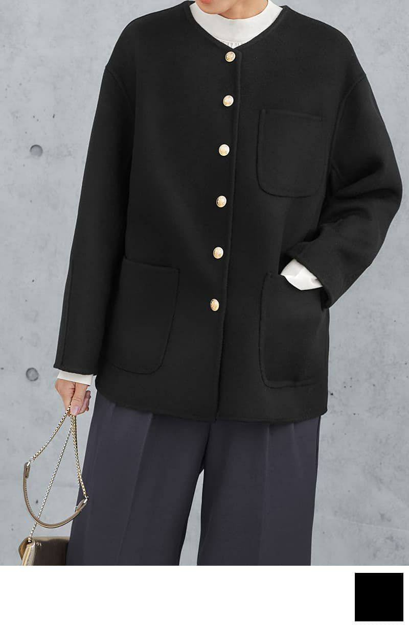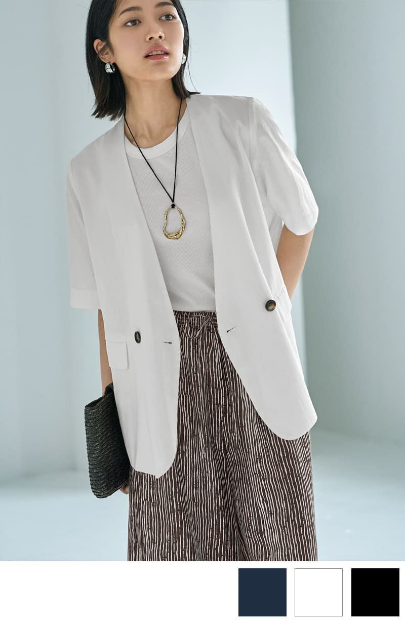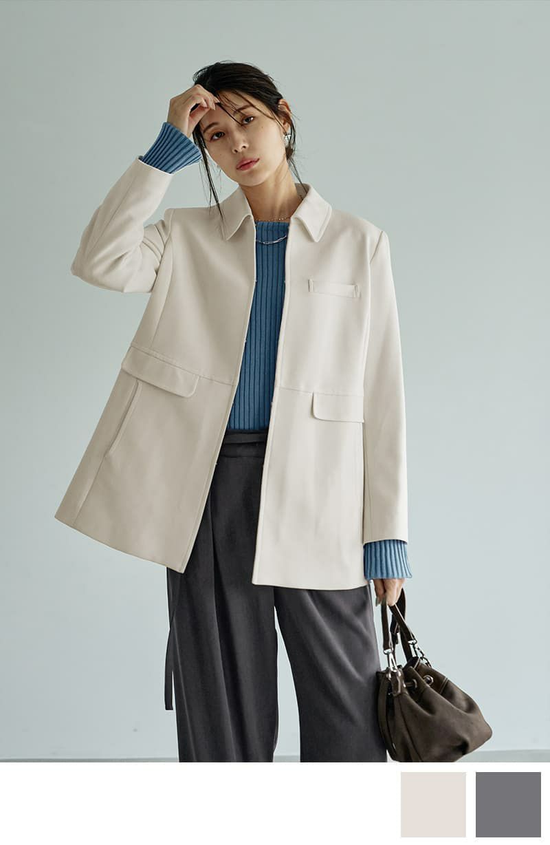【Made in JAPAN】Aラインノーカラージップ ジャケット