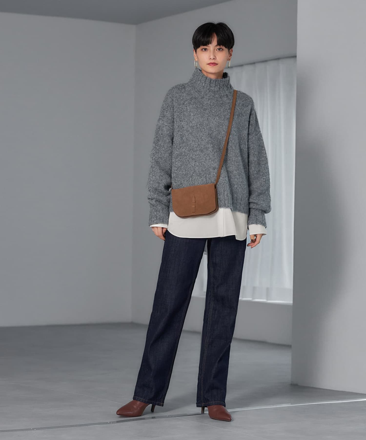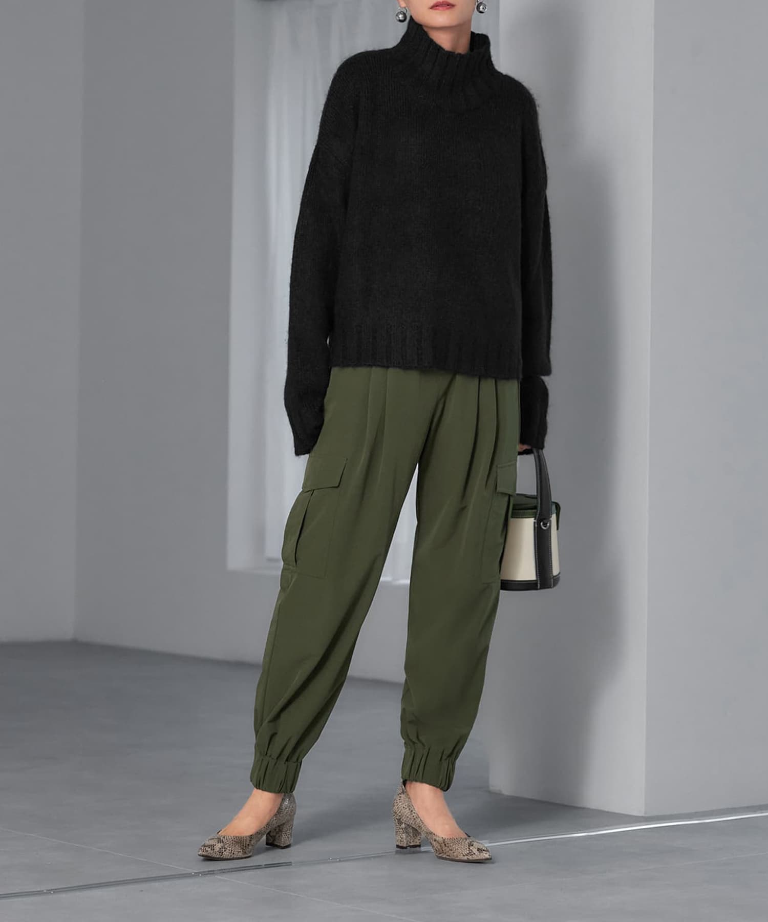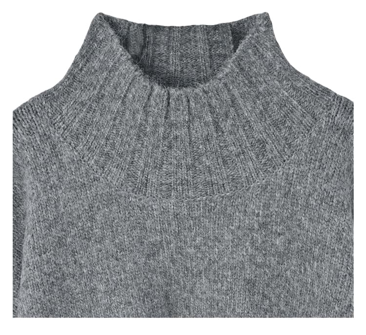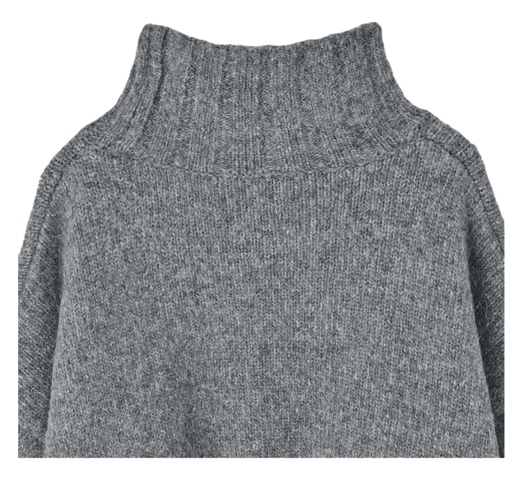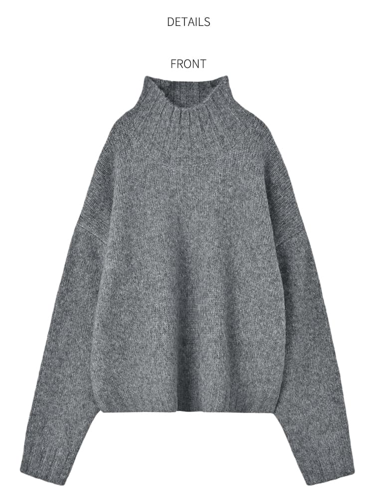 もっちり・ふんわりな素材がカワイイ襟の形にもこだわったハイネックニット 高級素材ブレンドならではのモッチリ・ふんわりとした風合いが可愛い、ハイネックのニットトップス。ワイドな身幅と短めな丈感というシルエットが今っぽく、ロングスカートやワイドパンツ等の今どきボトムスをバランス良く着こなせます。襟元もゆとりがあり、ハイネックが首に付かずに締め付けの無い設計。そのため首の太さや短さが気になる方にも、気軽にトライしていただけるデザインになっています。こだわりの素材で見た目の高級感もありますし、期待を裏切らずに暖かさも抜群。この冬を通して大活躍しそうなニットですし、定番的なデザインなので長く愛用できそうです。※こちらは再公開商品です。過去のインスタライブ紹介は2023年9/5および9/7のアーカイブ動画でご覧いただけます。 【商品の特徴】◆着用時期:秋冬(3月の寒い日頃まで)◆サイズ感:ゆとりのあるサイズ感◆丈感:脚の付け根程度の丈感◆首元のデザイン:ゆとりのあるハイネック◆厚み:安心感のある厚み◆柔らかさ:柔らかくモチモチとした感じ◆着用ジワ:できにくい◆毛羽立ち:摩擦の集中と着用頻度により、たまにおきることもあります(できた場合は毛玉取りクリーナー等でご対処ください)◆伸縮性:あり◆光沢感:なし◆透け感:なし◆ボタン:なし◆ファスナー:なし◆ポケット:なし◆裏地:なし◆手洗い:不可◆アイロン:可能(低アイロン)【お手入れについて】こちらはデリケート素材を含有した風合いを大切にしている商品ですので、万が一のトラブルに配慮し、手洗いOK表示は付けておりません。基本的にはドライクリーニング推奨となりますが、どうしてもご自宅でお手入れを行いたい場合は『アルパカ ニット 手洗い』などでやり方をネット検索していただき、ご自身の判断による自己責任において行うようお願いいたします。※もしもトラブルが生じましても免責とさせていただきますので、予めご了承をお願いいたします。◆スタッフの場合は◆→ニットを着る際はインナーを着用することもあり、よほど汚れたとき以外は洗いません。汚れというよりニオイが気になる場合は衣類用消臭スプレー後にスチーマーで殺菌による消臭を行います。汚れたなと感じた際はクリーニングに出し、頻度はシーズン中に1、2回と、シーズン終わりの収納の際に1回程度。がスタンダードな感じになります。【チクチク感について】敏感肌のスタッフたちでもあまり感じませんので大多数の方には問題がないと思いますが、微量な獣毛混素材ですので、本当に敏感な方には刺激を感じる可能性も考えられます。チクチク感に対して超敏感な方には、100%コットンや100%アクリルなどのサッパリとした肌触りのニットがお薦めです。【お色について】◆ブラック:通常の定番的なブラックです。◆グレー:濃淡のグレー糸の中に、白い糸が混ざったお色です。◆アイボリー:肌馴染みが良く、暖かみのあるバニラのようなホワイトです。【SNS用ハッシュタグ】#235009アルパカ混スタンドネックハイネックトップス(このハッシュタグでInstagramなどSNS内で検索をしますと、こちらをお持ちのお客様のご投稿があれば、簡単に見つけてご覧いただくことができます)