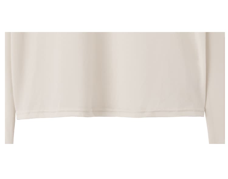お好みに合わせて選べるよう、首元デザインだけを変えたハイネックタイプとクルーネックタイプをご用意しています(※販売ページは異なります)。