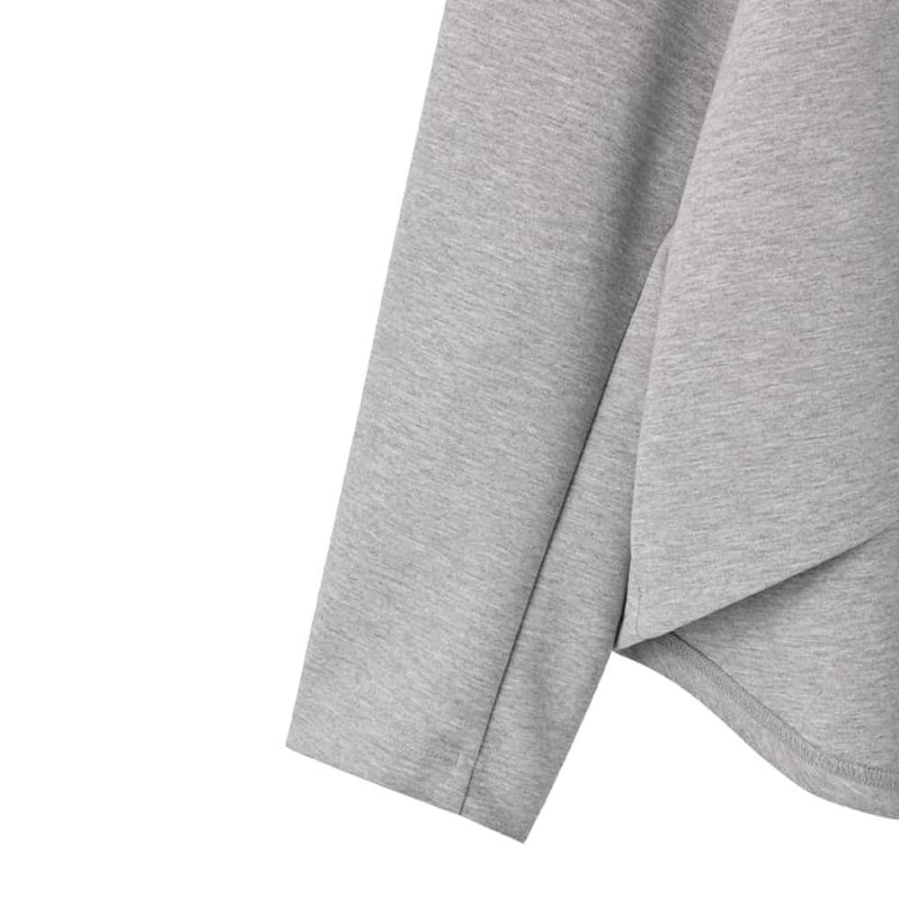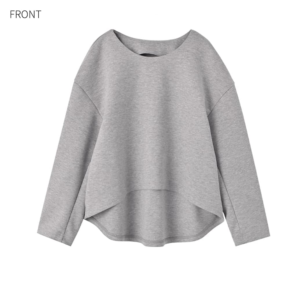 【安心の日本製でこのプライスも魅力】ニット以外のトップスが欲しい方にも◎秋冬対応のしっかりカットソー素材重ね着も楽しい立体フォルムトップス【このトップスについて】◆日本製ならではの縫製と生地質感が美しい、キレイめカジュアルな雰囲気のプルオーバー。生地はダンボールと呼ばれるカットソーの一種で、程よく厚みがありハリ感があるのが特徴です。◆そのハリ感を活かして構築的なフォルムにデザインをした、どの角度から見ても表情がある一枚。袖はカーブを描くように立体的に作られており、これはバナナスリーブなどと呼ばれています。シンプルな中に独特なフォルムが生まれることで、『なんか普通とは違ってオシャレだな』というファッション性が宿ります。◆前後の丈感にわかりやすく差を付け、前は今っぽくショート丈にしているところもポイント。裾のラインにはカーブをかけているので、ここからシャツの裾を見せたり、下にワンピースを着たりという重ね着をしても素敵です。◆どことなくクール系カジュアルな雰囲気を持ちつつ、生地の効果でカジュアルすぎる印象にはならないところも特徴。スムースな表面感で品の良さと高級感があり、キレイめ感をプラスしながら気取らないファッションが楽しめます。【さらにプラス情報】◆暖かさ:生地はしっかりとしており、ニットぐらいの暖かさがあります。真冬のコーデにも使えるしっかり感があるため、ニット以外の冬服が着たい、欲しいときにもお薦めです。◆厚み:しっかりとはしていますが羽織るアウターに困るほどではなく、Gジャンなども普通に着ることができます。◆合わせアイテム:スカートでもパンツでも似合います。丈が短めなのでトレンドのワイドパンツとも相性抜群。ポリエステル系サラサラ生地のワンピースなど、シャツワンピースみたいなものの上から着るのも可愛いです。【その他仕様などの情報】◆着用時期:秋冬メイン◆サイズ感:ゆとりのあるサイズ感◆丈感:前身頃は下腹にかかるくらい/後身頃はヒップにかかるくらいの丈感◆首元のデザイン:詰まっていないクルーネック◆肩幅:問わないタイプ◆袖幅:普通◆袖丈:長袖(手の甲にかかるくらいの長さ)◆アームホール:普通(とくに狭くも広くもない感じ)◆厚み:程よい適度な厚み◆柔らかさ:柔らかさよりはハリ感あり◆着用ジワ:できにくい◆毛羽立ち:できにくい◆伸縮性:あり◆光沢感:なし◆透け感:なし◆ボタンやファスナー:なし(かぶり着タイプ)◆裏地:なし◆手洗い:可能◆アイロン:不要◆スチーマー:使用OK【お色について】◆ブラック:通常の定番的なブラックです。◆ココアグレー:セピアブラウンとグレーの中間のような、赤味の無いブラウン味を帯びたグレー系ニュアンスカラーです。◆ライトグレー:グレーと白糸が混ざった、杢(もく)編みの明るいグレーです。◆チャコール:僅かに赤味を含んだ、ダークグレーよりも少し暗めの深いグレーです。【SNS用ハッシュタグ】#235110バナナスリーブダンボールトップス(このハッシュタグでInstagramなどSNS内で検索をしますと、こちらをお持ちのお客様のご投稿があれば、簡単に見つけてご覧いただくことができます)