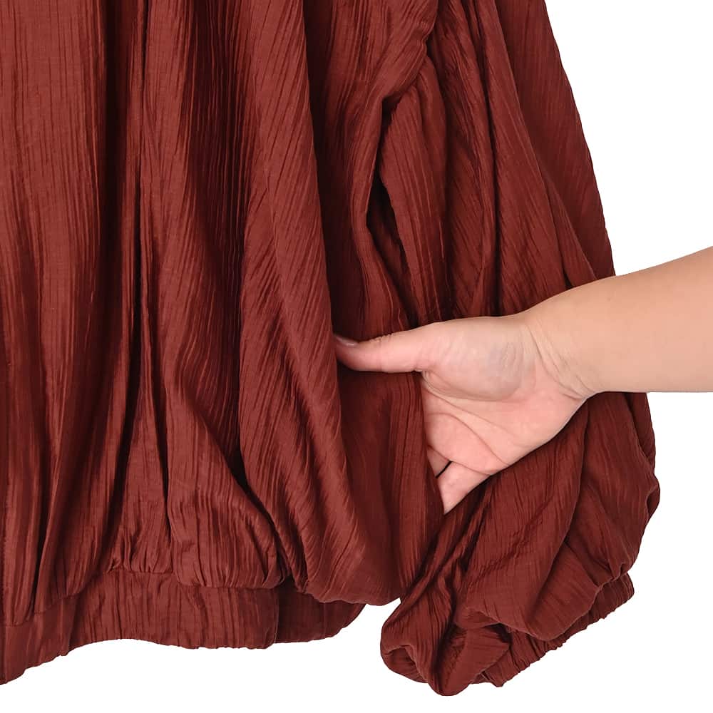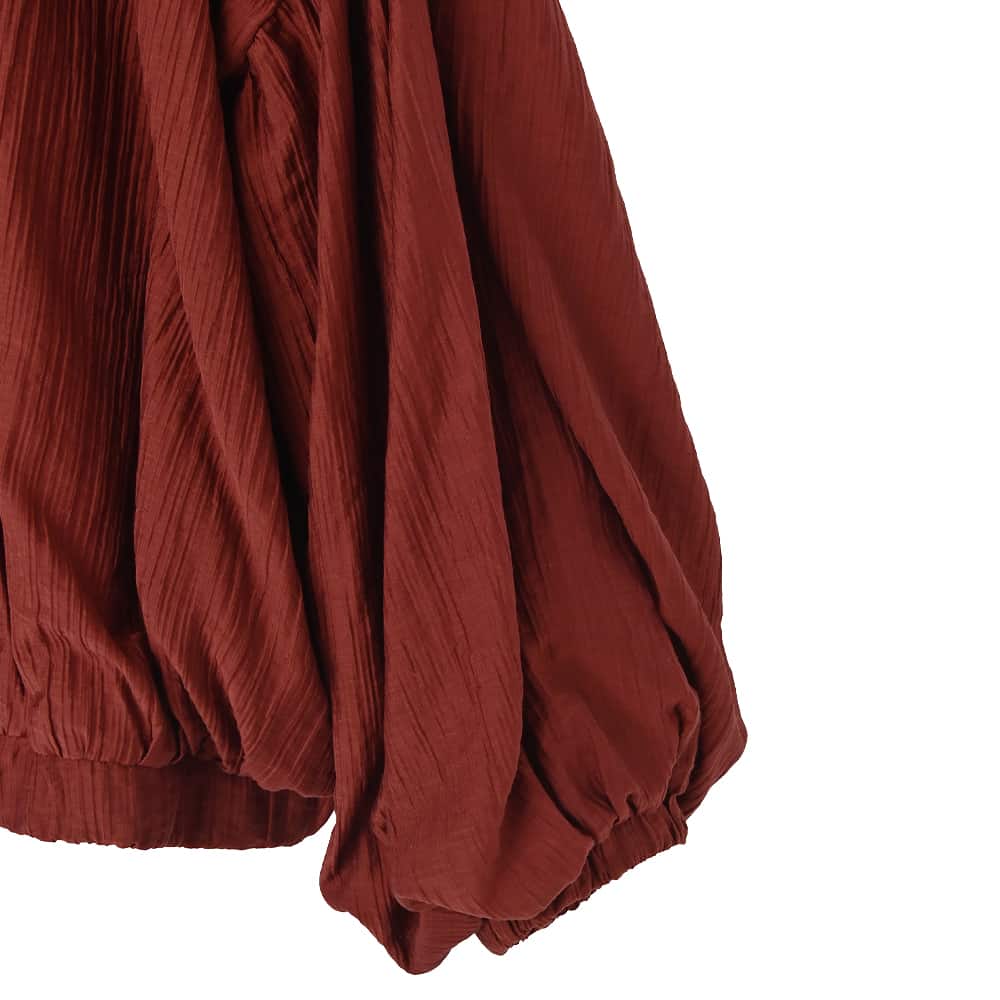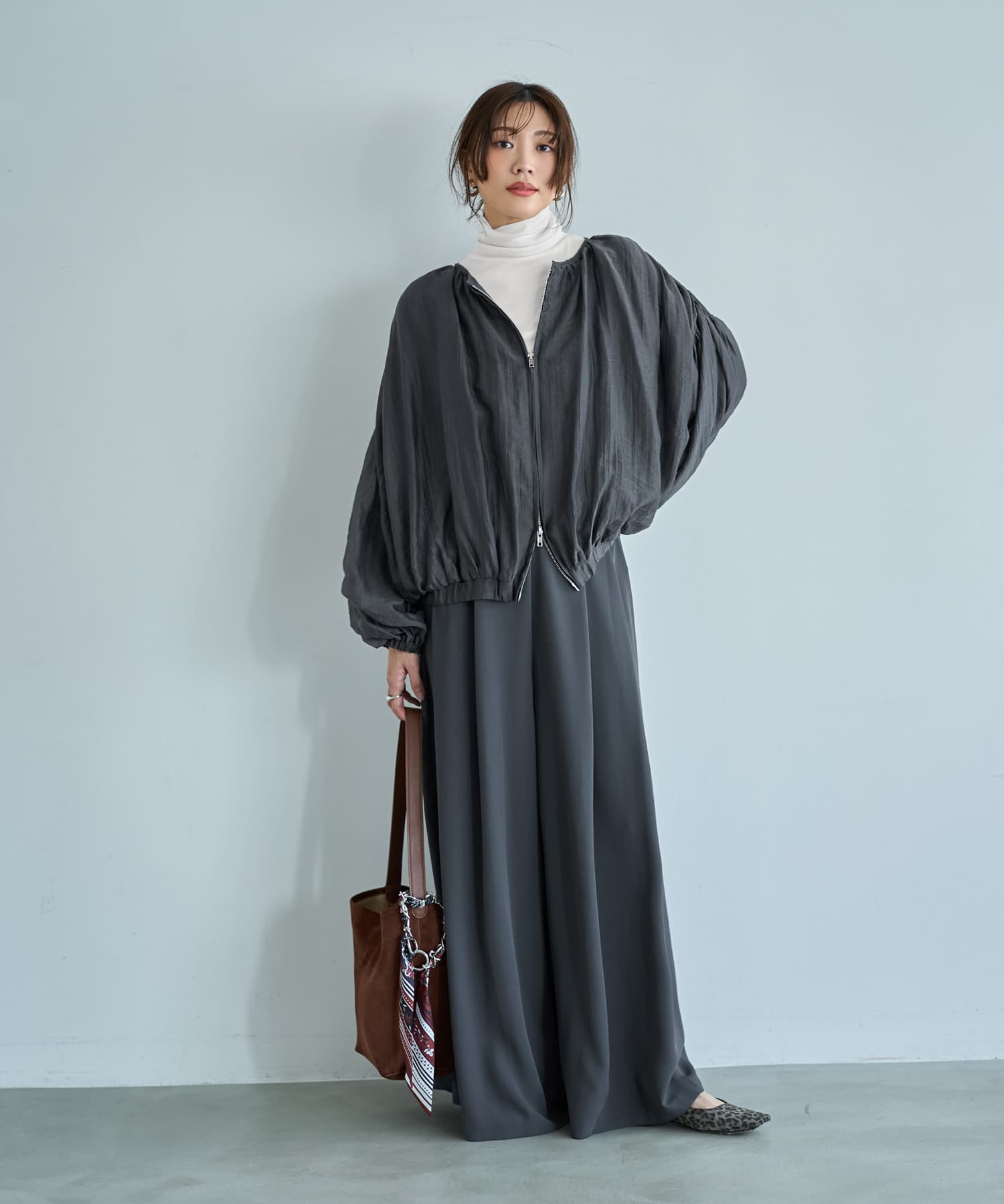 ーアウターではなくトップスなんですーカーディガンのようにコートの下に着る、シュワシュワと軽やかな新感覚アイテム◆11/27インスタライブご紹介商品◆アーカイブのご視聴はこちらから→【11/27ライブ】【この商品の特徴】ニットに偏りがちな冬の着こなしに新鮮さを入れる、ブルゾン型のトップスという新しい発想。使い方はカーディガンのような感じで、中に薄手のニットやカットソーを着たり、ワンピースやサロペットに羽織ったりとお好きなように使えます。生地はシュワシュワとした感じのシワ加工(楊柳系)が可愛い、割と薄手で季節を問わないオシャレ生地。自宅で洗えてシワにならず、お手入れもラクちんです。◆ブラウスを2枚重ねたような薄い生地なので、この上に普通に冬コートを着ることができます。◆暖かい時期はこれを軽アウターとして使うこともできる便利アイテム。夏の冷房除けなどにも使用できます(季節を問わずに一年中着れる質感です)。◆フロントは人気のダブルファスナー。好きな位置で上下を開け閉めできるので、着こなしのバランスが作りやすくなっています。◆ややボリュームのある袖は、たくし上げた際のシルエットも可愛くて◎ 袖口はゴム仕様で簡単にたくし上げができます。◆軽くてシワにならず、たためるので持ち歩きや旅行にも便利。たたみ保管も可能です。【その他の仕様などの情報】◆着用時期:10-4月をメインに通年◆サイズ感:ゆったりめのサイズ感(Lサイズ体型にも対応)◆丈感:前は脚の付け根程度の丈感/背面はヒップが半分隠れる程度の長さ◆シルエット:バルーン系◆首元:詰まっていないクルーネック◆肩幅:問わないタイプ(ドロップショルダー)◆アームホール:広め◆袖幅:広め◆袖丈:長袖(指の付け根が隠れる長さ)◆袖口:ゴム◆袖のたくし上げ:可能◆厚み:普通(アウターとしては薄手)◆重さ:軽量◆柔らかさ:柔らかい◆肌触り:柔らかでサラッとした感じ◆着用ジワ:できにくい◆毛羽立ち:できにくい◆伸縮性:なし◆光沢感:僅かにあり◆透け感:ホワイトは若干あり(濃い色が薄っすらと影響する程度)◆スリット:なし◆着脱:フロントファスナー(ダブルファスナー)◆ファスナーの色:シルバー(質感はマット寄り)◆ポケット:両サイドにあり◆裏地:あり◆手洗い:可能◆アイロン:不要◆スチーマー:使用OK【お色について】◆バーガンディ:赤の中に微量のブラウン色素を入れて、落ち着きのある発色にしたニュアンスレッドです。◆アイボリー:一般的な白いブラウスのお色。イエロー味などの色味感は無いクリアな発色のホワイトです。◆ダークグレー:チャコールグレーよりも一段明るい、深みのあるグレーです。【SNS用ハッシュタグ】#235988便利な楊柳ブラウスブルゾン(このハッシュタグでInstagramなどSNS内で検索をしますと、こちらをお持ちのお客様のご投稿があれば、簡単に見つけてご覧いただくことができます)