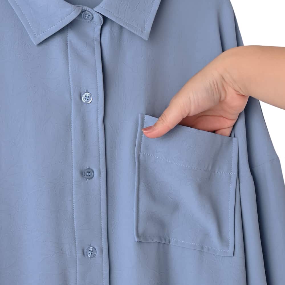 ◆生地の表面には控えめなシボ加工。何もないフラットな生地に比べてニュアンスがあり、普通過ぎる印象になりません。→シンプルだけどなんかオシャレ、という印象になります。
