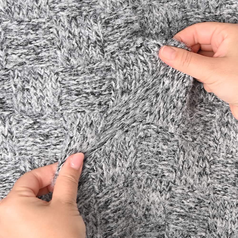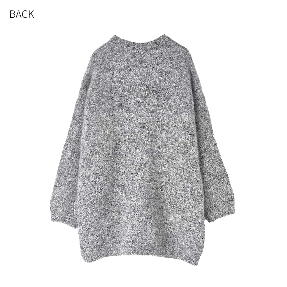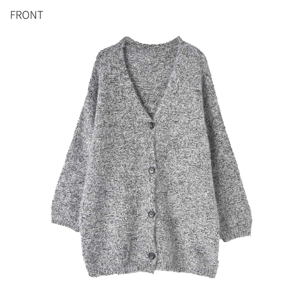 フワフワ系ニットにありがちなストレスをカット手洗いできてチクチクせずに毛が飛ばないなど、良い点が揃った抜群にカワイイMIXカラーニット◆11/13インスタライブご紹介商品◆アーカイブのご視聴はこちらから→【11/13ライブ】【この商品の特徴】◆オシャレな配色の糸色ミックスカラー◆色の奥行きが深まる凝っている編み地◆普通のミックスニットの一段上をいく可愛さ◆モヘアの質感を表現◆引っ張っても毛が抜けない◆軽くて暖かな着心地◆ヌケ感のあるシルエット◆ゆったりとした長め丈◆エアリーで重たい印象にならない◆小柄さんにも高身長さんにも◎◆フニャッと&ホワッとした柔らかな肌触り◆意外にも保管場所をとらない◆毛羽立ちや毛玉に強い【この商品の詳細】◆タポッとしたフォルムやサイズ感に、ホワッとした質感、そして何より糸色のミックス具合が可愛い、ゆったりシルエットのカーディガン。チクチクしない、毛がヌケづらい、手洗い可能、軽くて暖かい着心地などの長所がしっかりと揃っています。◆このニットの色合いが抜群にオシャレなヒミツはその編み方にあり。やや長方形型の市松模様のようにブロッキングされながら、縦方向編みと横方向編みが交互に配置された凝っている編み地になっています。元々のミックス糸の混ざり具合に加えて、色の出方が細かく変わるためより複雑な混ざり方となり、それが奥行きのあるオシャレな色合いを作っています(=普通のミックスニットとはひと味違う!)。◆ホワッとはしていますが生地自体に厚みはなく、空気感で膨らんでいるような感じ。そのためたたむとそこまでかさばらず、保管場所を過剰に圧迫しないところも優秀。こういったニットはそれが結構ネックだったりするので、その面でのストレスは感じないかと思います。◆本当のモヘアニットとは異なり、引っ張っても毛が抜けないのが嬉しいポイント。例えば中に黒いカットソーを着れば数本の毛は付きますが、たくさん付いてしまうことはありません。滑りの良いブラウスやシャツであれば毛はまったく付かず、総合してストレスにならない程度というのが嬉しいホワホワ質感ニットです。◆前を閉じても開けてもオシャレに使えるデザイン。スカートにもパンツにも合い、ワンピースにも合わせられます。サロペットコーデに羽織ったりしても可愛く、丈の長さがあるため細めなパンツやレギンス合わせも素敵だと思います。◆長めでも身長は案外問わず、小柄な方でもタポッとした感じがすごくカワイイ!という感じのバランスで着こなすことができます(素材がふんわりとしているため重たい印象になりません)。逆に通常のカーディガンだと丈が短くなってしまう、高身長な方にもお薦めできます。【さらにプラス情報】◆暖かさ:とても軽量なのに、かなり暖かい方だと思います。その温度感は中に着るもので調節すれば良く、どこまでも暖かくコーデで作り込んでいけるような感じ。当店の商品で言えば『モヘアライクリラックスカーディガン』程度の暖かさはぜんぜんあります。◆コート:この上に冬コートを普通に着ることができます。丈は裾からこのカーデがはみ出さないよう、太もも中間以上の長さがある、それなりにゆったりとしたものがお薦め。厚地の生地ではないため、とくに着膨れしてしまうようなこともありません。◆インナー:カットソー系、薄手のハイゲージニット系、シャツやブラウス、Tシャツ系など。首元の形はとくに問わず、クルーネックを筆頭にVネックでもタートルでも、襟付きでも大概のものはOKです。◆静電気:程度の差はその方の帯電体質具合や合わせアイテムなどによりますが、冬場は乾燥でどうしても…というところはありますので、もしも気になる場合はエレガードなどの静電気防止スプレー等でご対処ください。◆毛羽立ち:基本的にはできないと思います。◆チクチク感:チクチク感のある素材ではなく、ほとんどの方は感じないと思います。むしろ柔らかく気持ちの良い素材の部類に入ります。ただし稀に敏感な方には感じる場合もあるのかもしれません(その点は最終的にわかりかねます個人的な感覚なので、ご理解をお願いいたします)。◆丈伸び:このように緩くふんわりと編んだニットは、ハンガー掛けをすると伸びることが予想できます。シワにはなりませんので、たたみ保管を推奨いたします。【その他の仕様などの情報】◆着用時期:11-3月上旬が目安(寒い時期)◆サイズ感:ゆったりとしたサイズ感(Lサイズ体型にも対応)◆丈感:前は太もも中間程度の丈感/背面も同じ◆シルエット:ストレート◆首元:深いVネック◆肩幅:問わないタイプ(ドロップショルダー)◆アームホール:広め◆袖幅:広め◆袖丈:長袖(指先が僅かに出る長さ)◆袖口:ぴったりとしない自然なすぼまり◆袖のたくし上げ:一時的には可能(完璧に固定をするならゴムなどが必要)◆厚み:普通(ふんわりと空気感を含んだ厚みがある)◆重さ:軽量◆柔らかさ:柔らかい◆