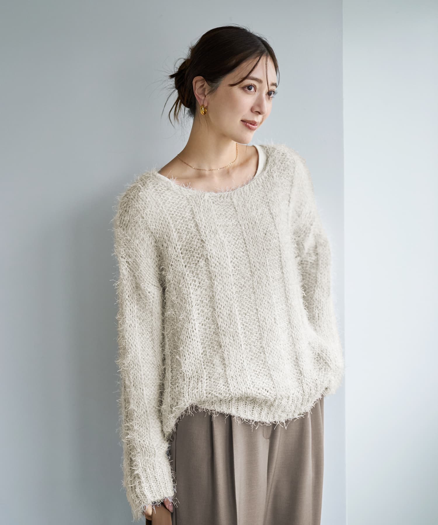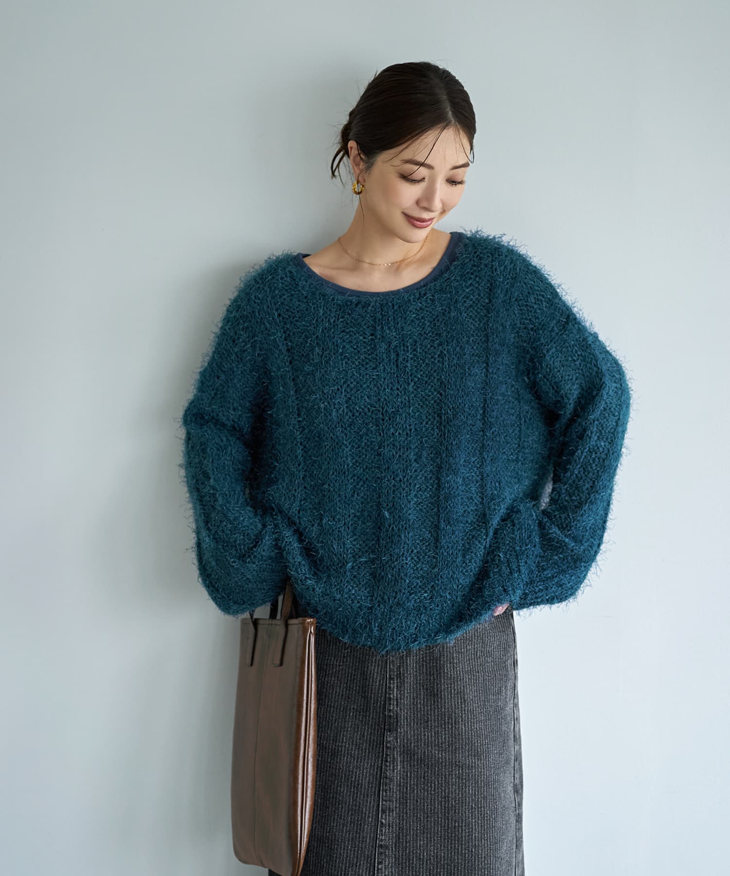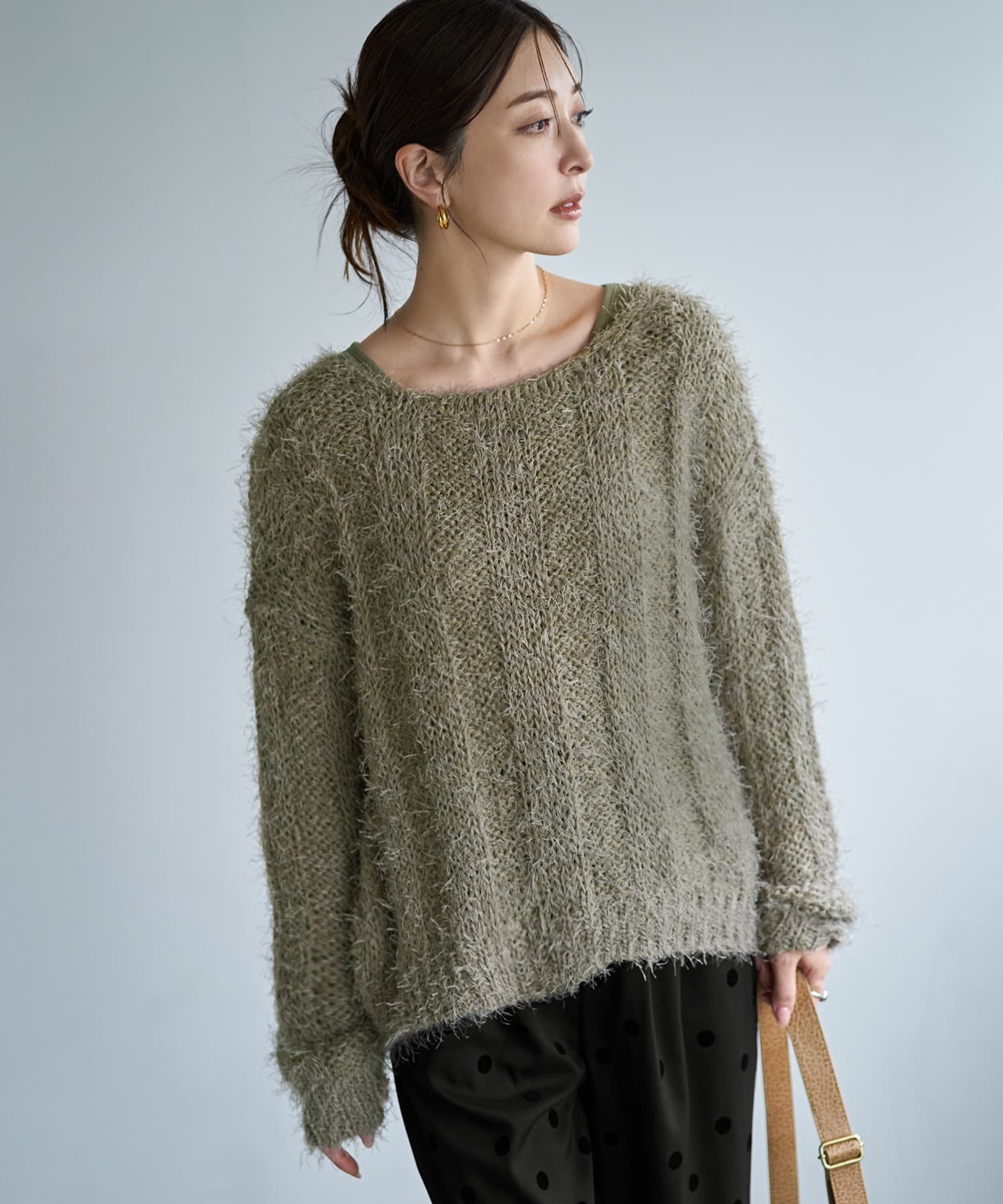 商品番号236021 『ストライプ編みデコルテ開きシャギーニット』 と一緒にご購入でお得になるキャンペーン開催中化繊だと肌がかゆくなる方に向けて見えてもイイから幅広く使える質感コットン素材のインナー用トップス【この商品の特徴】◆肌に嬉しいコットン素材のインナートップス◆化繊インナーの代わりに使用◆肌着ではないため見えてもOKな質感◆インナーに困るボートネック系に対応の形◆コットン系の中ではかなりスッキリ◆伸びる生地でS-Lサイズに対応◆ジャケットやカーディガン合わせもOK◆セット対応のコーディネート商品あり【この商品の詳細】◆ヒートテックなどの化繊インナーだと肌がかゆくなる、というお客様のお声を受けてご用意した、コットン素材のインナートップス。その中でも首開きが横に広い、ボートネックニットなどのインナーに使えるオフショル気味の形です。◆ゴワつきや厚みが心配なコットンインナーの中でも、かなりスッキリとした仕上がり。コレいいですね!とご試着会で試されたお客様方からも沢山お褒めいただいた、評価は上々の着心地です。◆コットン素材なので特殊繊維とは異なり、発熱保温効果などの機能はとくにありません。ですが着ていればやはり確実に暖かさはあり、コットンならではの吸水性や通気性、静電気の起きにくさや肌への優しさはありますので、インナーとして活躍すると思います。◆肌着とは違い薄手のカットソーなので、見えても下着感が無いところもオシャレ視点的に◎ 一枚で着るには少し薄いかな?という感はありますが、ジャケットやカーディガンのインナー使いとするならぜんぜんアリな見た目です。◆合わせるお洋服によっては、両肩からこのインナーが少し見えてしまうこともあるかもですが、見えても良い質感であるというところが利点。気楽に合わせることができます。【セット商品のご案内】こちらのインナーは元々、商品番号236021 『ストライプ編みデコルテ開きシャギーニット』の対応インナーとしてご用意したものになります(もちろん、インナー単体としても使い勝手の良いアイテムです)。◆一緒にご購入いただくと、少しお得なプライスになります。◆基本的な組み合わせは以下になります(前者がニットの色名)。・ライトカーキ×インナーはカーキ・ダークブルー×インナーもダークブルー・グレージュ×インナーはホワイト◆ニットとインナーは微妙に色をズラしながら、チラ見えした際に可愛く見える色合いにコーディネートされています。もちろんお好みで色の組み合わせを変えてもOKです。ー セットで着るととても可愛いので、お好きであればぜひお試しくださいませ。【さらにプラス情報】◆サイズ感:ジャストサイズのトップスの中にも着れるよう、ピッタリとしたサイズ感になっています。その方の体型に合わせてフィットする感じのMサイズですが、伸びるためS-Lサイズ体型に対応できます◆トップス使用:トップスとして一枚で着れないことはありませんが、ピッタリとしていますので体型や肉感はそれなりに出ます。それがOKな体型の方ならまったく問題ありません。◆オフショル対応:肩を出すオフショルダー型のお洋服にも対応しているか?→NO. そこまでは肩開きが無く、肩下までは襟ぐりが伸びません。◆肩落ち:着ていると肩が落ちるか?→NO.落ちるほどには襟ぐり開きが広くありません。◆肩紐:下着の肩紐は見えるか?→普通に着けると少し見える傾向にあるため、きもち肩紐を外側にズラしてご着用ください。【その他の仕様などの情報】◆着用時期:10-4月が目安◆サイズ感:フィットするサイズ感(Lサイズ体型までに対応)◆丈感:前は下腹(おヘソ下6-7cm)丈感/背面は腰がほぼ隠れる程度の長さ◆シルエット:ストレート◆首元:デコルテが広く開くオフショル寄りのネック/鎖骨下6-7cm程度(谷間は見えない)◆肩幅:問わずに使える(伸びます)◆アームホール:狭め(ワキ汗対策に良い/袖幅が狭い服にも使える)◆袖幅:細め(その人の腕に伸びてフィットする)◆袖丈:長袖(手の甲が隠れる長さ)◆袖口:ストレート(リブ無し)◆厚み:やや薄手◆柔らかさ:柔らかさとハリ感が共存◆肌触り:さっぱり感と柔らかい感じがMIX◆着用ジワ:袖などの生地に伸縮がかかるところは多少できる◆毛羽立ち:できにくい◆伸縮性:あり◆光沢感:なし◆透け感:なし(ホワイトは少しあり)◆スリット:なし◆ボタンやファスナー:なし(かぶり着タイプ)◆手洗い:可能◆アイロン:不要◆スチーマー:使用OK【お色について】◆ブラック:定番的な通常のブラックです。◆ホワイト:一般的な白いカットソーのお色。イエロー味などの色味感は無いクリアな発色のホワイトです。◆カーキ:少し褪せたような色合いがこなれていてカワイイ、ごく僅かにグレイッシュな明るいグリーン系のカーキ色。青味やブラウン味はありません。◆ダークブルー:ブルーの領域までネイビーを明るくしたような感じの、落ち着いた深みのあるブルー。深みとはいえ暗さは無く