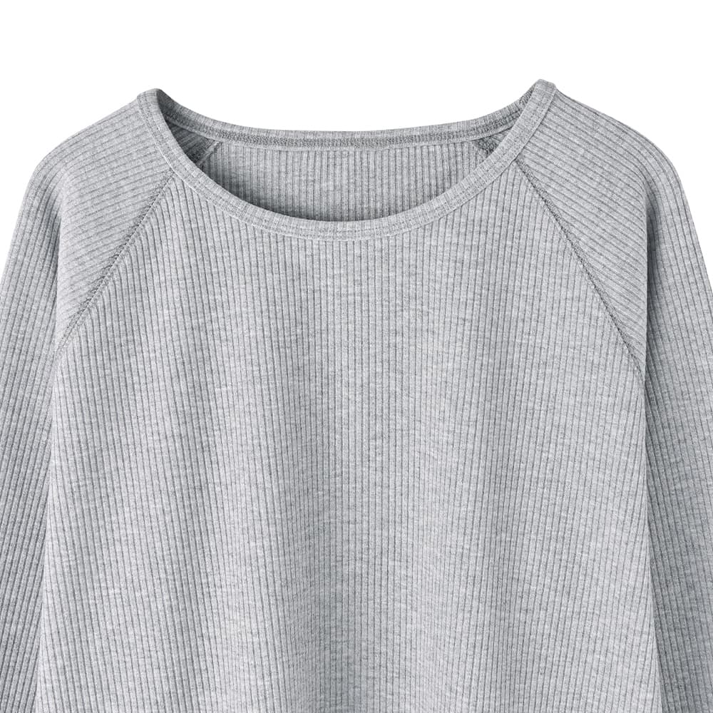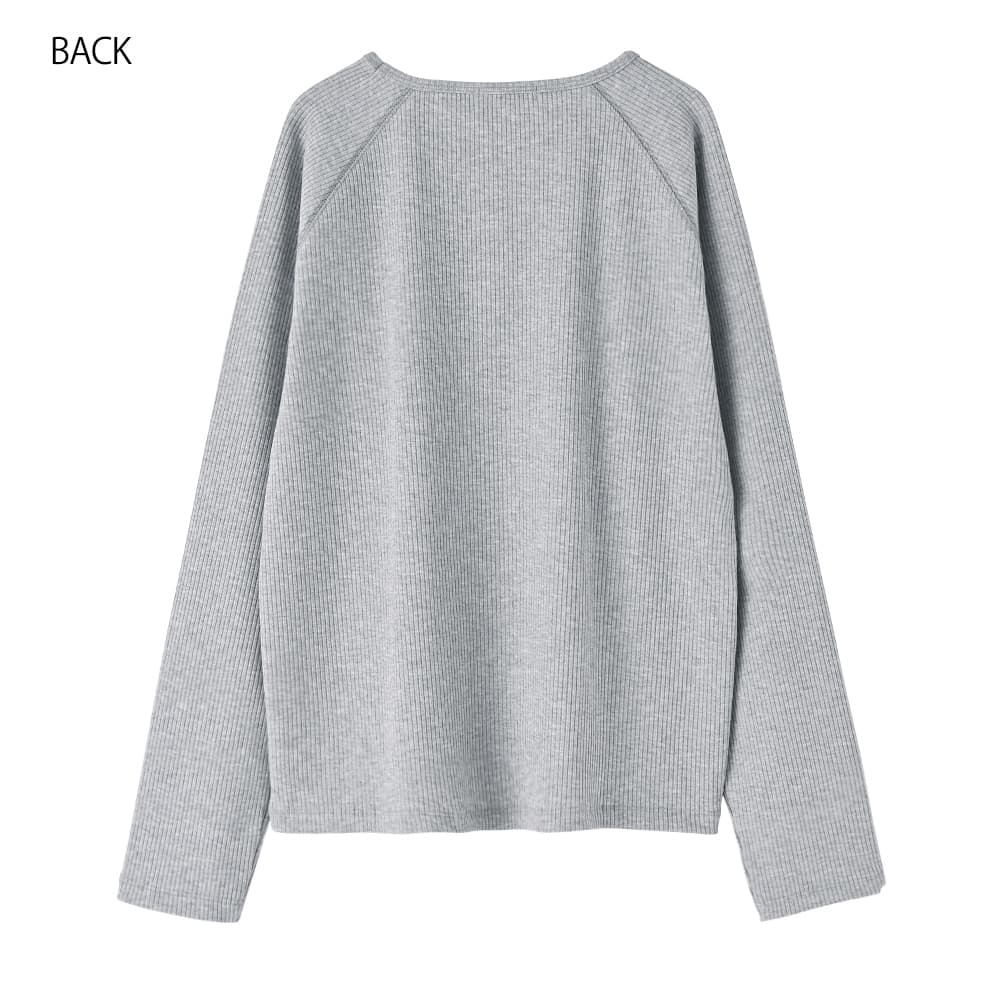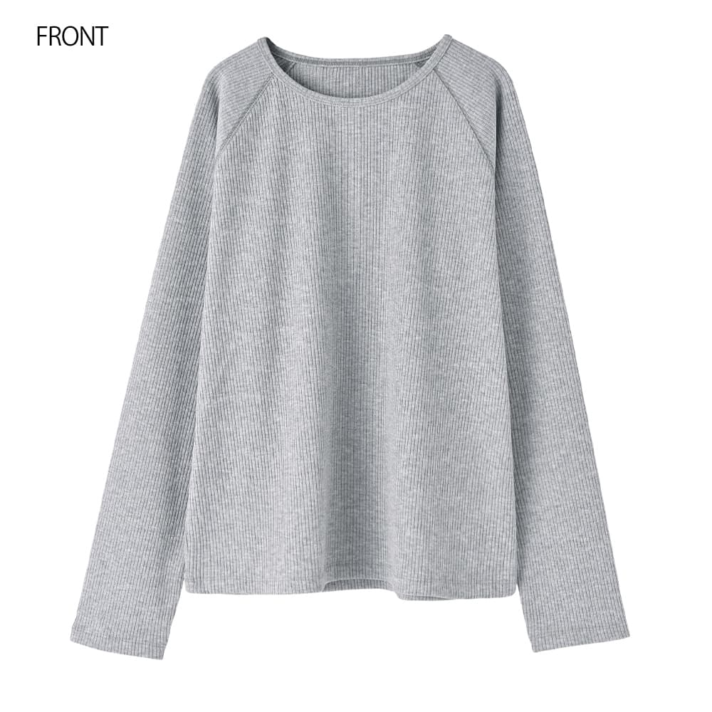 ― 普通の量販デザインでは叶わない ―憧れの『シンプルTだけでカッコいい』を、大人が無理なく実現する為の技ありTシャツ◆3/12インスタライブご紹介商品◆アーカイブのご視聴はこちらから→【2026/3/12ライブ】【このTシャツの概要】シンプルなTシャツをサラリと着て素敵。というのは憧れながらも、雰囲気の無い外見が無ければなかなか難しいのが現実世界。それが年齢を重ねた大人となればなおさらで、半ば諦めていたこの願望を叶える為にご用意したのがこのトップスです。もちろん達成度には個人差がありますが、量販店で気軽に買えるものとは工夫のマニアック具合が段違いに異なり、それらの倍以上の確率でカッコ良さに近づきやすいと思います。「コレならイイかも…」というところまでは持っていけると思いますので、ぜひこの春は『シンプルなカットソートップスをサラリと着るコーデ』にチャレンジしてみてください。◆さらにポイント◆こちらはラグランスリーブですが、特殊な角度設計とデザインステッチおよび生地の特性のトリプル効果により、セットインスリーブを着たときのような雰囲気を出すことができます。そのため普段はラグランスリーブが体型に合わないかたでもこなしやすい稀なタイプとなっていますので、ご縁がありましたらぜひお試しになってみてください。【このTシャツの特徴】◆メンズ感や過度なカジュアル感のない雰囲気◆肩幅を強調しない角度で配した特殊ラグランスリーブ◆首詰まり感の無い、鎖骨が見えるクルーネック◆太いバインダーやリブの無いスッキリとした襟ぐり◆肉感を拾わないハリ感としなやかさを両立◆大きくもなくピッタリもせず、一枚で着やすいサイズ感◆テク要らずにそのまま着てサマになるフォルム【このTシャツの詳細】◆デザイン:本気のTシャツというよりは『カットソートップスをTシャツに近づけた』という雰囲気。そのためカジュアル感が過度に強くなく、大人の女性の雰囲気から遠過ぎない感じになっています(=だから着こなしやすい)。また首周りをスッキリとさせたり、肩の丸みや厚みを拾いづらくするなど、さりげない女性らしさや体型カバー効果を効かせている点にも注目です。◆質感や肌触り:見た目や肌触りはコットン。最新の技術でコットンの質感を見事に出した、とても着やすい混紡生地です。その上で綿が持つ『乾いた感じ』や『カジュアル感』が無いところがポイントで、綿に比べてシワのクセが付きにくいのも特徴。見た目は綿だけど何故か女性らしくて品もある、そんなところが大人に着やすいコツの一つになっています。◆生地:凹凸の比率が1体1の単調リブではなく、1対2になっているリブ生地。ぶ厚いわけではないものの凹凸の効果でしっかり感があり、肉感の拾いづらさに優れています。生地は過不足なく伸び、動きやすさとヤワヤワすぎないハリ感が両立したタイプ。一枚で着た際に安心感のある見た目&着心地の生地です。◆比較:これまで発売されて来た、似たようなカットソートップスとどこが違うのか/秋冬から出ていたものは基本的に『ニットなどのインナーに使用する』ことを一番の目的にしていました。対してこちらは『一枚で着てトップスとしてカッコいい』ことに主眼を置いています。もちろんどちらも一枚で着れる/インナーにもできる、という要素はありますが、第一目的や最重視ポイントが異なる感じです。【さらにプラス情報】◆合わせアイテム:裾をインせずともスカートやパンツとコーディネートが可能。しっかり感はありますがジャケットの中に着てかさばらない程度の厚みで、ジャンパースカートやジレ合わせなどにも活用できます。◆着用ジワ:全体的にはできませんが、袖をたくし上げていた際などは肘の内側あたりに数本の線ジワが薄く生じます。手洗いをすれば消えると思いますが、気になる場合は霧吹きをかけてよく湿らせ、軽く撫で伸ばして掛けておけばOKです。【その他の仕様などの情報】◆着用時期:夏以外◆サイズ感:適度にゆとりのあるサイズ感(11号体型にも対応)◆丈感:前は脚の付け根程度の丈感/背面はヒップが半分隠れる程度の長さ◆シルエット:ストレート◆首元:鎖骨が見えるクルーネック◆肩幅:問わないタイプ(ラグランスリーブ)◆アームホール:広め◆袖幅:普通のゆとり感◆袖丈:長袖(指が半分隠れる程度の長さ)◆袖口:何も無し◆袖のたくし上げ:可能◆厚み:カットソーの中ではややしっかりめ◆柔らかさ:ハリ感としなやかさが共存◆肌触り:サッパリとして滑りが良い感じ◆着用ジワ:多少はできるが気にならない◆毛羽立ち:できにくい◆伸縮性:あり◆光沢感:なし◆透け感:なし(ホワイトは控えめにあり/白の中では少ない方)◆スリット:なし◆ボタンやファスナー:なし(かぶり着タイプ)◆手洗い:可能◆アイロン:不要◆スチーマー:使用OK【お色について】◆ブラック:定番的な通常のブラックです。◆ホワイト:一般的な白いカットソーのお色。イエロー味な