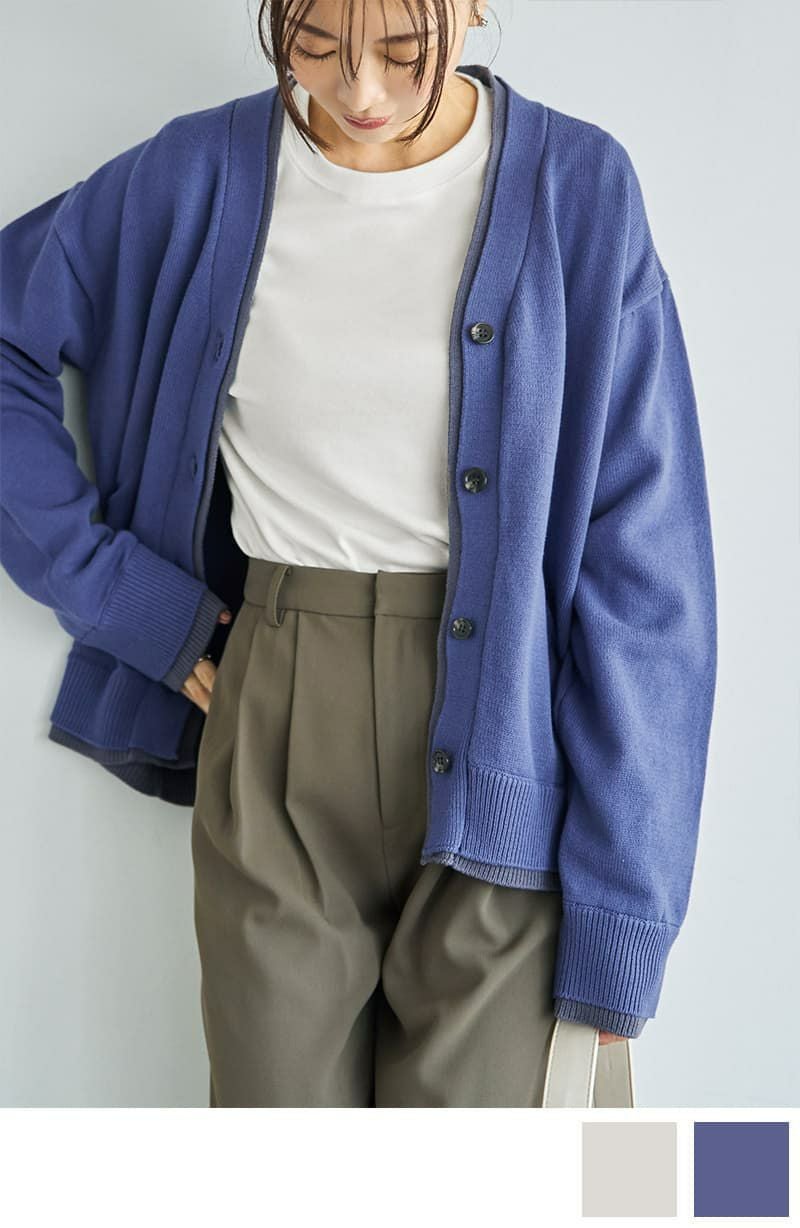 カラーレイヤードカーディガン