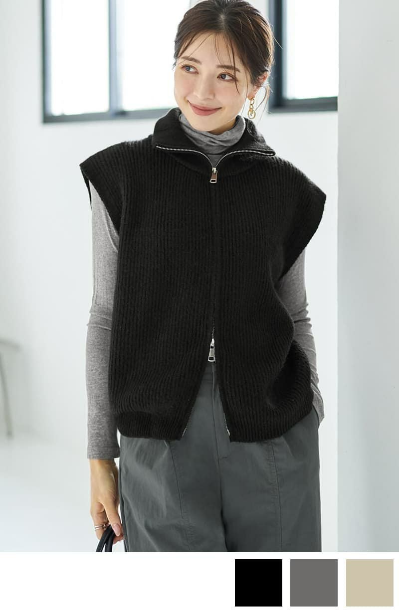Wファスナースタンドネックニットベスト