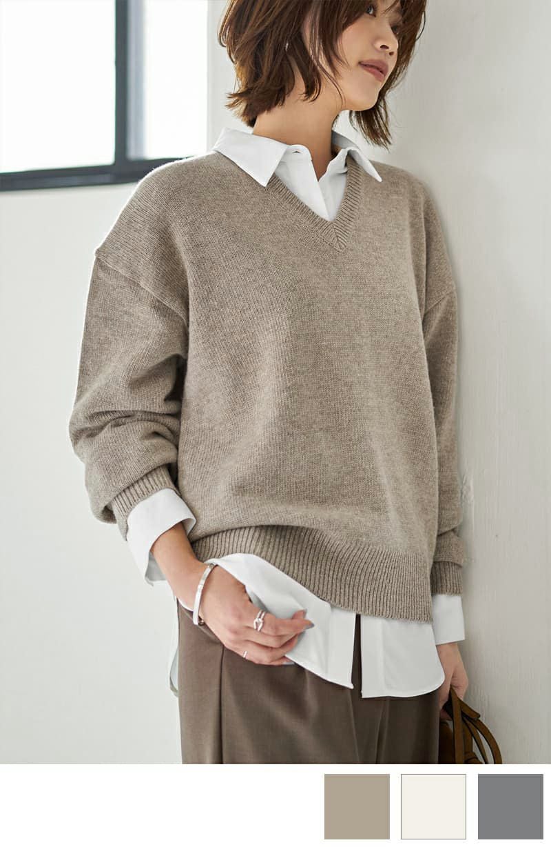 着やすいVネックニットトップス
