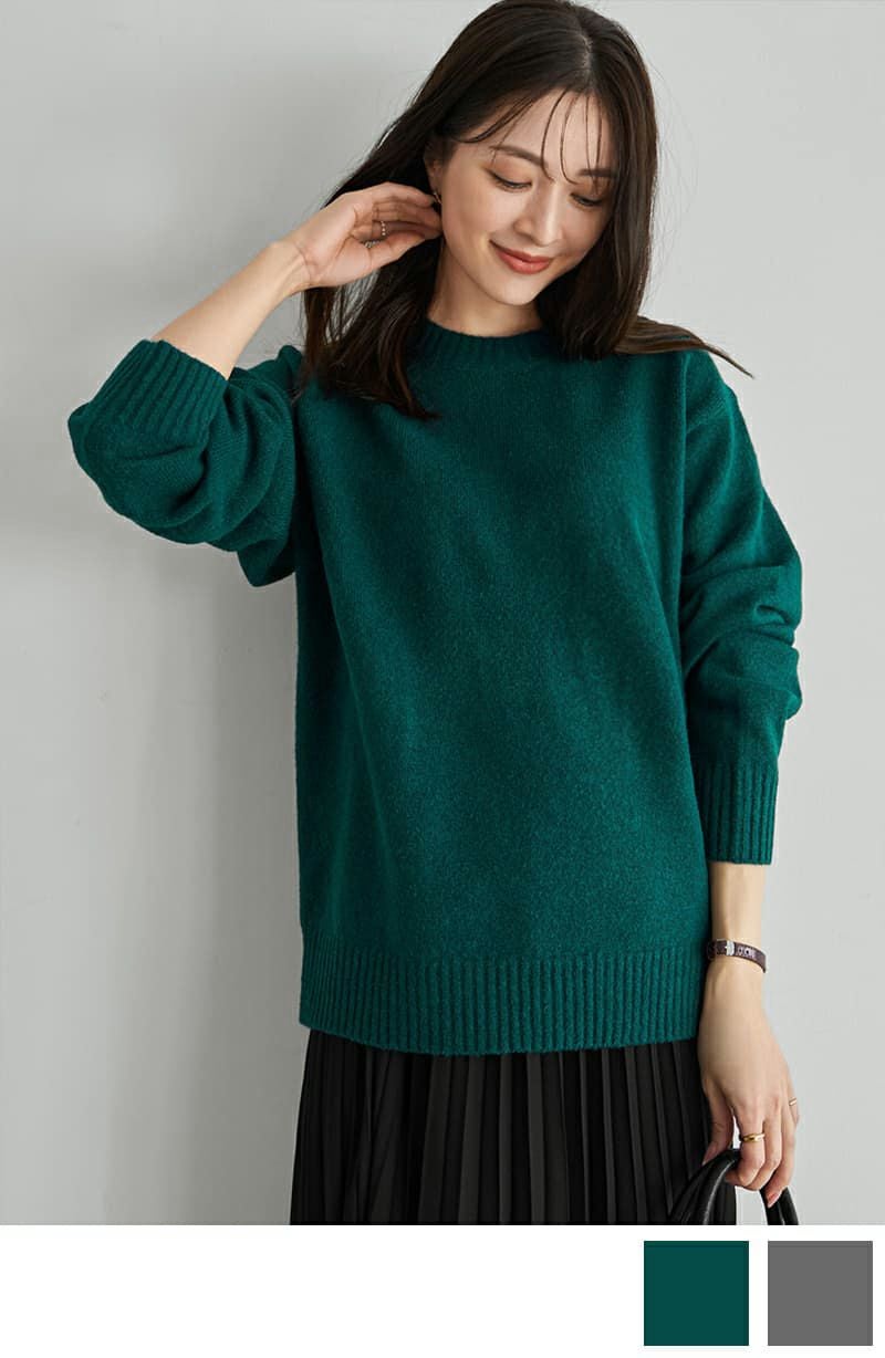 ウール混クルーネックニットプルオーバー