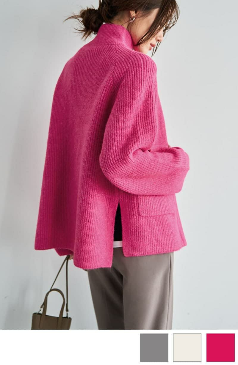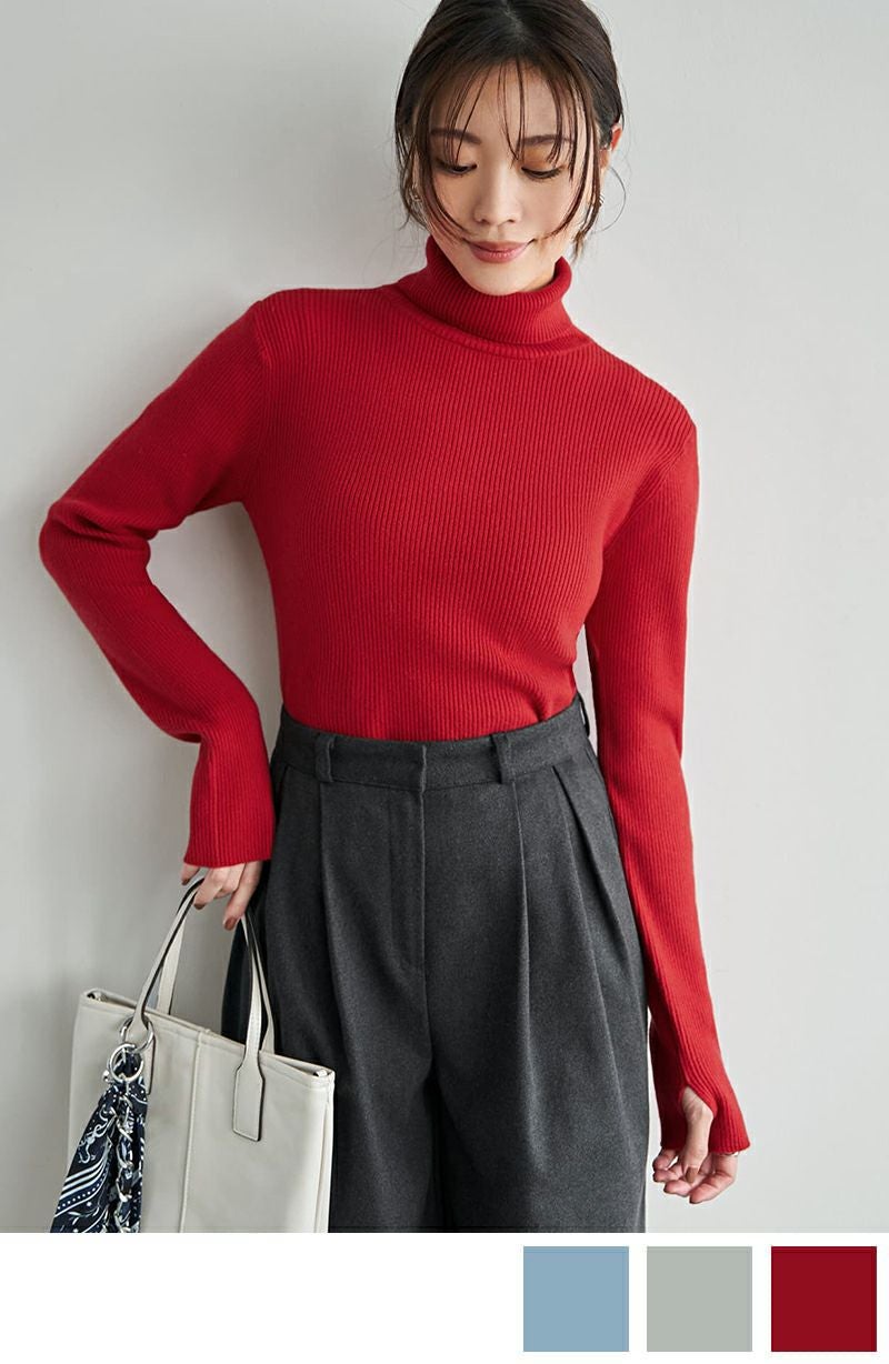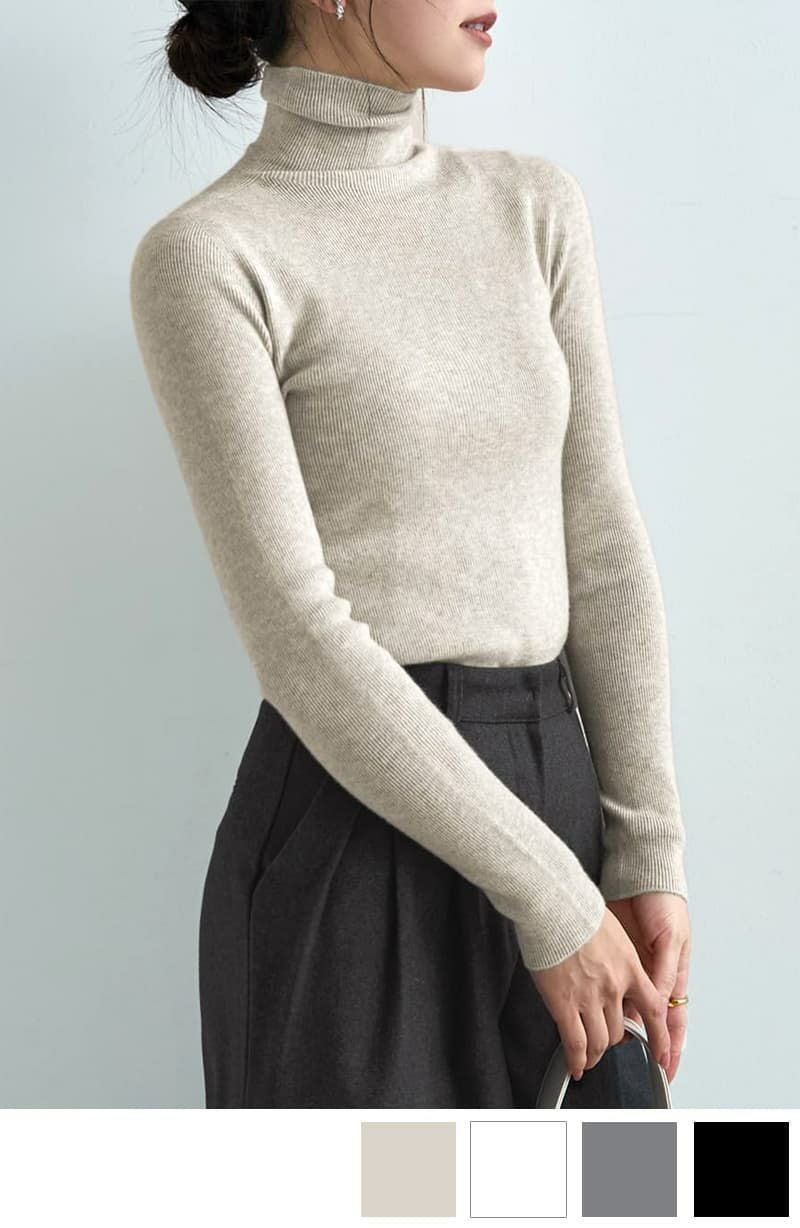 もっちりタートルリブニットトップス