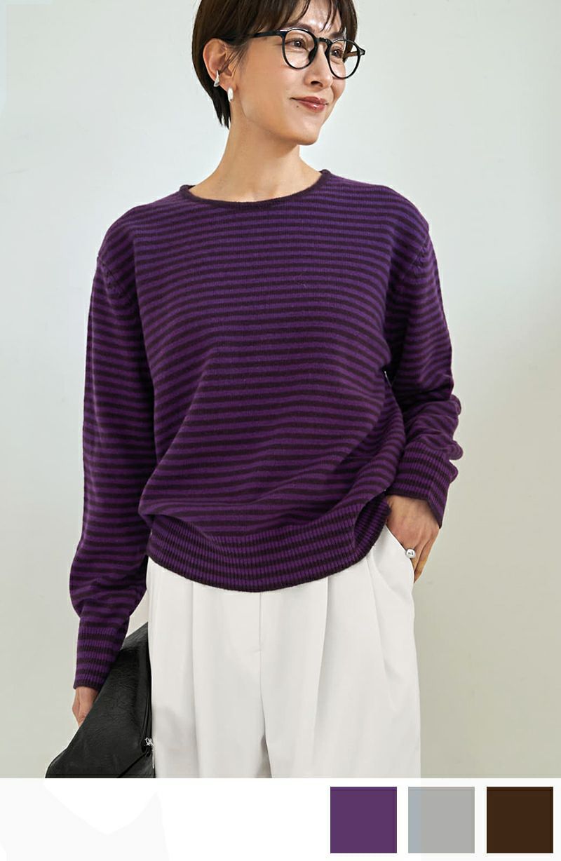 【LUXE】カラーボーダーウールニット