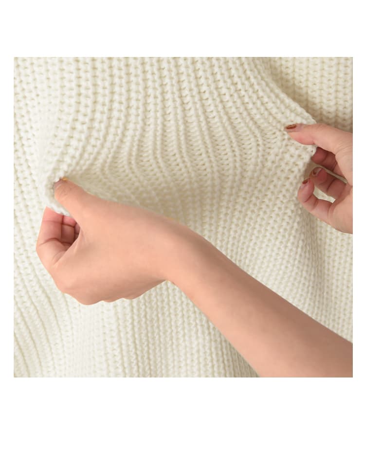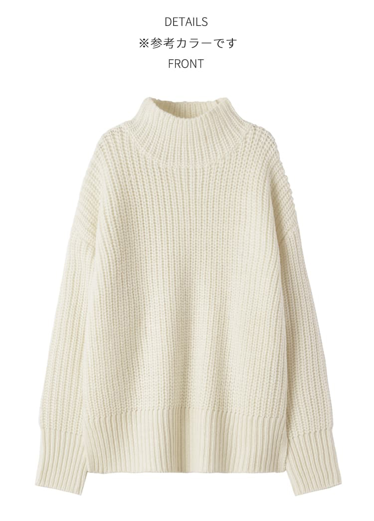 大きく見えないざっくりニットって貴重色々なことを気にせずに着れる、オシャレ見えするローゲージ編みニットざっくりとした編み地がカワイイ、スタンドネック型のニットプルオーバー。それなりに厚みはありますが、見た目に反して着心地は軽く、でもしっかりと暖かい。という嬉しいニットです。ざっくり系ニットは太って見えたりカジュアル過ぎたりも心配ですが、こちらはそれを踏まえて『そうならないように』製作。可能な限りのスッキリ感を持たせつつ、オシャレな意味でのボリューム感やウォーミィーな質感が楽しめるようになっています。リラックスできるゆったりフォルムにも関わらず、アウター着用に不便は感じない程度の実用的なサイズ感も◎ 気になるチクチク感もなく、シワや毛羽立ちも気にせずに、流行りに関わらず長く愛用できそうなデザインです。◆さらに◆首が少しでも短く見えないよう、キレイにカーブをかけながら編んだ首元。スッキリと着れるので、普段は首(襟)の高いニットを敬遠しがちな方にもお薦めです。【デザインや仕様について】◆ざっくりと編んだ質感が可愛い、シンプルなハイネックニットプルオーバー。◆高さ控えめのハイネック具合。横幅もあり、首にフィットしないので窮屈感はゼロ。◆適度にゆとりのあるサイズ感。◆袖幅にも適度なゆとり感あり。下に着込みやすい、真冬に嬉しいニット。◆脚の付け根程度のベーシックな丈感。スカートにも合わせやすい長さ。◆裾はリブで締めず、ストレートに落としたタイプ。ボトムスやワンピースの形を潰さず合わせやすい形状。◆両サイド裾に、ヌケ感を作るスリットあり。◆肩幅を問わないドロップショルダータイプ。◆手洗い:可能【生地について】◆ざっくりとしたローゲージ編み◆チクチク感:基本的には感じません◆毛羽立ち:とくにできやすい方ではありません◆毛抜け:基本的にありません◆暖かさ:暖かいです◆厚み:そこそこ厚いですが、糸を凝縮した感じの編み方ではないため、動きに窮屈なほどの厚みはありません◆重さ:割と軽めです(見た目に対して)◆伸縮性:あり◆光沢感、透け感:なし【お色について】◆ダークキャメル:キャラメルを少し焦がしたようなお色。オレンジ色系色素を持つライトブラウン、という感じの発色です。【SNS用ハッシュタグ】#234467ローゲージスタンドネックニット(このハッシュタグでInstagramなどSNS内で検索をしますと、こちらをお持ちのお客様のご投稿があれば、簡単に見つけてご覧いただくことができます)