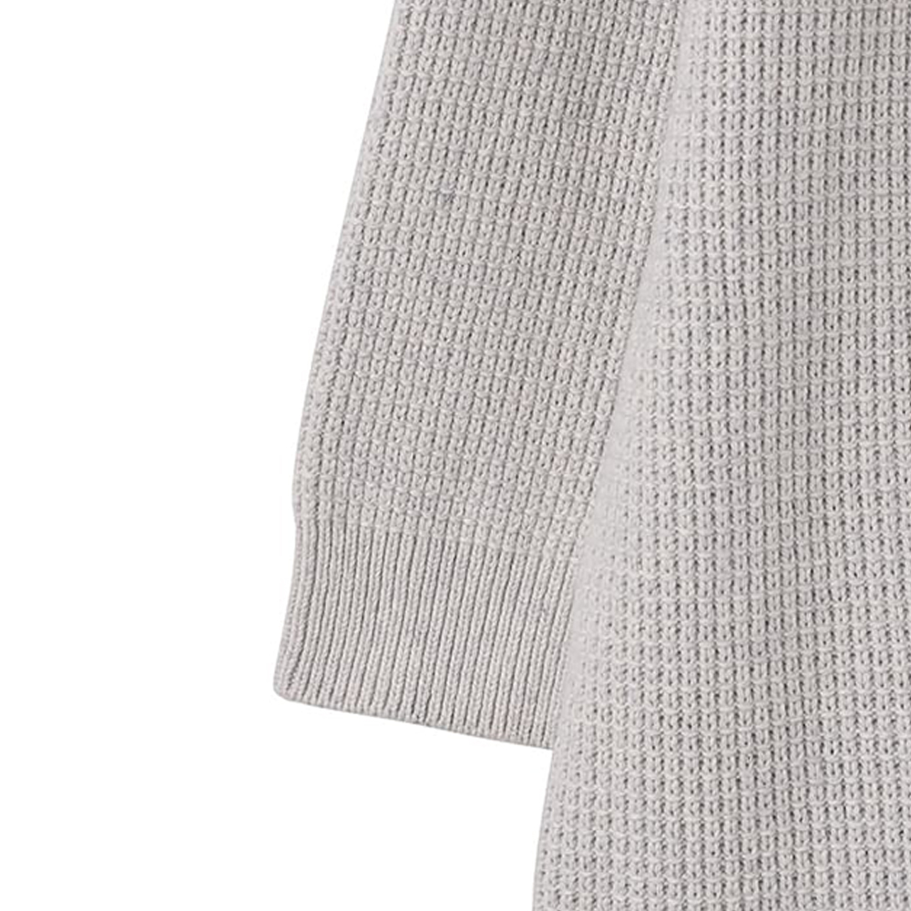 暖かいニットといえばの代表格お尻まで隠れる真冬の強い味方超ロングセラーの長め丈ニット【このニットの特徴】◆お尻まで隠れる暖かな着心地◆当店トップクラスの暖かさ◆膝丈ワンピースにもなる丈感◆スカートやワンピースとの重ね着もOK◆真冬のイベントシーンに人気◆ワッフル調の立体感ある編み地◆程よく厚手ながらも軽い着心地◆チクチク感の無い肌触り◆毛羽立ちにくい素材◆丈伸びしづらい編み地◆長年人気のロングセラー商品【このニットの概要】◆2021年に発表して以来、長くご好評をいただいている、膝丈のロングチュニック丈ニット。ワンピースとしても使えるフォルムで、タイツ+ロングブーツで楽しむのも人気です。◆とても暖かい着心地のこちらは『真冬に手放せません』というお声が多く、とくに年末年始の帰省や初詣、寒冷地への旅行などに、とお求めの方が多くいらっしゃいます(STYLE DELIでもトップクラスの暖かさを誇る一枚です)。◆下に合わせるボトムスはパンツ類全般のほか、ロングスカートやペンシルスカートなどほとんどのものがOK。冬には寒い薄手のワンピースの上に着て、レイヤードコーデを楽しむのも素敵です。丈は長めですがそれで胴長に見えたりすることはない、というデザインテクニックも人気のヒミツです。◆お尻がスッポリと隠れるので、たとえばヴィンテージサテンギャザースカートのような、薄い素材のボトムスを合わせても暖かく過ごせるのが嬉しい。真冬には寒いかな?と待機中になっていた服も活用できると、お喜びのお声を沢山いただいています。【デザインについて】◆ワッフル風の凹凸がカワイイ編み地。無地の大きめニットでも、表面凹凸を出した編み地でのっぺり感が出ないようになっています。◆どことなく丸みを描くフォルムがオシャレな印象。裾に三角形状のスリットを入れてヌケ感をプラスしています。◆首が隠れ過ぎないように設計した、工夫のスタンドネック(首の上部は見える程度の高さです)。詰まり感がないため、首の短さを気にされている方にも着やすいとご好評です。◆ゆったりとしたサイズ感(オーバーサイズ系)。ただしアウターが選びづらくならないよう、袖幅は適度なゆとりを持たせつつ太すぎない感じにしています。【その他プラス情報】◆厚み:しっかりとした生地感ですが、重たさを感じない着心地です。厚みはそこそこありつつ、ぶ厚くはありません。◆質感:真冬限定という感じの質感ではなく、肌当たりは割とサラッとしています。チクチク感や毛羽立ちが気になりにくいニット地です。 ◆丈伸び:伸びやすい素材ではなく、着用していて伸びることは基本的にありません。ただしハンガーに掛けて保管をすると、多少は丈が長くなるかもしれません。◆静電気:その方の帯電体質具合や合わせアイテムなどにも左右されますが、冬場は乾燥でどうしても…というところはありますので、もしも気になる場合はエレガードなどの静電気防止スプレー等でご対処ください。◆羽織りもの:ジャケットなどの下に着るには不向きな厚みと大きさです。ただしこれ自体が十分に暖かいため、デザイン的にも何かを上に重ね着しようとは思われないと思います。◆アウター:お尻が隠れるミドル丈以上といった具合に、このニットよりも長い丈感のものを着るのがお薦めです。【商品の特徴】◆着用時期:11-2月末頃まで(寒ければ3月もOK)◆サイズ感:ゆったりとしたサイズ感◆丈感:膝上ぐらいの丈感(人によっては膝が隠れる程度の丈感)◆シルエット:ゆったりとしたIライン◆肩幅:問わないタイプ◆アームホール:広め◆袖幅:広め◆袖丈:長袖(指が半分隠れる程度の長さ)◆袖口:ゆったりとしたリブ編み(たくし上げ:可能)◆スリット:両裾にあり(約10cm)◆厚み:厚手◆柔らかさ:柔らかさの中にハリ感あり◆着用ジワ:できにくい◆伸縮性:あり◆光沢感:なし◆透け感:なし◆ボタンやファスナー:なし(かぶり着タイプ)◆ポケット:なし◆手洗い:可能◆アイロン:不要◆スチーマー:使用OK【お色について】◆バーガンディミックス:『シブい赤』という感じの、かなり深みがあるダークレッド。落ち着きを持たせた発色の派手な印象にならない赤です。◆ライトグレーミックス:ライトグレーとアイボリーが混ざったお色です。【SNS用ハッシュタグ】#235138ワッフル編みニットプルオーバー(このハッシュタグでInstagramなどSNS内で検索をしますと、こちらをお持ちのお客様のご投稿があれば、簡単に見つけてご覧いただくことができます)