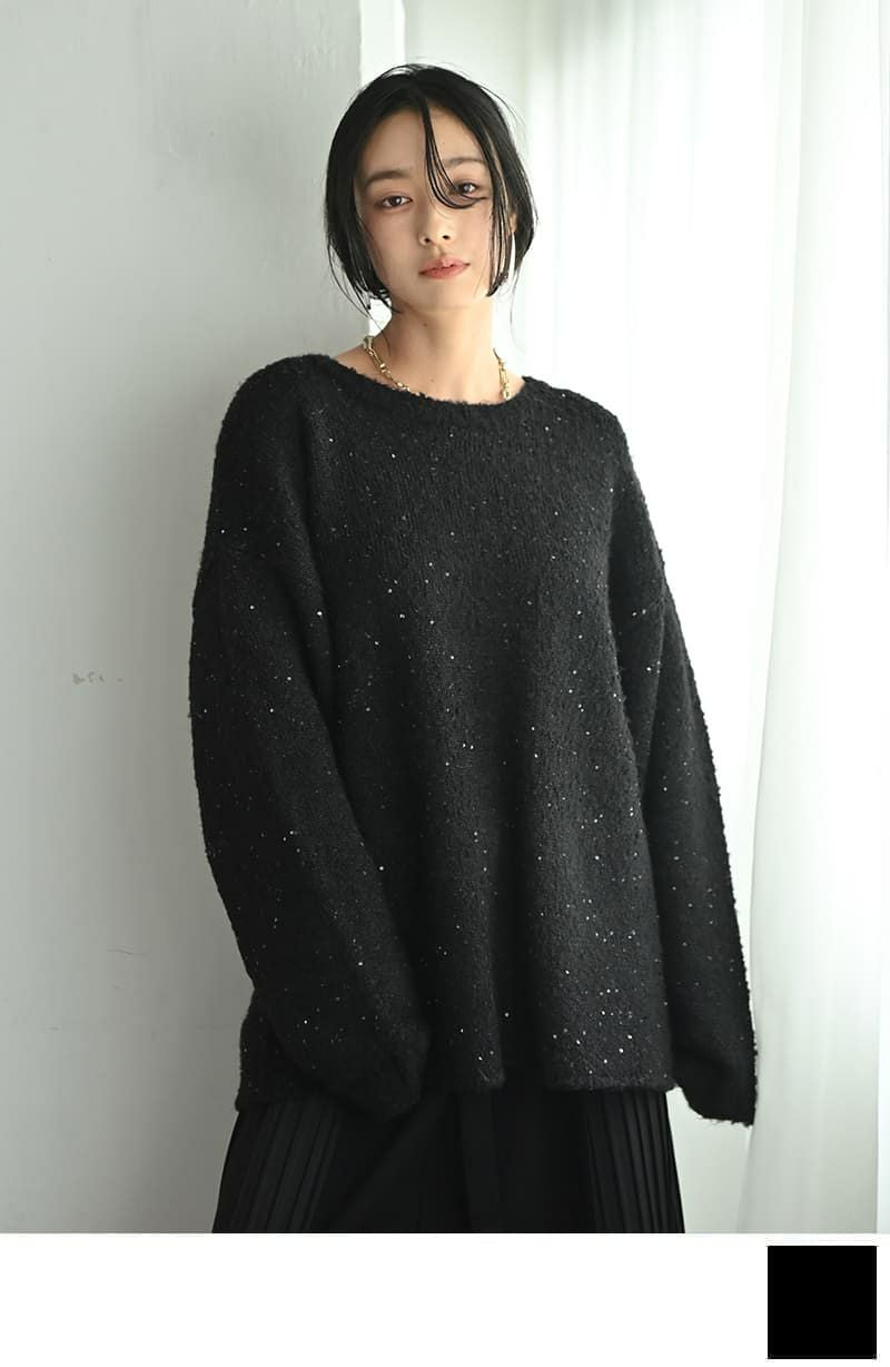 他の画像を見る 販売期間 2025/11/07 19:00 〜 SOLD OUT Specialprice対象商品 【BLK001】スパンコール付きオーバーニット 通常価格 ¥ 12,500 のところ 通常価格 ¥ 9,900 税込