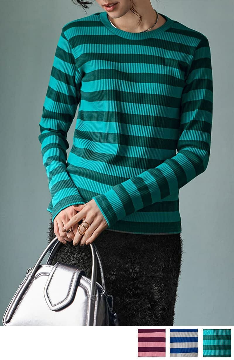 カラーボーダーリブトップス