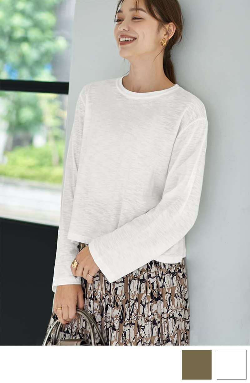 こなれたスラブ生地の下腹丈長袖Tシャツ
