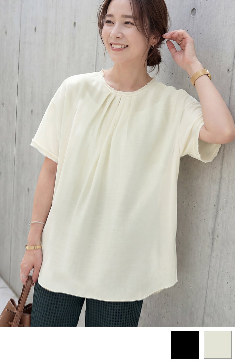 他の画像を見る 販売期間 2026/04/24 19:00 〜 一部予約 再入荷 送料無料 同梱不可 [一部予約]【LUXE】ニュアンス生地のタックボウタイブラウス【5月中旬頃入荷】 通常価格 ¥ 11,000 税込