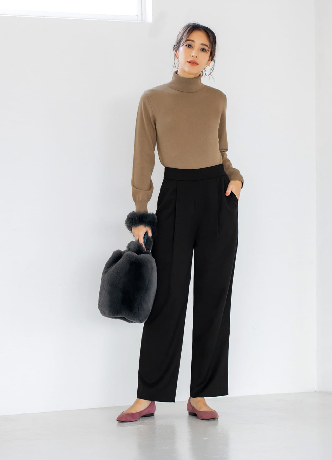 ■tops:ベーシックタートルネックニットB(NUTS)■bag:ワンハンドルファーバッグ(CHARCOAL)■pumps:【Made in JAPAN】フラットパンプス/スエード□other:Not for Sale