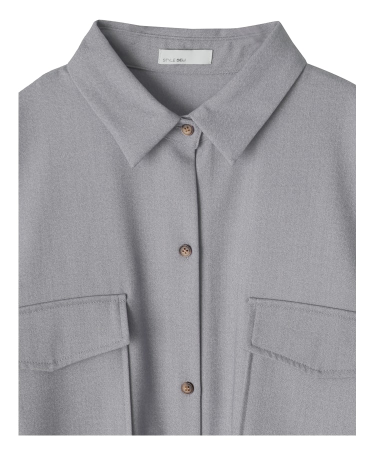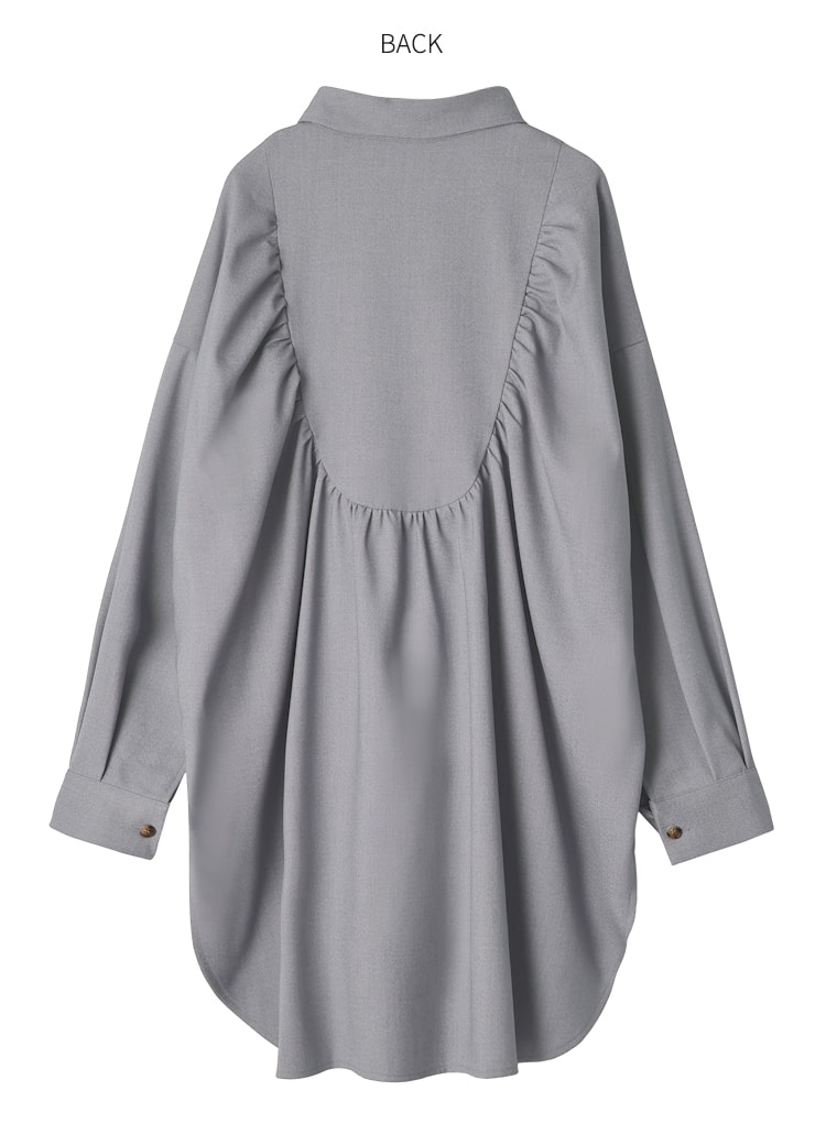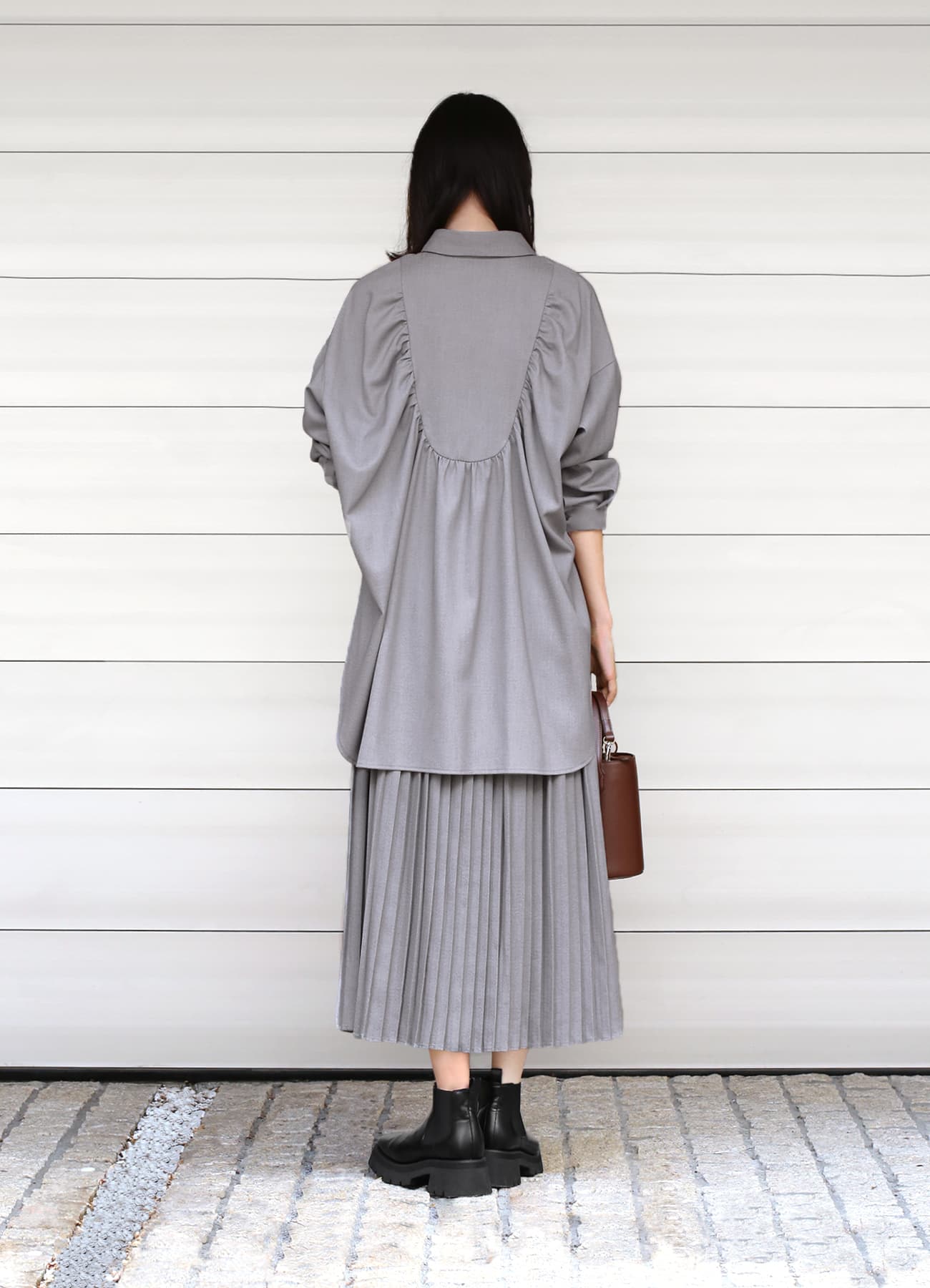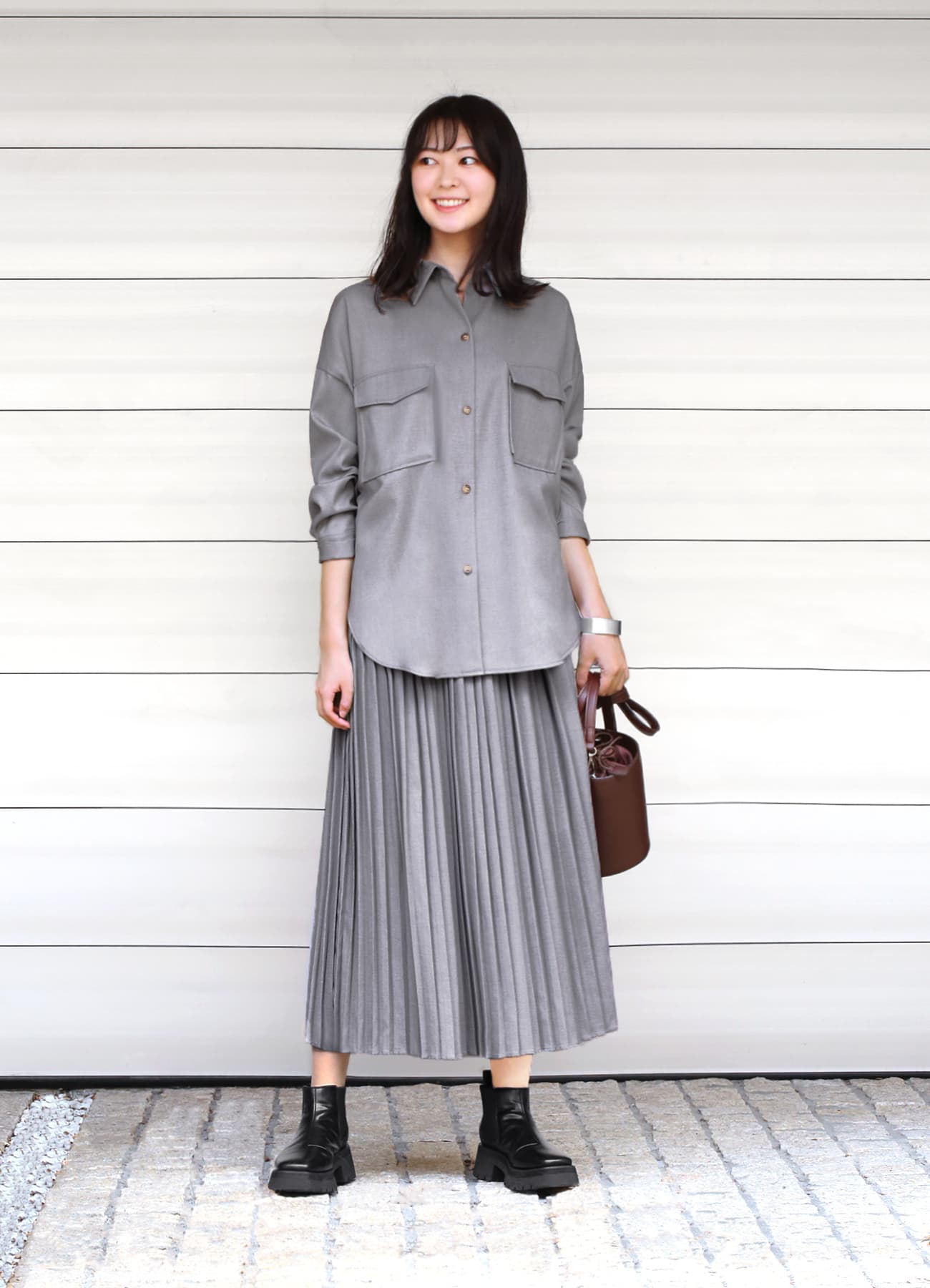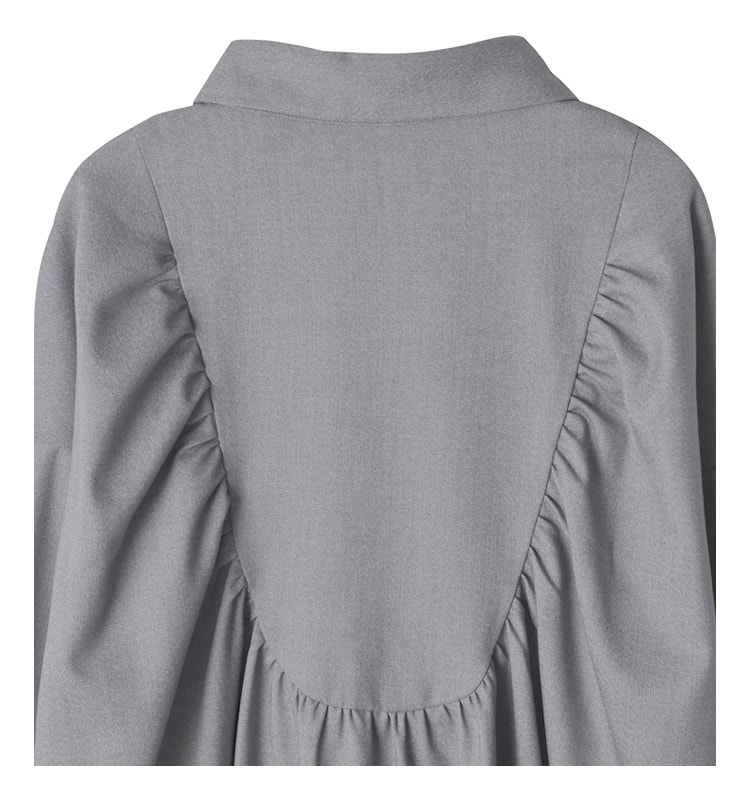 【不良品以外の返品・交換不可商品となります】美しいライトグレーの発色も必見上質生地で背中がオシャレがシャツ型ジャケット―いつものDELIより生地やデザインに凝った、ワンランク上のLUXE(ラグゼ)ライン。ネット通販らしからぬ、ラグジュアリー感溢れる生地でお作りしたシャツジャケット。背面のギャザーデザインが特徴的で、どの角度から見ても立体感あるオシャレさが楽しめます。この美しいライトグレーを見たとき、一瞬にして『この色で・このデザインで作りたい!』と発想が湧いた思い入れのあるアイテム。シャツ風にトップスとして着ても良いですし、前を開けてジャケット風に着るのもオシャレです。 ◆クラス感のある生地を使用した、ゆったりフォルムのシャツジャケット。◆一番の主役は生地の美しさですが、背面のラウンド型ギャザーもポイント。オシャレで華やかな後ろ姿になります。◆ゆったりとしたサイズ感。冬場は中にタートルネックなども余裕で着れるゆとりがあり、温度調節にも便利です。袖幅もゆったりです。◆スカート、パンツ、ワンピースと幅広く合わせることが可能。キレイめコーデにもカジュアルコーデにも使えます。◆前は太もも上部にかかる丈感。背面は太もものほとんどが隠れる丈感。◆両胸にフラップ付きポケットあり。◆袖口にカフス&ボタン、タックあり。◆フロントボタン開き(ボタン:ブラウン系マーブル模様)◆暖かな生地をたっぷりと使用しているため、手に持つと少し重みあり。◆裏地:なし◆手洗い:可能◆プラス情報:以前、同じ生地でプリーツスカートも販売していたセットアップ対応商品になります。【生地とお色について】起毛感はないながらも、秋冬らしいウォーミィー感をまとったしっかりとした生地。秋冬用のきちんとしたジャケットも作れるような、上品で高級感のある質感です。お色は明るいため、春先のアウターとしても活用OK。 程よく暖かいのでブルゾンのように防寒できます。表面的な手触りはサラッとしていて、厚みは適度にあり。お色は白からグレーまでのお色がグラデーションで細かく混ざった、美しいライトグレーになっています。◆とくにシワになりやすい生地ではありません。◆毛羽立ちやすい生地ではありません。◆伸縮性:少しあり◆光沢感:なし◆透け感:なし【SNS用ハッシュタグ】#234481ウール調背面ギャザーシャツジャケット(このハッシュタグでInstagramなどSNS内で検索をしますと、こちらをお持ちのお客様のご投稿があれば、簡単に見つけてご覧いただくことができます)通常販売価格:14,800円【販売理由:販売終了商品】【お客様へのお願い】メルカリ等、個人および法人販売サイトにおける転売目的でのご購入は、ご遠慮いただきますようお願いいたします。