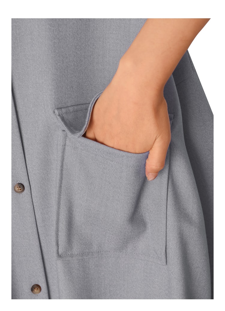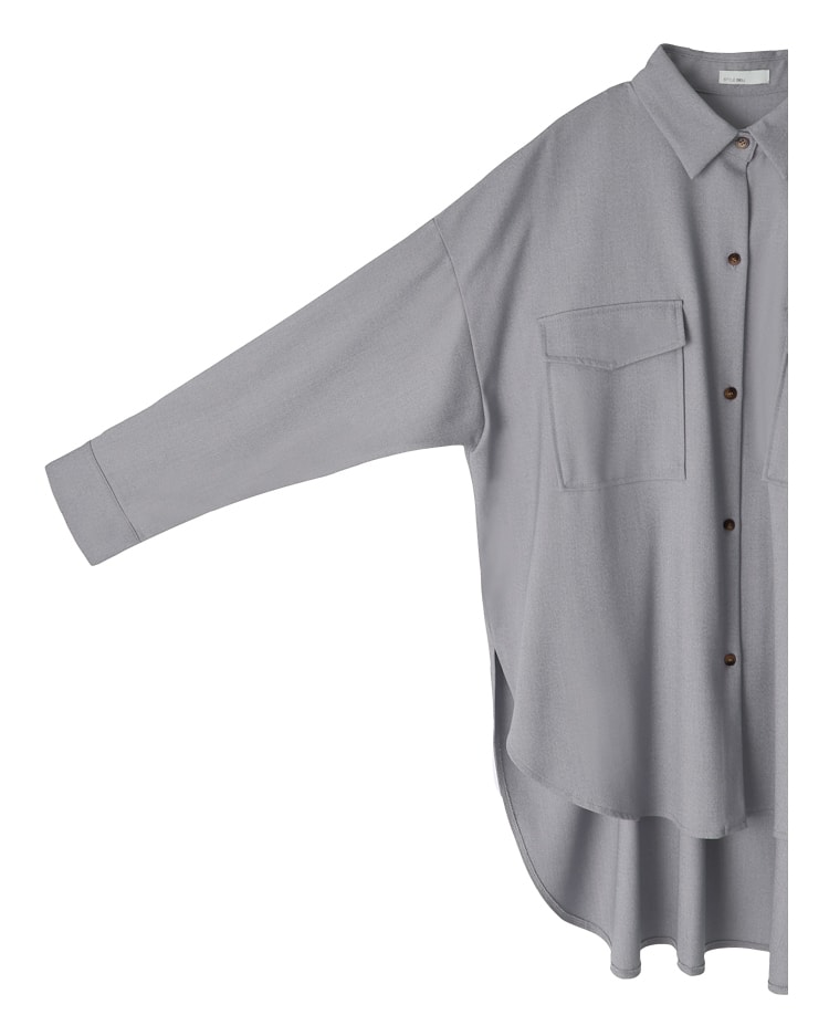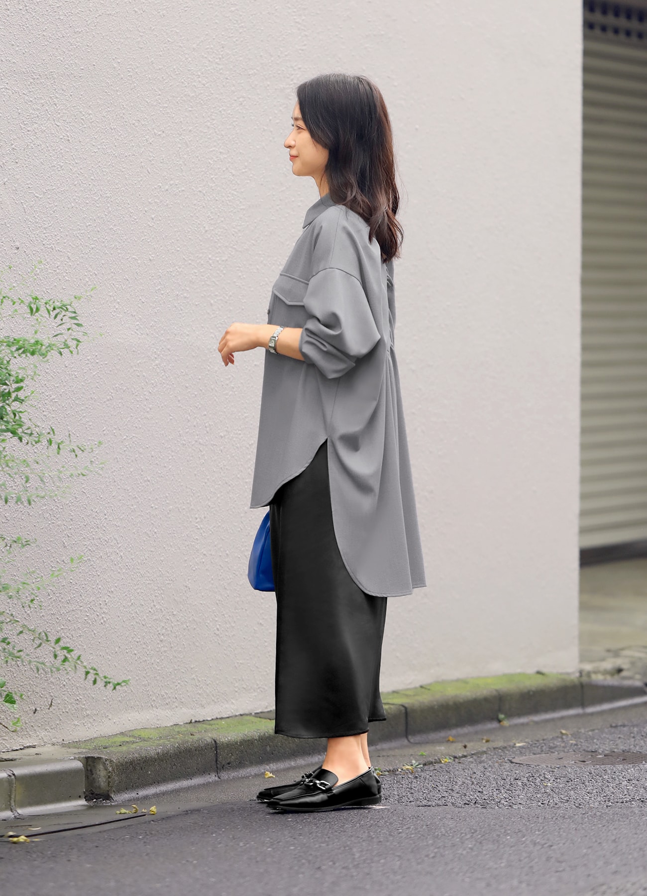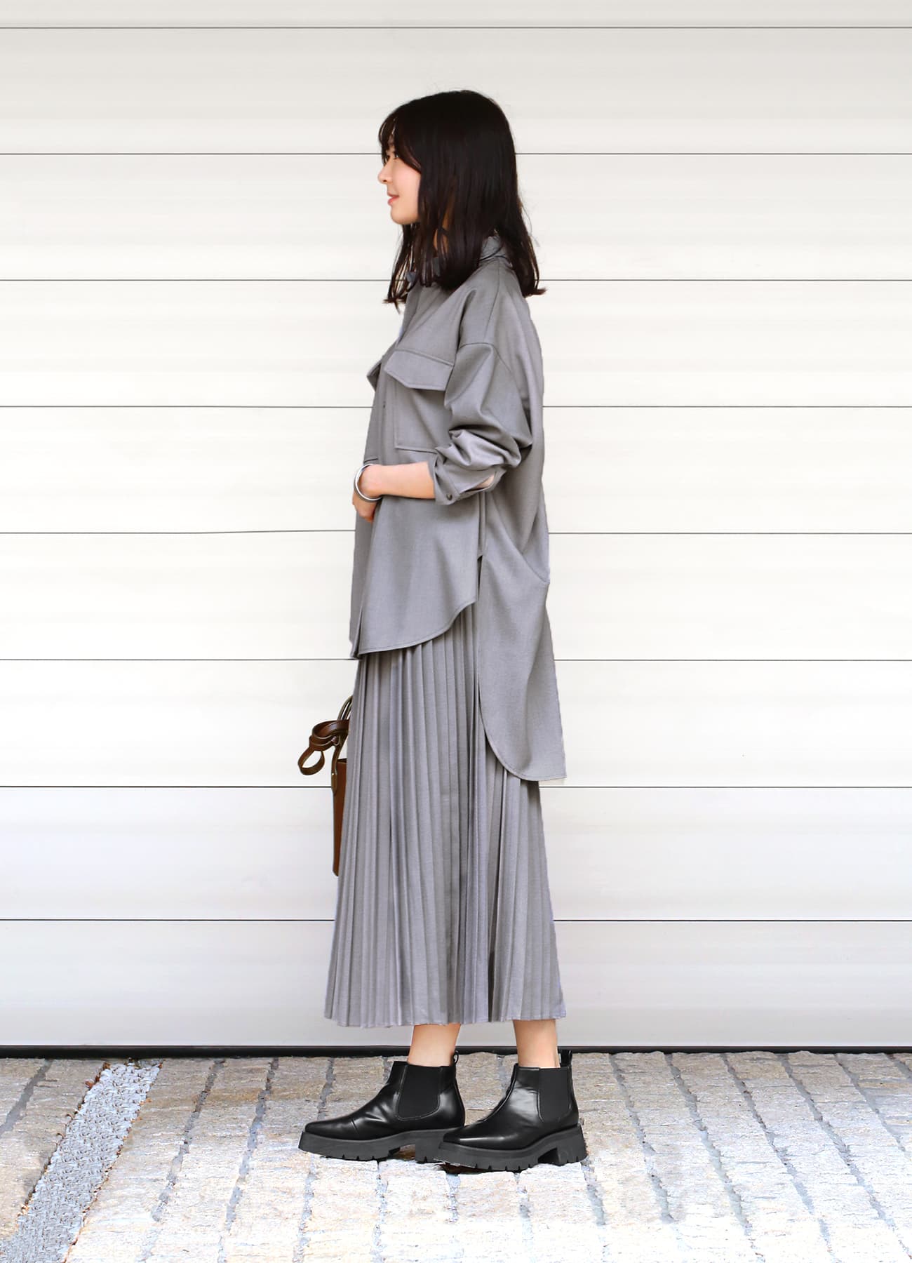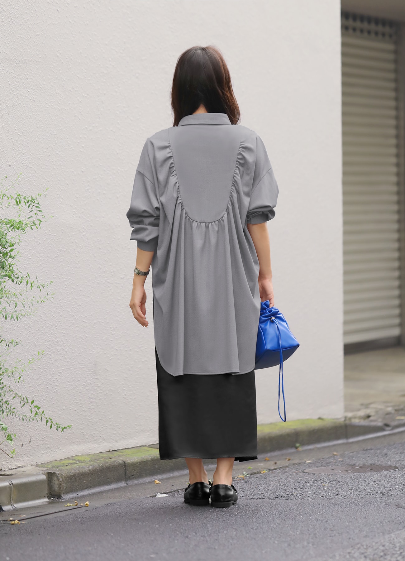 【不良品以外の返品・交換不可商品となります】美しいライトグレーの発色も必見上質生地で背中がオシャレがシャツ型ジャケット―いつものDELIより生地やデザインに凝った、ワンランク上のLUXE(ラグゼ)ライン。ネット通販らしからぬ、ラグジュアリー感溢れる生地でお作りしたシャツジャケット。背面のギャザーデザインが特徴的で、どの角度から見ても立体感あるオシャレさが楽しめます。この美しいライトグレーを見たとき、一瞬にして『この色で・このデザインで作りたい!』と発想が湧いた思い入れのあるアイテム。シャツ風にトップスとして着ても良いですし、前を開けてジャケット風に着るのもオシャレです。 ◆クラス感のある生地を使用した、ゆったりフォルムのシャツジャケット。◆一番の主役は生地の美しさですが、背面のラウンド型ギャザーもポイント。オシャレで華やかな後ろ姿になります。◆ゆったりとしたサイズ感。冬場は中にタートルネックなども余裕で着れるゆとりがあり、温度調節にも便利です。袖幅もゆったりです。◆スカート、パンツ、ワンピースと幅広く合わせることが可能。キレイめコーデにもカジュアルコーデにも使えます。◆前は太もも上部にかかる丈感。背面は太もものほとんどが隠れる丈感。◆両胸にフラップ付きポケットあり。◆袖口にカフス&ボタン、タックあり。◆フロントボタン開き(ボタン:ブラウン系マーブル模様)◆暖かな生地をたっぷりと使用しているため、手に持つと少し重みあり。◆裏地:なし◆手洗い:可能◆プラス情報:以前、同じ生地でプリーツスカートも販売していたセットアップ対応商品になります。【生地とお色について】起毛感はないながらも、秋冬らしいウォーミィー感をまとったしっかりとした生地。秋冬用のきちんとしたジャケットも作れるような、上品で高級感のある質感です。お色は明るいため、春先のアウターとしても活用OK。 程よく暖かいのでブルゾンのように防寒できます。表面的な手触りはサラッとしていて、厚みは適度にあり。お色は白からグレーまでのお色がグラデーションで細かく混ざった、美しいライトグレーになっています。◆とくにシワになりやすい生地ではありません。◆毛羽立ちやすい生地ではありません。◆伸縮性:少しあり◆光沢感:なし◆透け感:なし【SNS用ハッシュタグ】#234481ウール調背面ギャザーシャツジャケット(このハッシュタグでInstagramなどSNS内で検索をしますと、こちらをお持ちのお客様のご投稿があれば、簡単に見つけてご覧いただくことができます)通常販売価格:14,800円【販売理由:販売終了商品】【お客様へのお願い】メルカリ等、個人および法人販売サイトにおける転売目的でのご購入は、ご遠慮いただきますようお願いいたします。