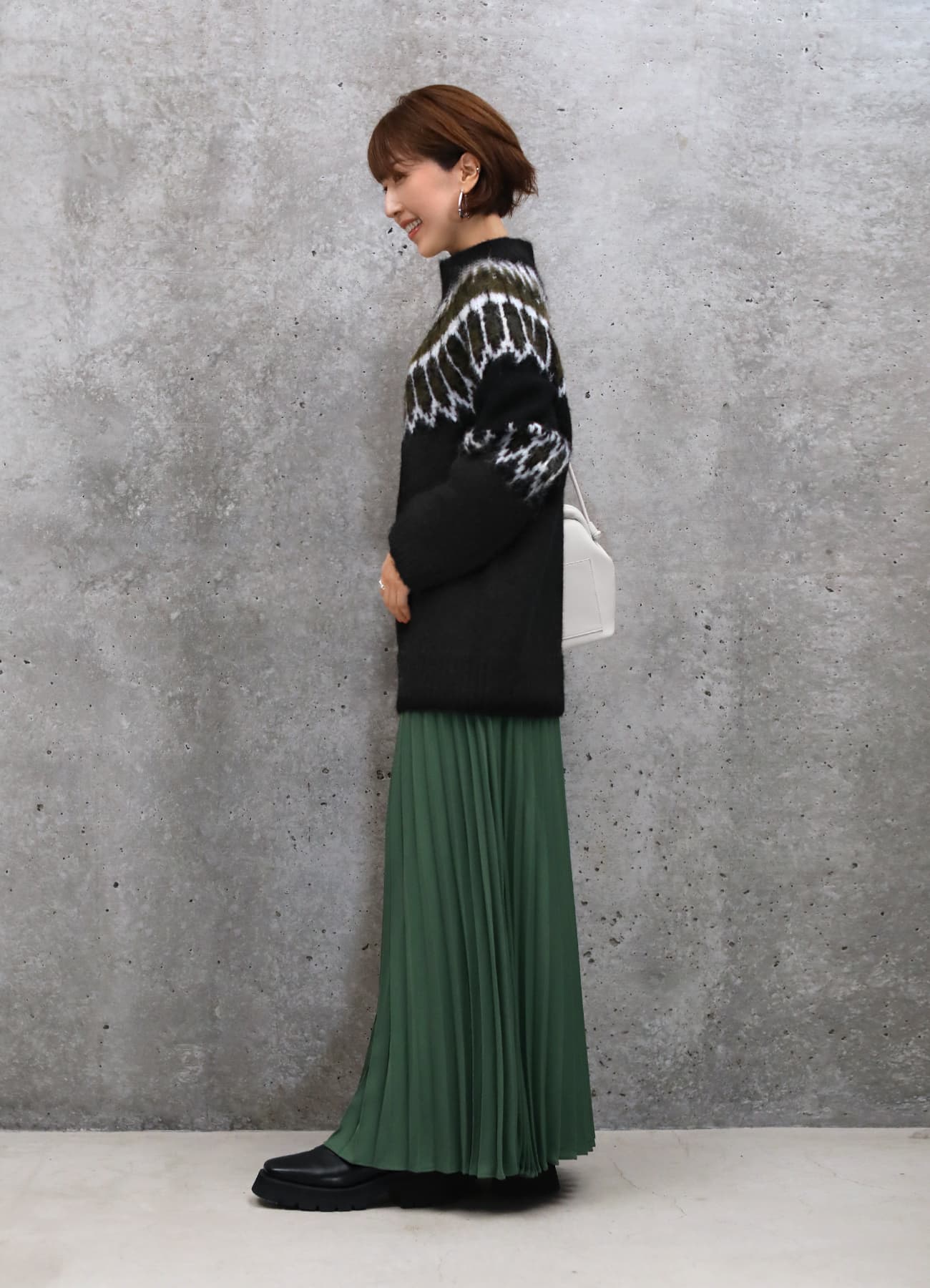 ◆普通身長でくるぶしが隠れる程度の丈感になる、しっかりと長さがあるプリーツスカート。
