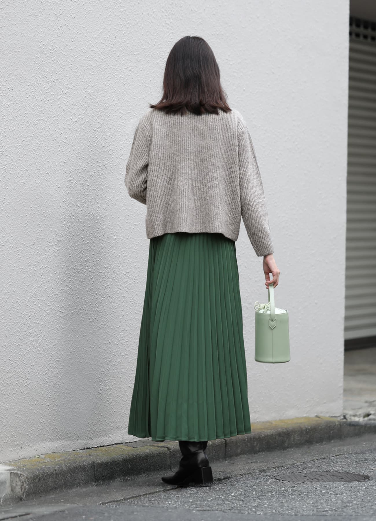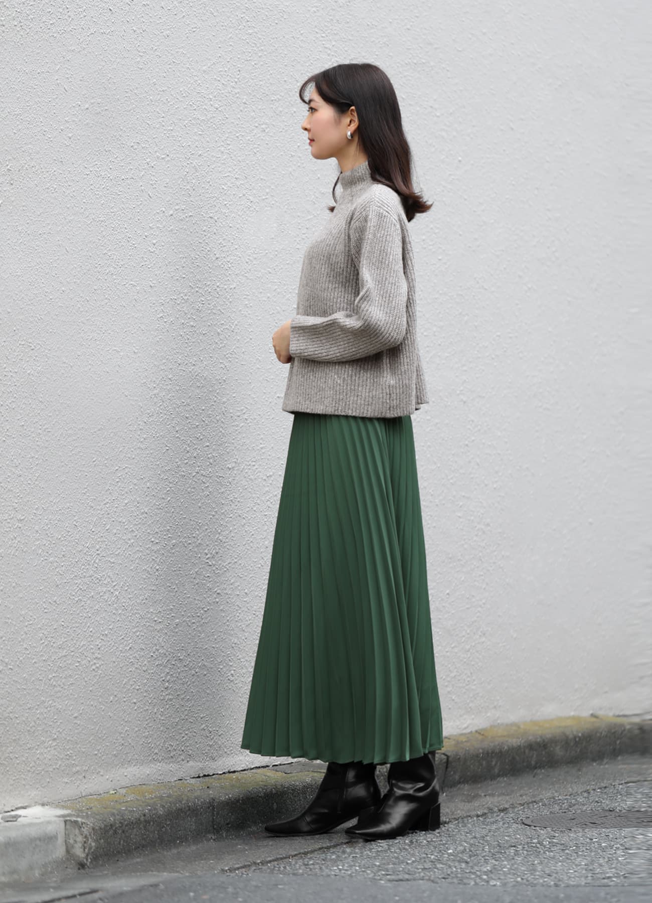 ニットをはじめとした冬スタイルにとにかく合わせやすい、細めプリーツのロングスカート。しっかりと長い丈感や高身長な方に向けた90cmと、低め身長の方や足首が出る丈感がお好みの普通身長の方に向けた84cmの2パターンをご用意しました。 季節感を限定する生地ではないため、夏以外の3シーズンで使えるコスパの高さも魅力。冬の間から暑くなるまで使えます。