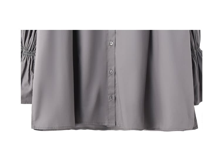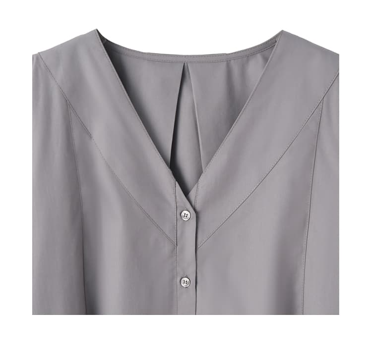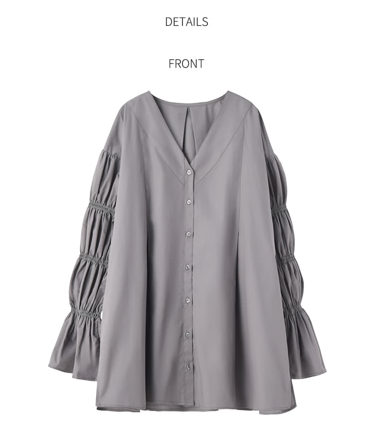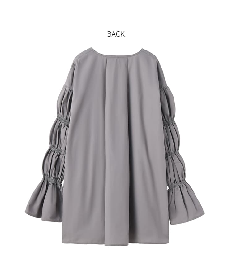 【不良品以外の返品・交換不可商品となります】着たときの可愛さが特別大人カワイイ立体袖ブラウス着るだけで華やかな印象になる、キャンディースリーブの段々袖ブラウス。甘い感じにならないよう、タイプライター系のシャツ生地で仕上げて雰囲気的なバランスを取っています。ゴムギャザーが入った袖は、たくし上げてポンポンのように膨らませたり、真っ直ぐ伸ばしてギャザーの表情を楽しんだり、お好みで。袖にゴムが入ることで窮屈になるのは嫌なので、ゴムの締め加減が腕に負担をかけないよう、そこにはかなりこだわっています。1枚で着るのはもちろん、袖にポイントがあるためサロペットなどのインナーにするのもお薦め。春先はもちろん、初夏は袖をたくし上げて着れますし、秋も使えるアイテムです。【デザインや仕様について】◆ゴムとギャザーで袖にデザインを入れた、華やかさが出せるブラウス。◆締め付けストレスの無いゴム。◆適度にゆとりのあるサイズ感。◆前は太もも上部の丈感。後ろはヒップが隠れる長さ。◆正面は生地の切り替えとタックを使い、のっぺり感が出ないようメリハリをプラス。◆背面にもタックあり。背中にはり付かず、ふんわりとするシルエットに。◆デコルテが適度に見えるVネック。◆フロントボタン開き◆ボタン:貝パール調の光沢ボタンをボディと同色染め◆両サイド裾にスリットあり◆手洗い:可能【生地について】タイプライター系のやや薄手なシャツ生地。ハリ感があり、シワになりにくくてお手入れもラクなタイプのシャツ生地です。◆厚み:軽やかでスッキリとした質感です。◆シワ:シャツ生地としてはできにくい方です。アイロンも基本的に不要です。◆透け感:そこまで気になりませんが、インナーの色によっては僅かになんとなく?という感じです。目立たない色を着ればわかりません。◆伸縮性:なし◆光沢感:なし◆着用可能シーズン:夏以外【お色について】◆アプリコット:パステルオレンジにごく微量のブラウンを垂らし、落ち着き(大人っぽさ)を入れたような明るいニュアンスカラー。ピンクともベージュともオレンジとも異なる、いわゆるアプリコットカラーです。◆ライトグレー:冷たい感じや作業着感のあるグレーではなく、僅かなセピア味・赤味が(わからない程度に入った)オシャレ感のある発色。明るめで、暗い印象も与えません。【SNS用ハッシュタグ】#234767シャツ生地ポンポンスリーブブラウス(このハッシュタグでInstagramなどSNS内で検索をしますと、こちらをお持ちのお客様のご投稿があれば、簡単に見つけてご覧いただくことができます)通常販売価格:8,900円【販売理由:販売終了商品】【お客様へのお願い】メルカリ等、個人および法人販売サイトにおける転売目的でのご購入は、ご遠慮いただきますようお願いいたします。