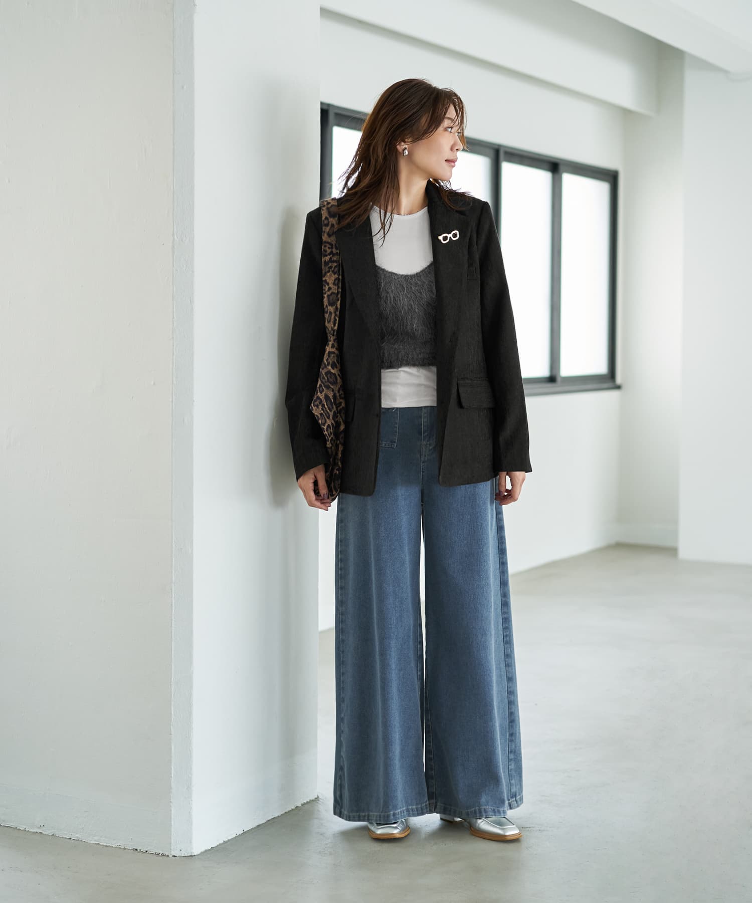 ◆サイズ感:ゆったりめでLサイズ体型にも対応。そこまでボリュームのあるものでなければ、やや厚手のニットなどを着込むこともできます。