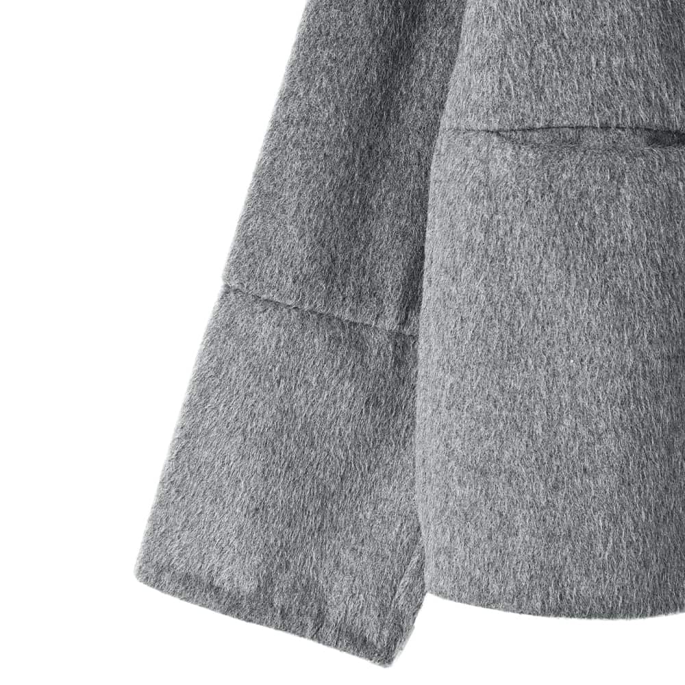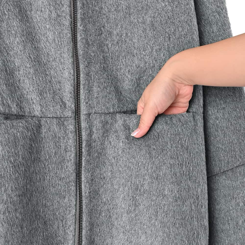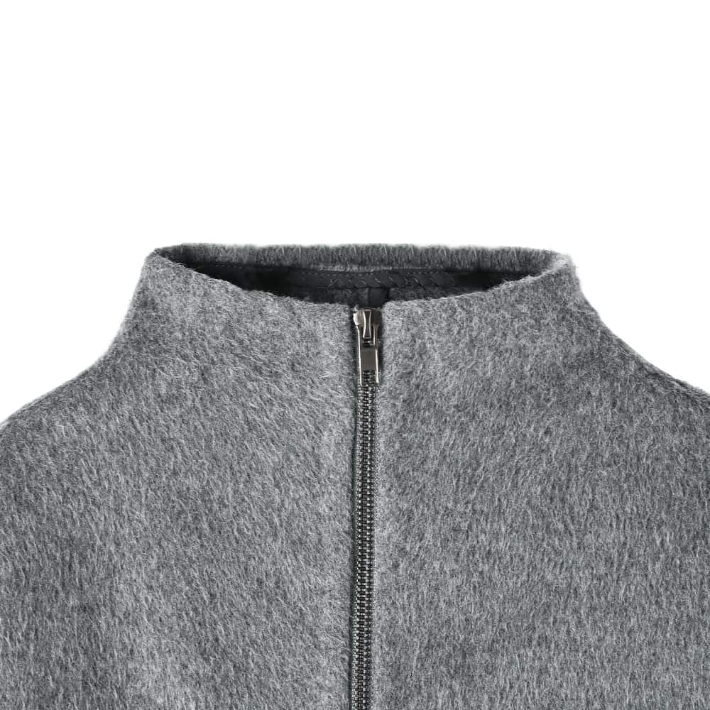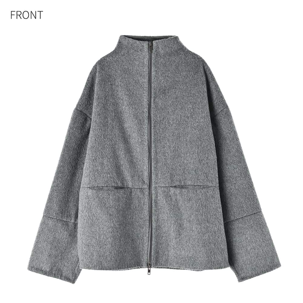 ニット以上に暖かいコーデが作れて、暑ければ脱いで温度調節ができる。質感の良いスタイリッシュジャケット◆12/25インスタライブご紹介商品◆ーいつものデリより生地やデザインに凝った、ワンランク上のLUXE(ラグゼ)ライン。【このジャケットについて】なめらかなカシミヤコートの質感を目指した、見た目の高級感も手触りも抜群に良い前ファスナーのジャケット。ファスナーは人気のダブルファスナータイプで、上下から好きなバランスで開けられるので着こなしを作るのに便利です。使い方はカーディガンと同じで、薄手のトップスやワンピース、サロペットなどの上に羽織り→その上に冬コートを着る感じで使用。普通のジャケットやニットよりも暖かく、重たいコートを着たくないけど寒いのもイヤ、という方にも向いています。印象としては大人っぽくシンプルな感じで、年齢層や系統を問わずに使える汎用性の高いデザイン。暑ければ脱げるという点で、体感温度が変わりやすい更年期女性の実用的なお洋服としてもお薦めです。◆冬コートの下に着れる厚み◆室内で着ていても違和感の無いヴィジュアル◆暖かい日は軽アウターにできる◆ゆとりのあるサイズ感◆パンツにもスカートにも合う◆ワンピースやサロペット等とも相性◎◆軽量で暖かな着心地【さらにプラス情報】◆備考:お届け時はポケットにしつけ糸が付いていますので、糸切りバサミで生地を切らないよう注意しながら取り除いてご使用ください。◆静電気:とくに発生しやすい生地ではありませんが、程度の差はその方の帯電体質具合や合わせアイテムなどによりますのと、冬場は乾燥でどうしても…というところはありますので、もしも気になる場合はエレガードなどの静電気防止スプレー等でご対処ください。◆お手入れ:一応手洗いはできますが、非常に質感の良い生地なので可能であればクリーニングがお薦めです。◆肌触り:チクチク感や硬さやゴワつきはなく、とても気持ちの良い肌触りです。◆滑り:裏地はありませんが、表面がスベスベとしているような滑りの良い生地なので、着ているものとの引っ掛かりが無く快適です。◆ファスナーの色:アクセサリーや小物の金具との兼ね合いが気にならなくて便利な、ブラックメッキ色のファスナーです。【その他の仕様などの情報】◆着用時期:10-4月が目安◆サイズ感:ゆとりのあるサイズ感(Lサイズ体型にも対応)◆丈感:前は太もも上部にかかる程度の丈感/背面はヒップが半分隠れる程度の長さ◆シルエット:ストレート◆首元:ボトルネック◆肩幅:問わないタイプ(ドロップショルダー)◆アームホール:広め◆袖幅:広め◆袖丈:長袖(指の付け根が隠れる長さ)◆袖口:何もなし◆袖のたくし上げ:可能◆厚み:普通-やや厚手◆柔らかさ:柔らかさの中になんとなくハリ感も共存◆肌触り:なめらか・すべすべ・ふんわり◆着用ジワ:できにくい◆毛羽立ち:できにくい◆伸縮性:なし◆光沢感:なし◆透け感:なし◆スリット:なし◆着脱:フロントファスナー(ダブルファスナー)◆ポケット:フロント左右にあり◆裏地:なし◆手洗い:可能◆アイロン:不要◆スチーマー:使用OK【お色について】◆グレー:ライトグレーまでは行かない程度に明度のある明るめグレー。グレーの中に白っぽい糸が混ざっており、素材の毛流れがよく出ていてこの生地の美しさを堪能できる、プロデューサーこだわりのお色です。◆ミルクベージュ:ベージュというよりはグレイッシュなグレージュ系で、白50%+グレージュ50%という感じの白っぽいカラーです。印象としてイエロー味や赤味は感じません。【SNS用ハッシュタグ】#235997カシミヤタッチボトルネックジャケット(このハッシュタグでInstagramなどSNS内で検索をしますと、こちらをお持ちのお客様のご投稿があれば、簡単に見つけてご覧いただくことができます)