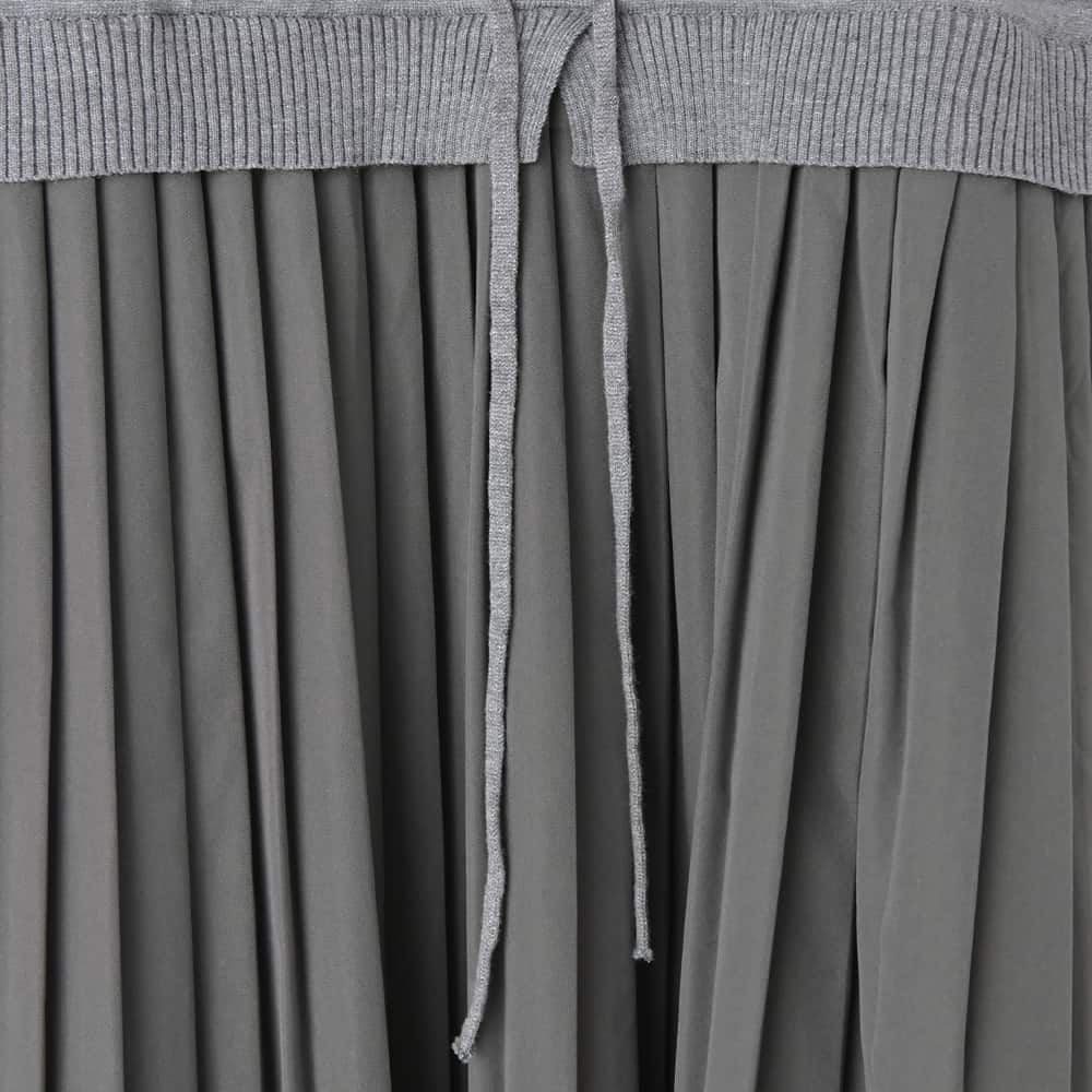 ◆ニット部分はサラリとしたハイゲージ編み。スカート部分はシャツを作るようなサラッとした生地で、少しコットン含有ライクな手触りを持っています。