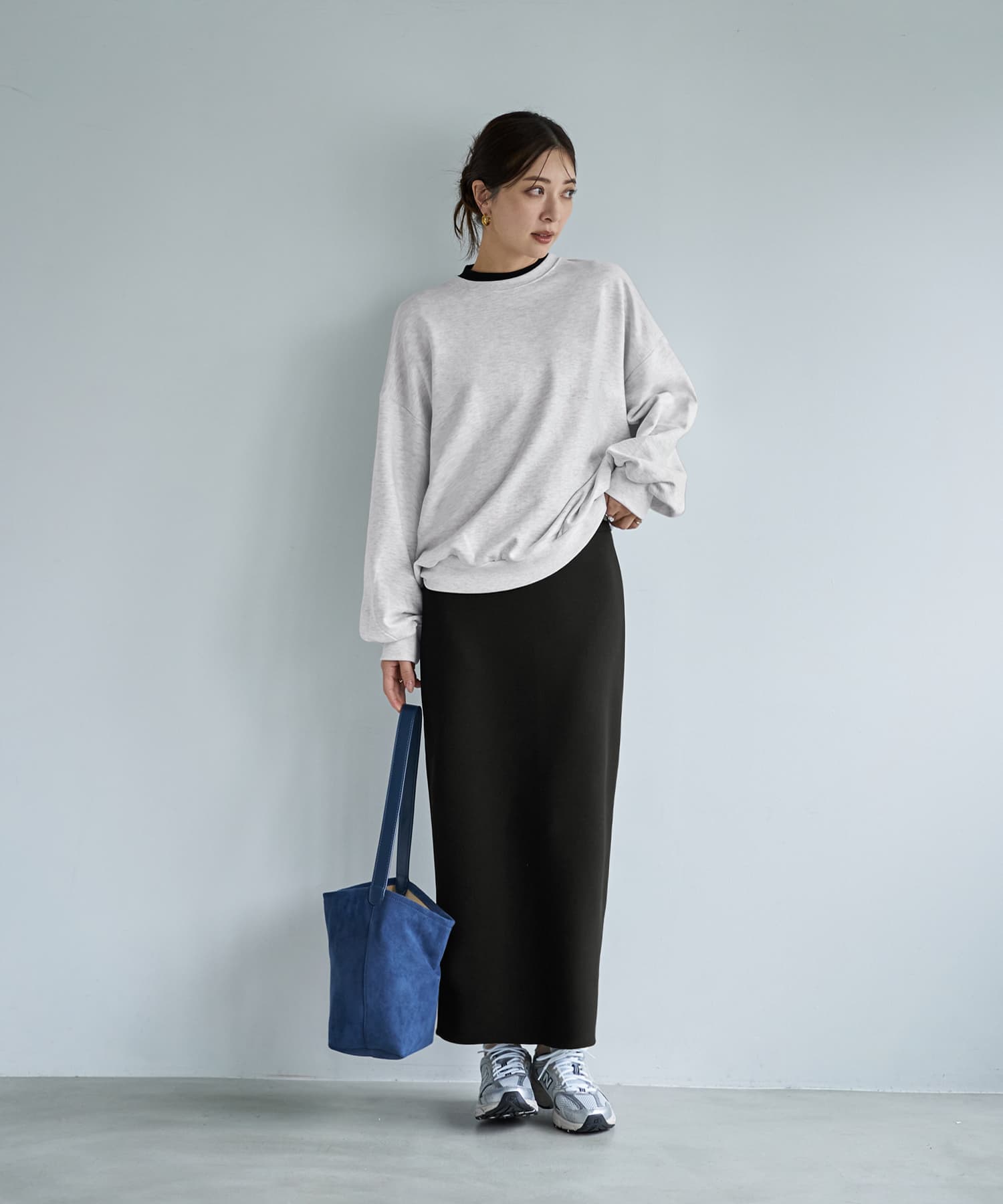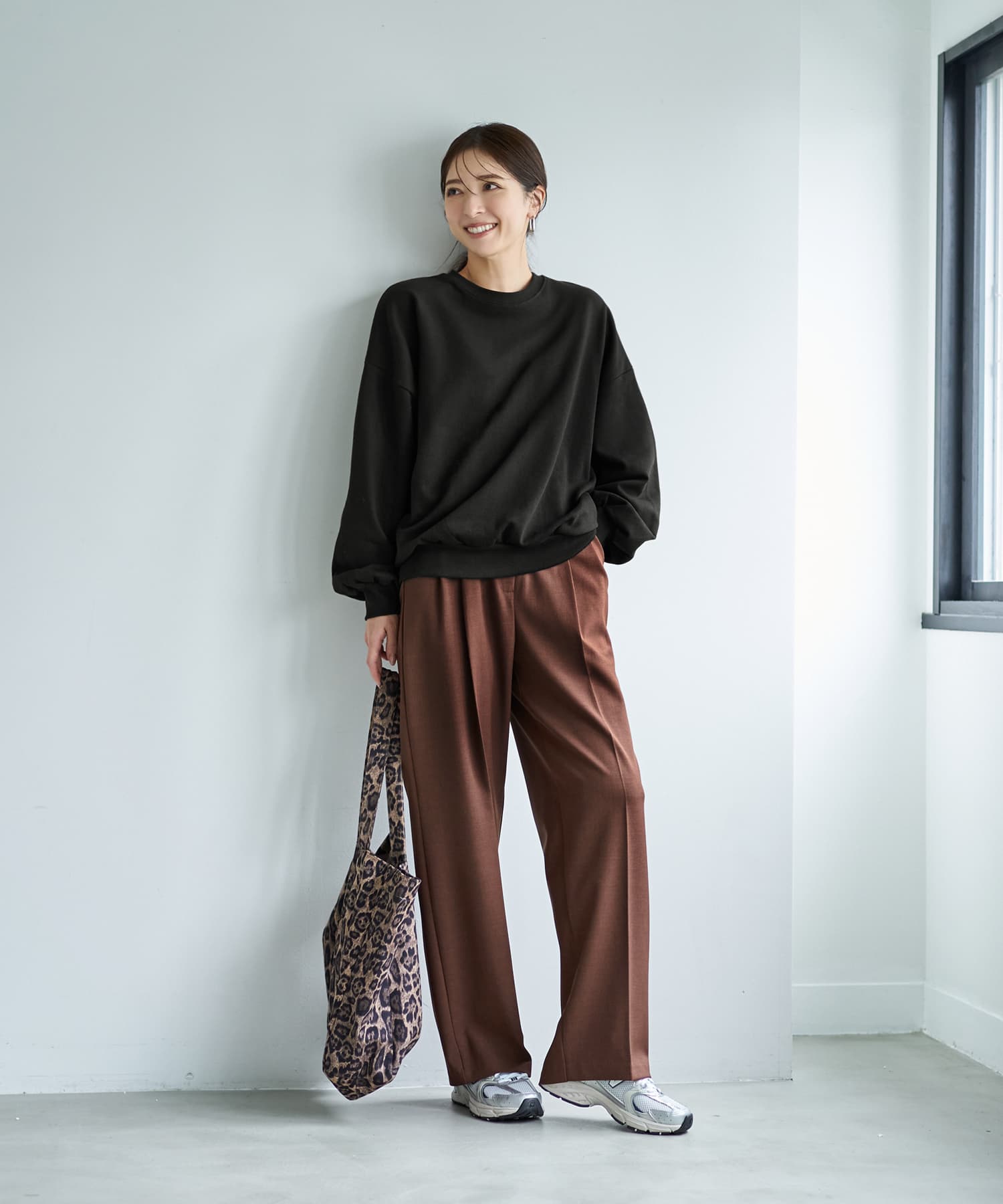 見た目はスウェット、着心地はカットソー身体がぶ厚くならずにスッキリと着れる、大人の為のスウェット風ワザありトップス◆11/20インスタライブご紹介商品◆アーカイブのご視聴はこちらから→【11/20ライブ】【この商品の特徴】スウェットが似合いづらくなる大人の為に、その原因の大きな要素を取り除いた『大人の為のスウェット風トップス』。身体が厚く・カジュアルに見え過ぎてしまう生地暑と質感に着目し、長袖カットソーのような感覚でスッキリと着ることができるようになっています。質感はスムースでどこかキレイめ感があり、大人が日常に着るヌケ感アイテムとしてピッタリ。飽きたり傷んできたりしたら、最後はお部屋着にできる素材というのもポイントです。◆普通のスウェットよりも生地が薄く、スッキリとしていて身体が厚く見えない。◆長袖Tシャツよりは少し生地が厚く暖かい。◆裏側は裏起毛とはまた異なる温もりタッチ。薄手の割には暖かさのある着心地。◆タック入りで少しポワンとした形の袖口。甘くはならないさりげないデザイン性あり。◆ゆったりとしたサイズ感。◆ジャケットのインナーには不向きなゆったり感。◆アウター類は普通に着用が可能。◆パンツにもスカートにも合う。【さらにプラス情報】◆アイロンは不要です。もしもシワが気になる場合は霧吹きで気になる部分をよく湿らせて→手指で軽くシワを伸ばして→ハンガーに掛けておけばOKです。【その他の仕様などの情報】◆着用時期:10-4月が目安◆サイズ感:ゆったりめのサイズ感(Lサイズ体型にも対応)◆丈感:前は脚の付け根が隠れる丈感/背面はヒップが半分くらい程度隠れる長さ◆シルエット:ストレート◆裾:リブ生地◆ブラウジング:なんとなく可能(裾リブはゆったりめなので動けば落ちてくることもあります)◆首元:クルーネック◆肩幅:問わないタイプ(ドロップショルダー)◆アームホール:広め◆袖幅:広め◆袖丈:長袖(手の甲が隠れる長さ)◆袖口:リブ+タック◆袖のたくし上げ:可能◆厚み:スウェットとしては薄手◆柔らかさ:柔らかさとハリ感が共存◆肌触り:サラッとした感じ/裏側は僅かにほんわりと温もりがある感じ◆着用ジワ:できにくい◆毛羽立ち:できにくい◆伸縮性:あり◆光沢感:なし◆透け感:なし◆スリット:なし◆ボタンやファスナー:なし(かぶり着タイプ)◆ポケット:なし◆裏地:なし◆手洗い:可能◆アイロン:不要◆スチーマー:使用OK【お色について】◆ブラック:定番的な通常のブラックです。◆マーブル:明るいグレー系の白っぽいカラー。薄いグレーとホワイトのメランジ編みです。◆ネイビー:ネイビーの中では少し明るめで、ブルー味も感じるタイプ。非ナス紺系の普通のネイビーです。【お知らせ事項】一般的な特性として、濃いお色のスウェットは稀に移染(色落ち)が起きることがあります。白のインナー等を中に着る場合や明るいお色のバッグなど、触れるものとの色移りに念のためご注意ください(とくに雨の日や汗、体温でムレるときなど)。万が一トラブルが起きました際は、恐れ入りますが免責とさせていただきますので予めご理解をお願いいたします。【SNS用ハッシュタグ】#236008ボリュームダウンスウェットトップス(このハッシュタグでInstagramなどSNS内で検索をしますと、こちらをお持ちのお客様のご投稿があれば、簡単に見つけてご覧いただくことができます)