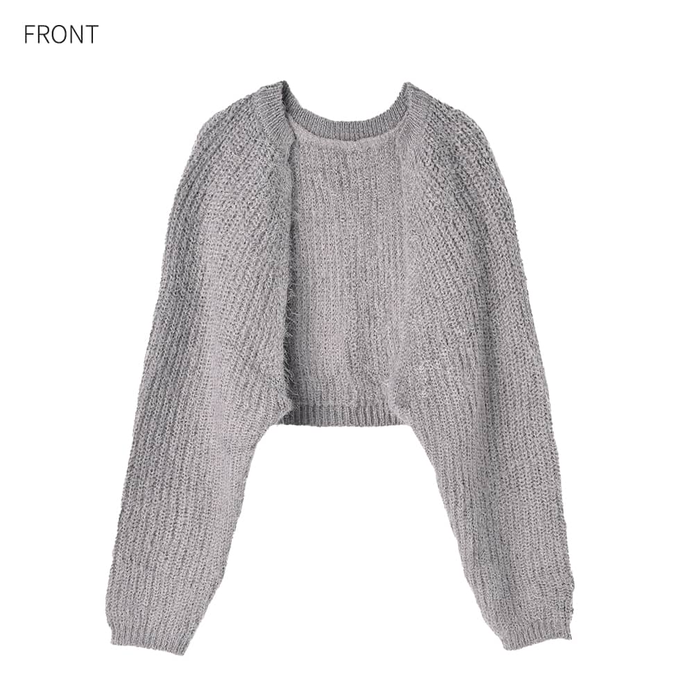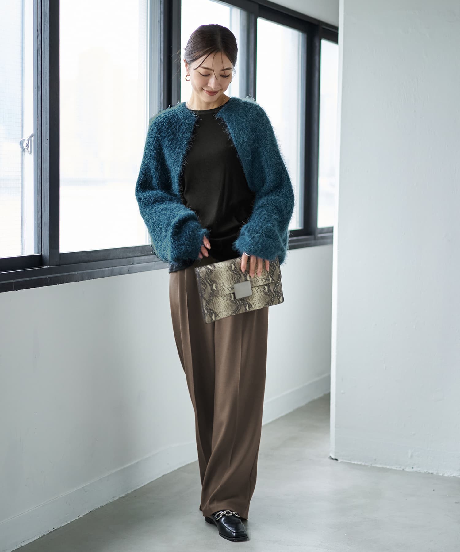 ◆扱いやすさと暖かさ、肌触りの良さで大人気のふわふわシャギー素材を使用したニットボレロ。ボレロのみならず肩掛けストールや腰巻き、マフラーにしたりと、お好みの使い方で着こなしのアレンジやポイントを作ってくれるアイテムです。厚手のシャギーだとそうはいきませんが、割と薄手で軽やかな素材感がそれを叶えます。